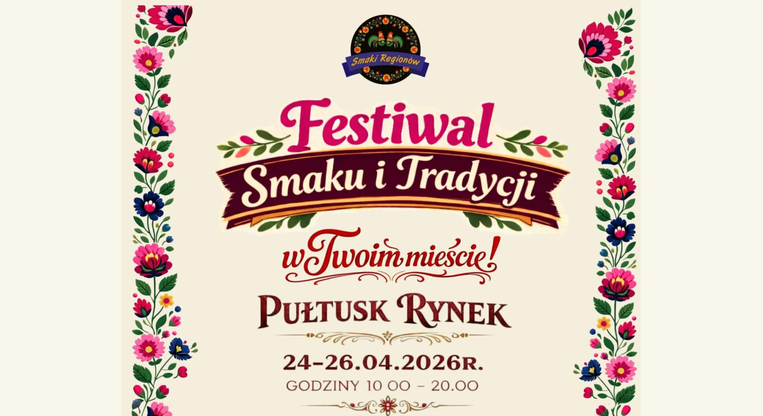 W dniach 24–26 kwietnia 2026 roku na Rynku w Pułtusku odbędzie się Festiwal Smaku i Tradycji. Wydarzenie będzie dostępne dla...