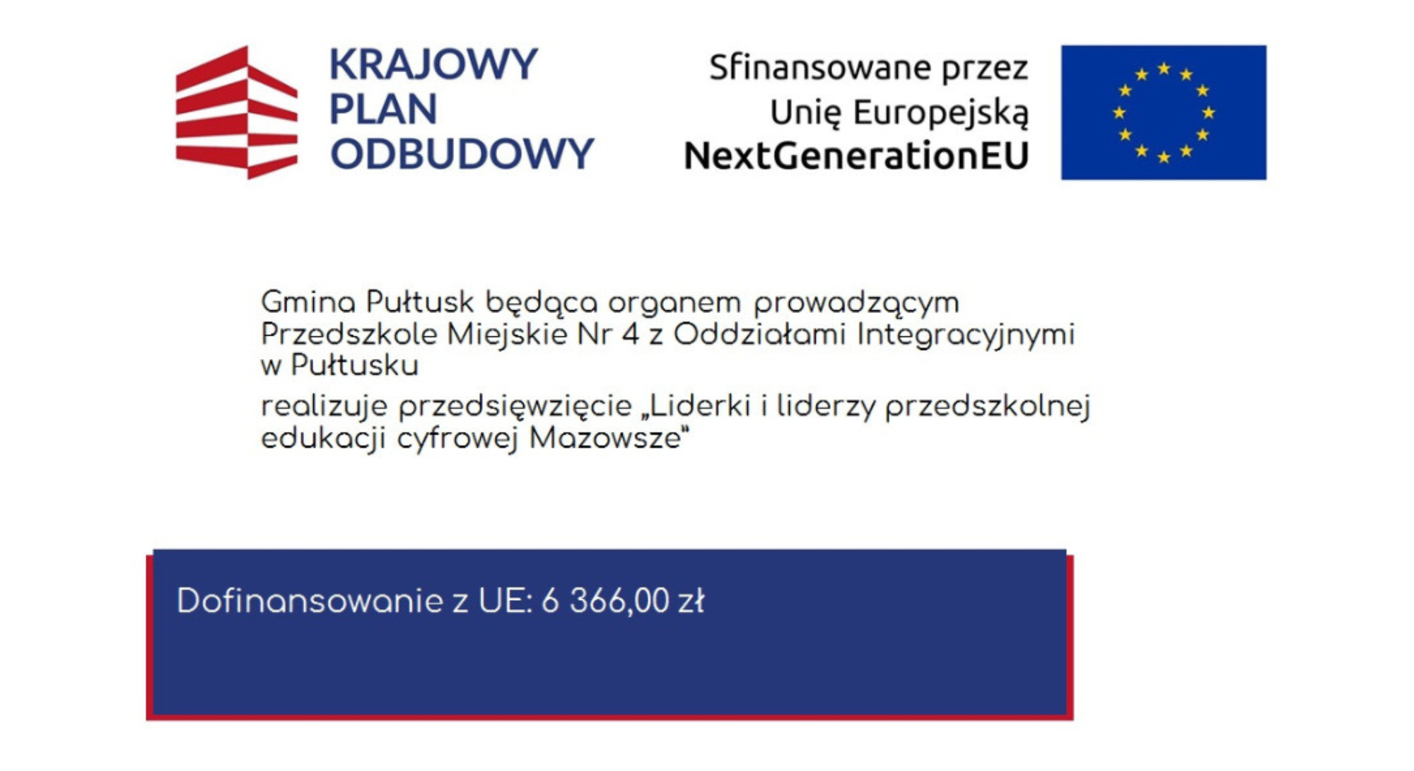 Gmina Pułtusk, jako organ prowadzący Przedszkole Miejskie Nr 4 z Oddziałami Integracyjnymi w Pułtusku, realizuje projekt edukacyjny pn. „Liderki i...