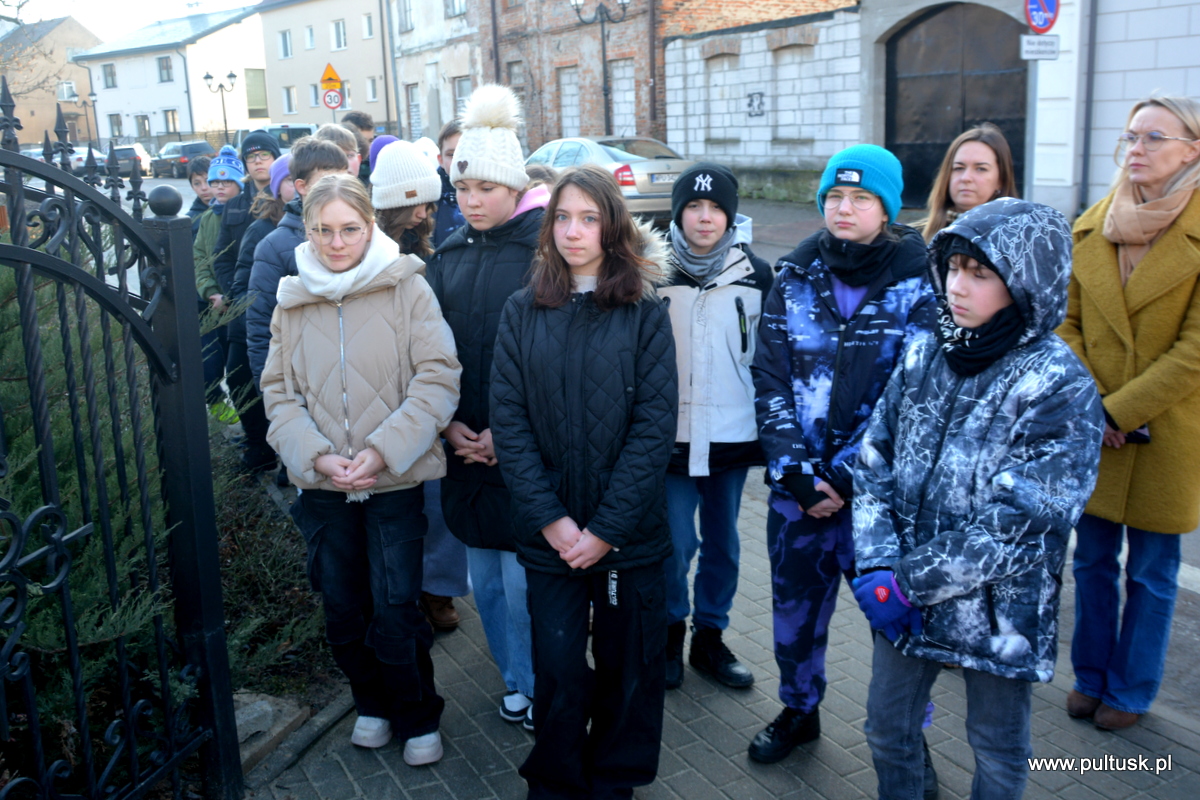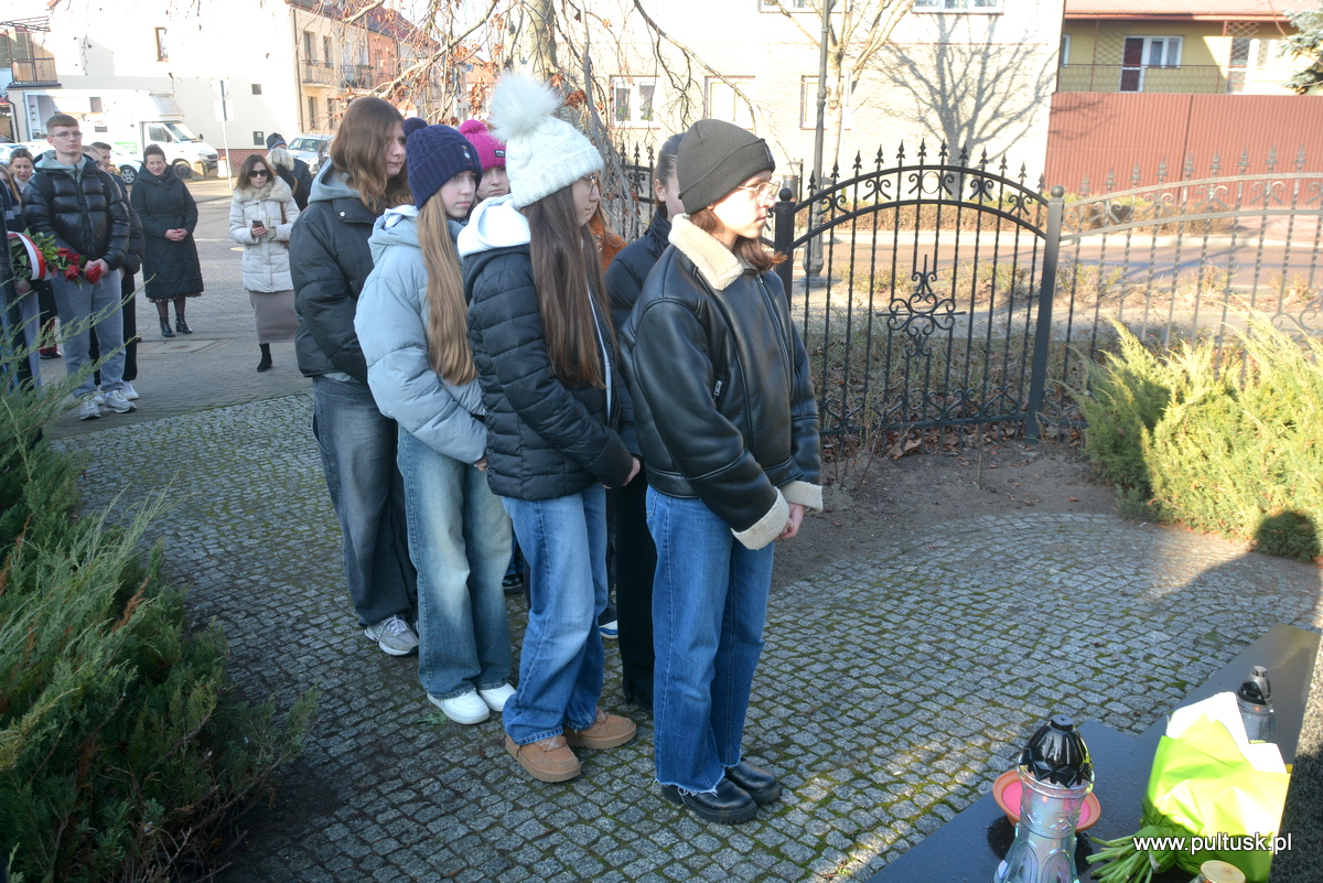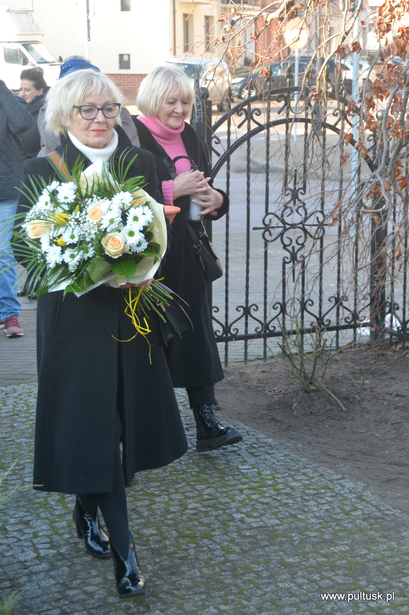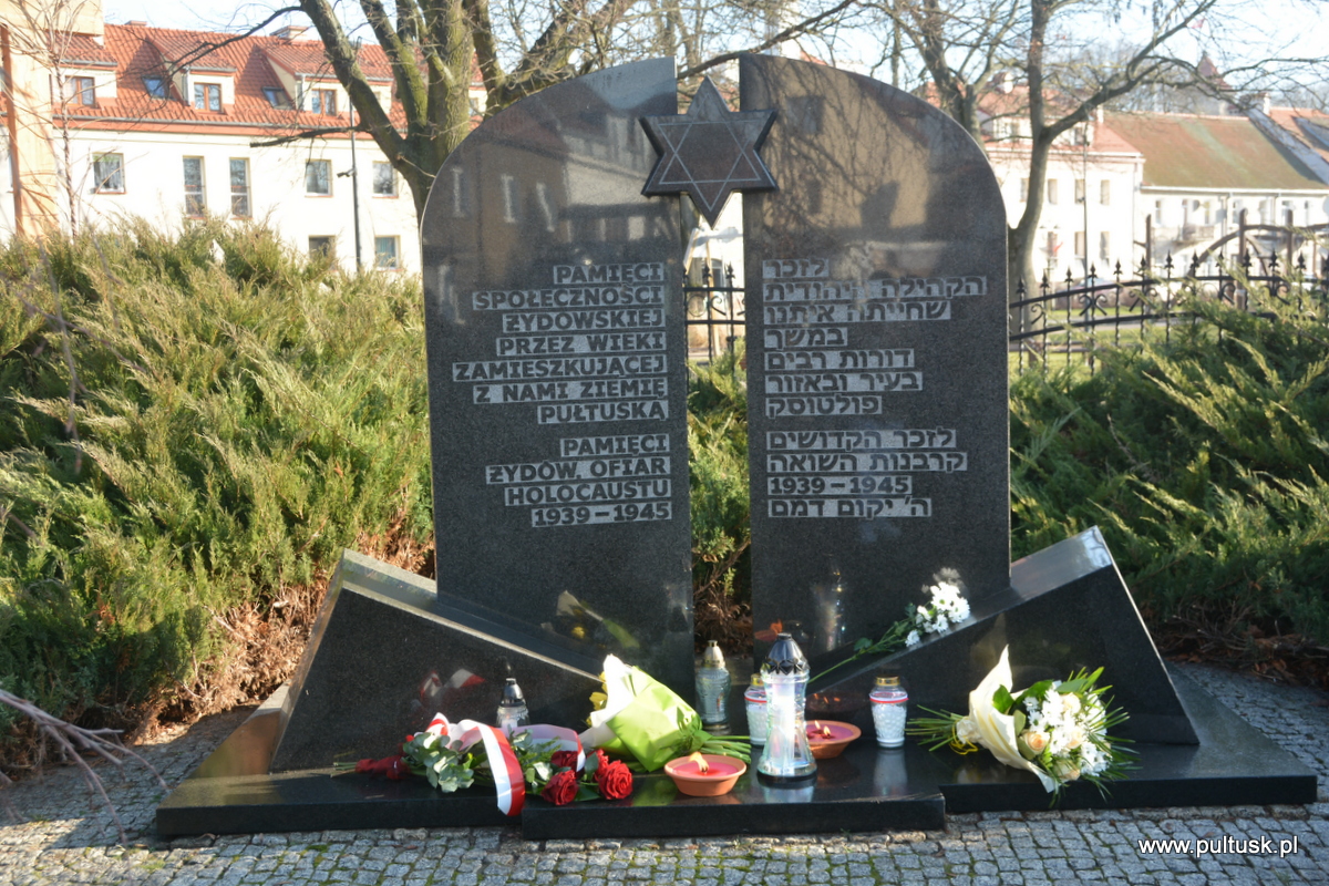 W poniedziałek, 27 stycznia br., w 80. rocznicę wyzwolenia niemieckiego obozu zagłady Auschwitz-Birkenau oraz Międzynarodowy Dzień Pamięci o Ofiarach Holokaustu, pod pomnikiem upamiętniającym pułtuskich Żydów złożono kwiaty i znicze. W zorganizowanym przez Wandę Koniecką-Pieńkos, nauczycielkę języka polskiego w Licem Ogólnokształcącym im. Piotra Skargi w Pułtusku wydarzeniu udział wzięli: Wicestarosta Pułtuski Emilia Gąsecka, Członek Zarządu Powiatu Robert Czyżewski, radna Rady Powiatu Krystyna Estkowska, Kierownik Wydziału Promocji, Kultury i Sportu Urzędu Miejskiego w Pułtusku Paulina Dąbkowska oraz przedstawiciele jednostek organizacyjnych i uczniowie pułtuskich szkół. Rys historyczny skierowany do wszystkich zgromadzonych przedstawiła dr Paulina Biernacka z Muzeum Regionalnego w Pułtusku. Gil Stein, w imieniu potomków Pułtuskich Żydów, podziękował uczestnikom za pamięć o ofiarach.