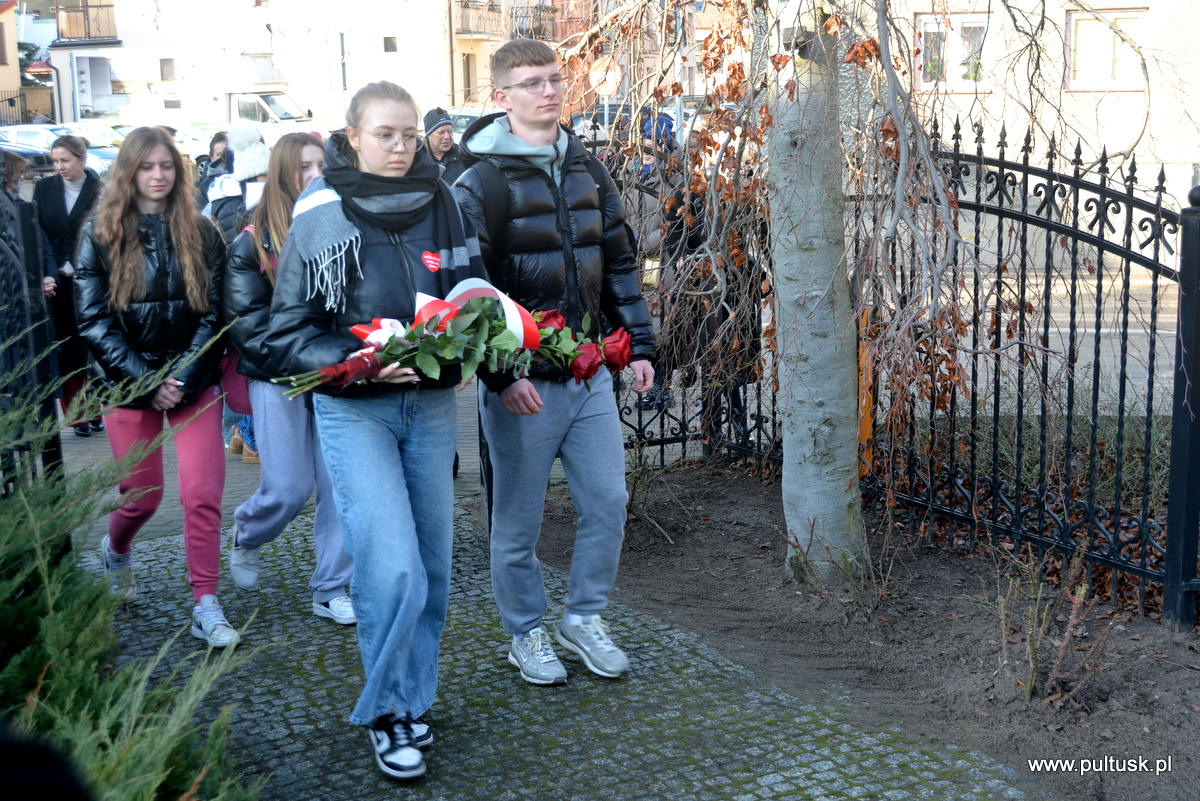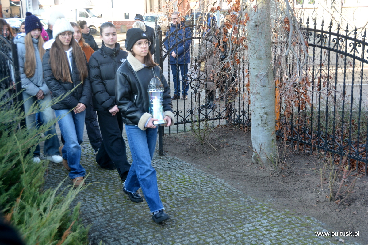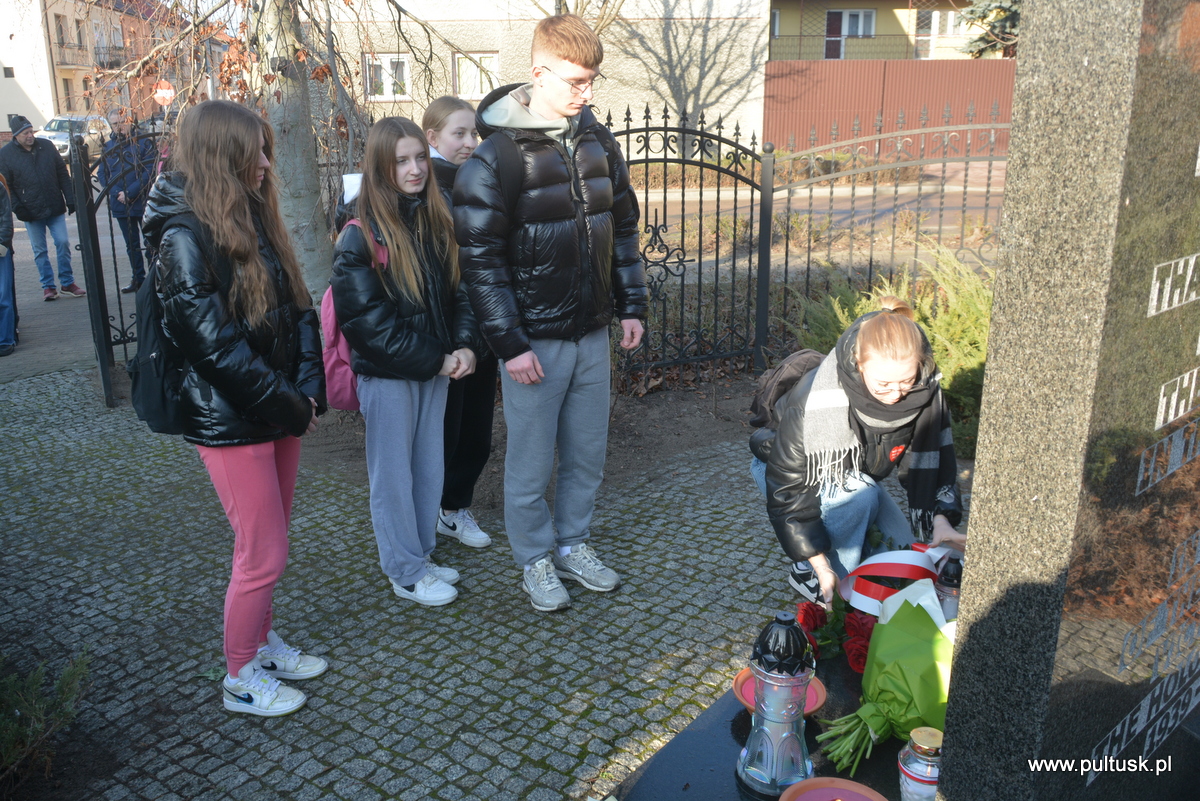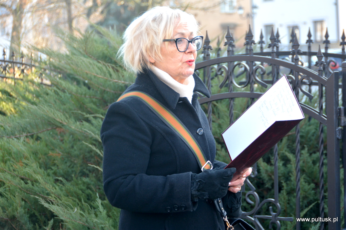 W poniedziałek, 27 stycznia br., w 80. rocznicę wyzwolenia niemieckiego obozu zagłady Auschwitz-Birkenau oraz Międzynarodowy Dzień Pamięci o Ofiarach Holokaustu, pod pomnikiem upamiętniającym pułtuskich Żydów złożono kwiaty i znicze. W zorganizowanym przez Wandę Koniecką-Pieńkos, nauczycielkę języka polskiego w Licem Ogólnokształcącym im. Piotra Skargi w Pułtusku wydarzeniu udział wzięli: Wicestarosta Pułtuski Emilia Gąsecka, Członek Zarządu Powiatu Robert Czyżewski, radna Rady Powiatu Krystyna Estkowska, Kierownik Wydziału Promocji, Kultury i Sportu Urzędu Miejskiego w Pułtusku Paulina Dąbkowska oraz przedstawiciele jednostek organizacyjnych i uczniowie pułtuskich szkół. Rys historyczny skierowany do wszystkich zgromadzonych przedstawiła dr Paulina Biernacka z Muzeum Regionalnego w Pułtusku. Gil Stein, w imieniu potomków Pułtuskich Żydów, podziękował uczestnikom za pamięć o ofiarach.