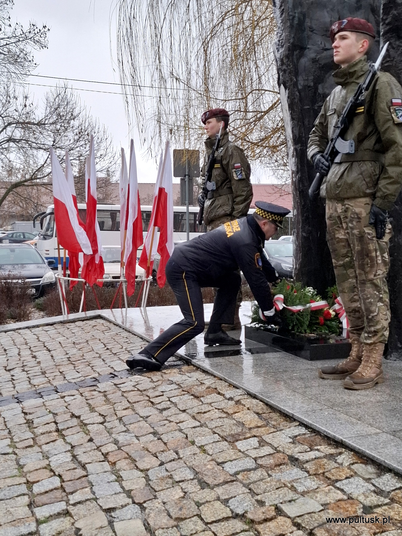 We wtorek, 17 grudnia 2024 r., pod pomnikiem upamiętniającym mieszkańców Ziemi Pułtuskiej pomordowanych i poległych w okresie II wojny światowej odbyła się uroczystość związana z 82. rocznicą publicznego stracenia przez gestapo czterech żołnierzy Armii Krajowej. W uroczystości udział wzięli przedstawiciele: kombatantów, Samorządu Powiatu Pułtuskiego, Samorządu Gminy Pułtusk – Burmistrz Miasta Pułtusk Beata Jóźwiak, Zastępca Burmistrza Miasta Pułtusk Mateusz Miłoszewski, Przewodniczący Rady Miejskiej w Pułtusku Łukasz Skarżyński, Komendant Straży Miejskiej Mariusz Gajkowski; służb mundurowych, pułtuskich stowarzyszeń, organizacji społecznych i politycznych, instytucji, szkół, przedsiębiorstw. Wartę honorową podczas uroczystości pełnili uczniowie I Liceum Ogólnokształcącego CN-B im. 13 Pułku Piechoty. Jej dowódcą był uczeń Szymon Jaszczułt.