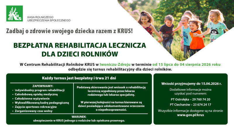 Bezpłatna rehabilitacja lecznicza dla dzieci rolników