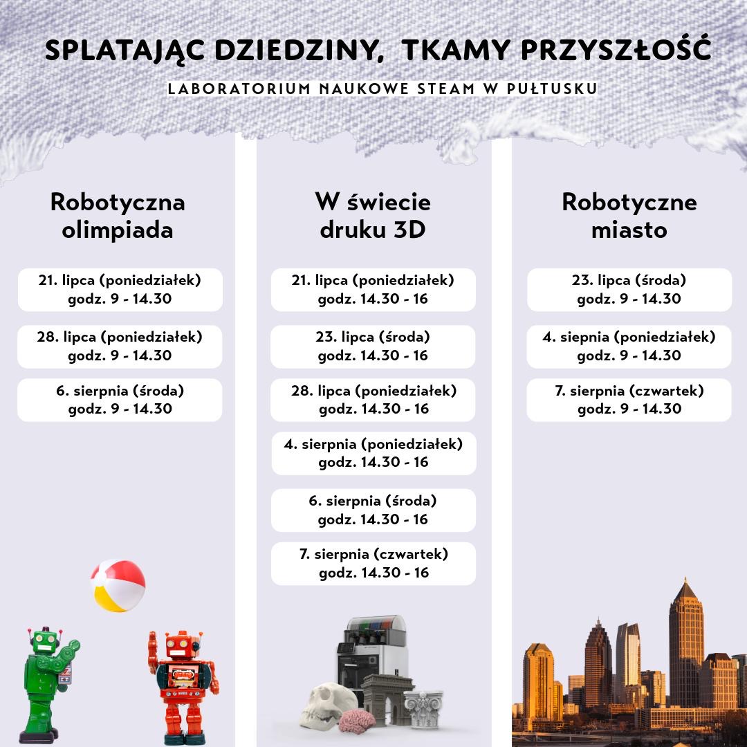 Serdecznie zapraszamy młodych mieszkańców Pułtuska i okolic do udziału w wyjątkowych, bezpłatnych warsztatach edukacyjnych z zakresu robotyki, konstruowania i druku 3D. To doskonała okazja, aby poprzez zabawę rozwinąć kreatywność, logiczne myślenie i zainteresowania techniczne.