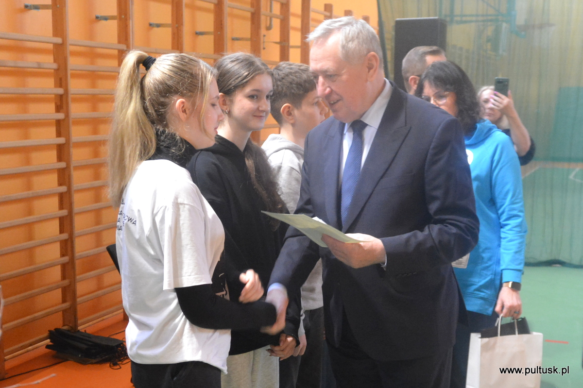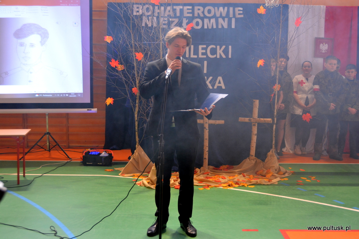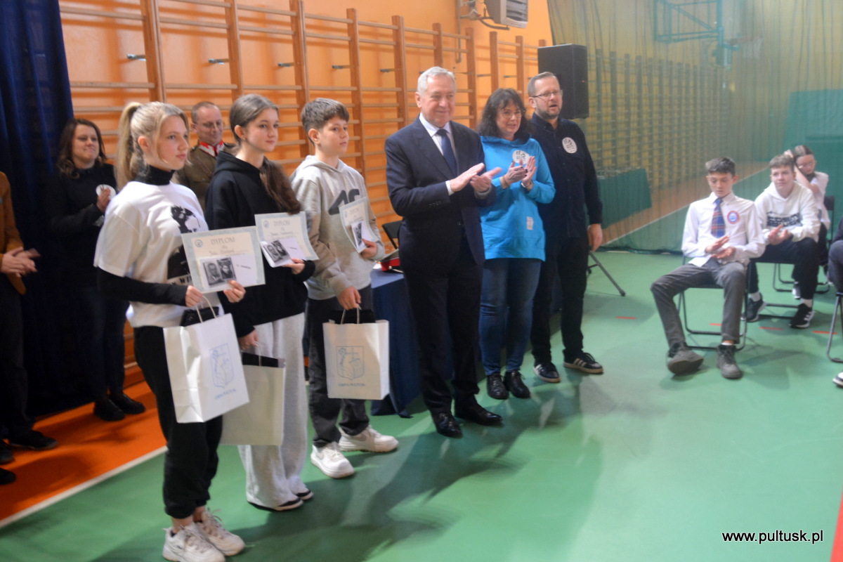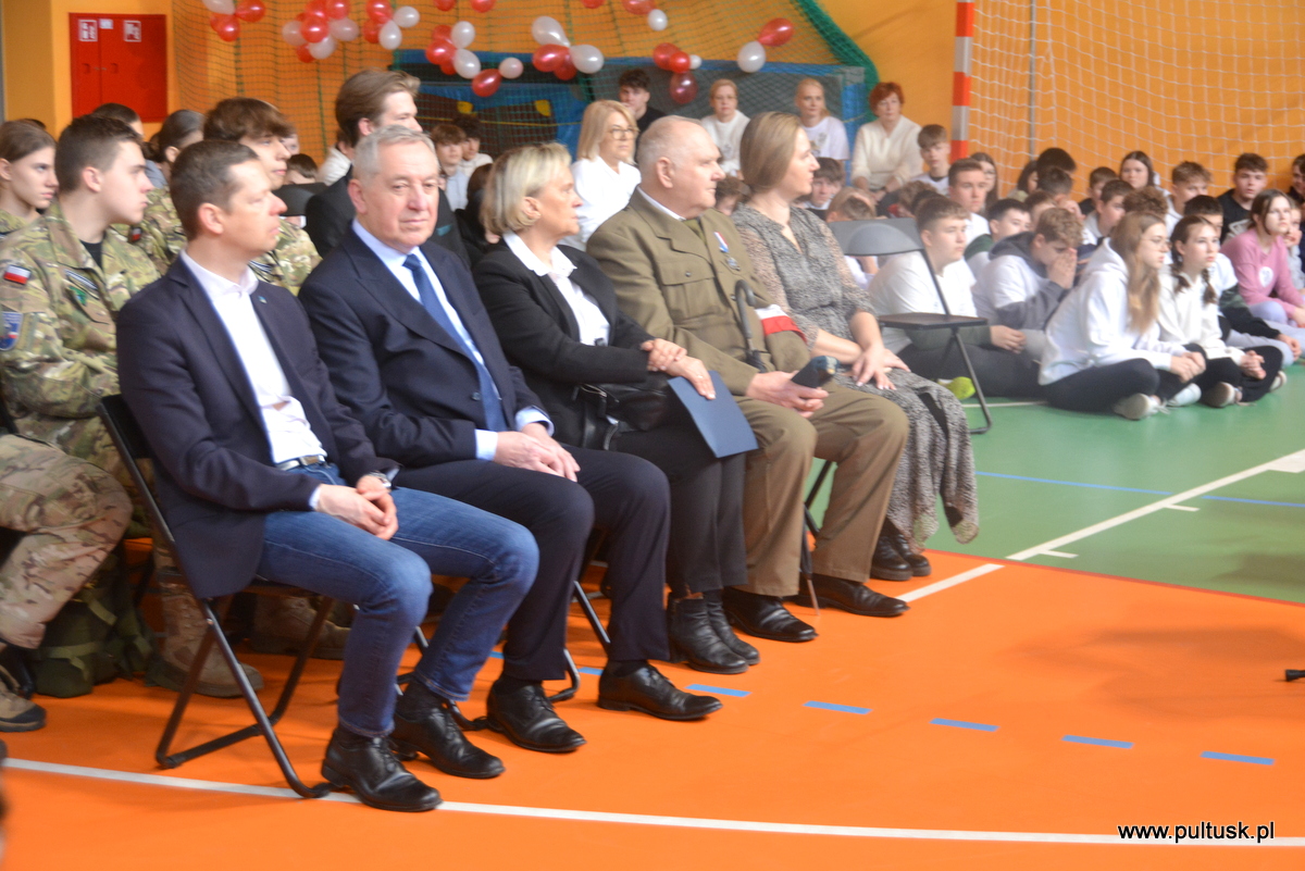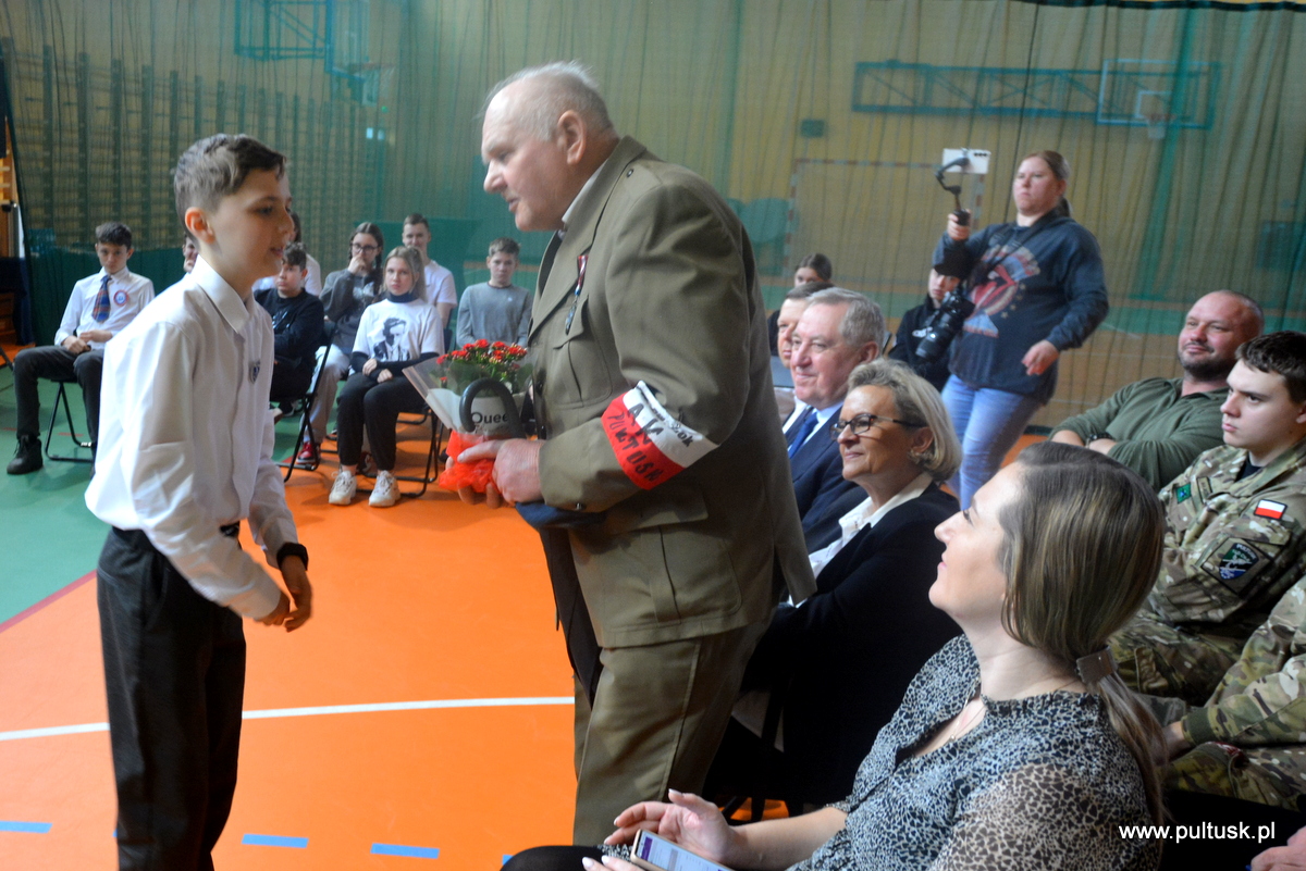 W ramach Narodowego Dnia Pamięci Żołnierzy Wyklętych Społeczność Publicznej Szkoły Podstawowej nr 3 z Oddziałami Integracyjnymi im. Tadeusza Kościuszki w Pułtusku, 28 lutego br. zorganizowała Galę Patriotyczną poprzedzoną Biegiem „Tropem Wilczym”. W wydarzeniach udział wzięli m in.: Poseł na Sejm Henryk Kowalczyk, Zastępca Burmistrza Miasta Pułtusk Mateusz Miłoszewski, Dyrektor Miejskiego Ośrodka Sportu i Rekreacji w Pułtusku Marta Tyszkiewicz-Wymysłowska oraz Kierownik Pływalni Miejskiej Marcin Nożykowski. Po zakończeniu zmagań fizycznych w hali PSP nr 3 przeprowadzony został Konkurs gminny „Pilecki i Inka – bohaterowie niezłomni”. W skład jury konkursu weszli Adiunkt Muzeum Regionalnego w Pułtusku Michał Świdwa – przewodniczący jury, Wicedyrektor PSP nr 3 w Pułtusku Małgorzata Kaczmarczyk oraz Nauczyciel historii i informatyki z PSP nr 3 w Pułtusku Jarosław Ronewicz. Następnie wszyscy uczestnicy wydarzenia obejrzeli występ artystyczny „Żołnierze wyklęci, ale niezapomniani” oraz wysłuchali wywiadu autorstwa absolwenta szkoły Karola Parzychowskiego na temat życia i śmierci Juliusza Bobowskiego – żołnierza Narodowych Sił Zbrojnych Armii Krajowej, przeprowadzonego z jego bratem Ryszardem Bobowskim. Patronat nad wydarzeniem objęli: Poseł na Sejm RP Henryk Kowalczyk oraz Burmistrz Miasta Pułtusk Beata Jóźwiak. Poniżej przedstawiamy listę laureatów konkursu: