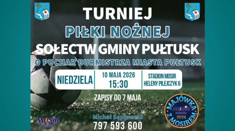 Read MoreOrganizatorzy zapraszają do udziału w Turnieju Piłki Nożnej Sołectw Gminy Pułtusk o Puchar Burmistrza. Wydarzenie odbędzie się w niedzielę, 10
