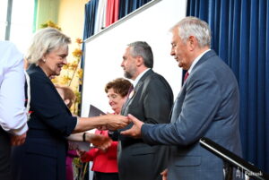 Z tej wyjątkowej okazji na ręce Dyrektor Szkoły Izabeli Trzcińskiej złożono liczne gratulacje, życzenia oraz podziękowania za wieloletnią i owocną współpracę. Burmistrz Miasta Pułtusk – Beata Jóźwiak oraz Zastępca Burmistrza – Mateusz Miłoszewski przekazali symboliczne kwiaty i roślinny upominek, wyrażając tym samym uznanie dla pracy całej społeczności szkolnej. Przewodniczący Rady Miejskiej w Pułtusku – Łukasz Skarżyński, oprócz serdecznych życzeń i gratulacji, przekazał na rzecz szkoły projektor multimedialny, który z pewnością posłuży uczniom i nauczycielom w codziennej pracy dydaktycznej.
