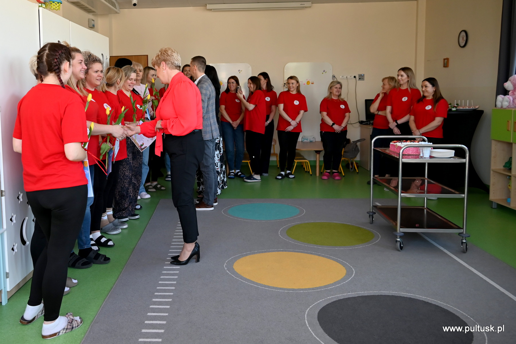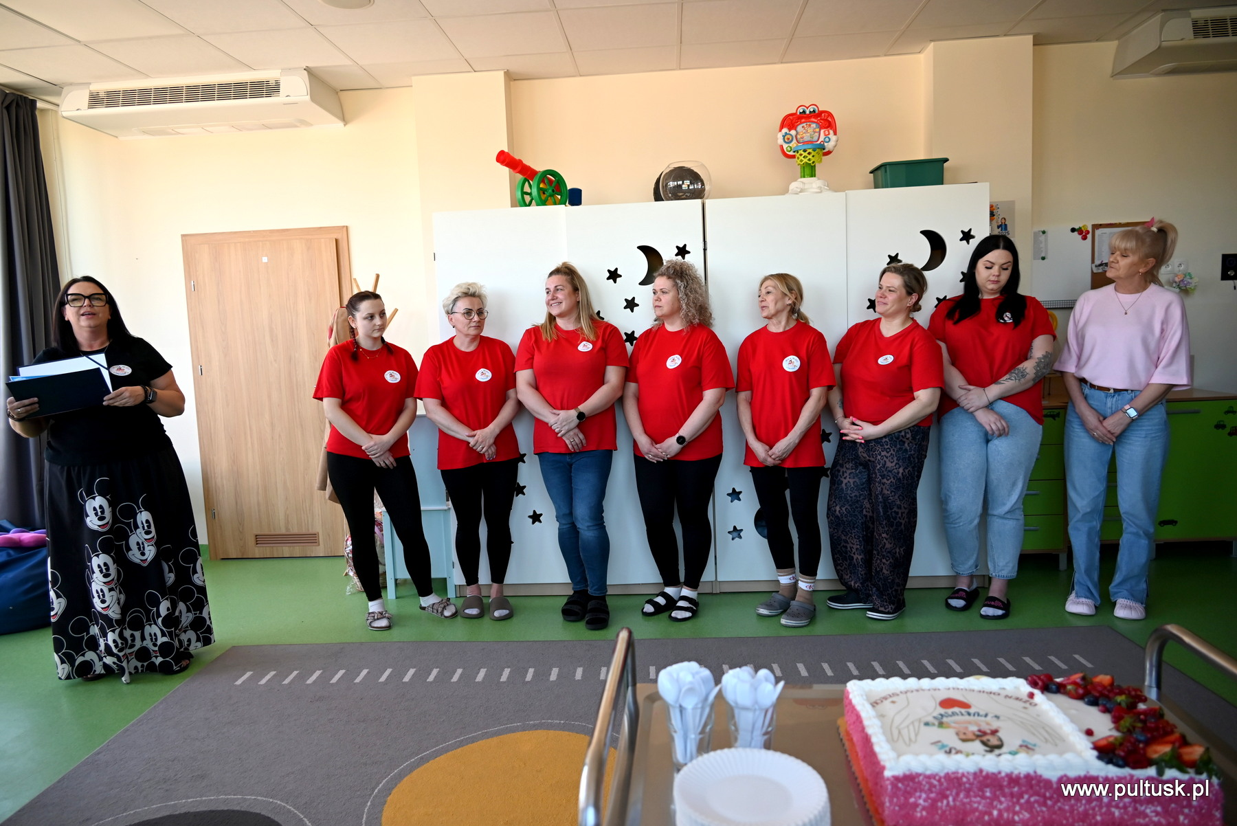 W uroczystości udział wzięli przedstawiciele Samorządu Gminy Pułtusk – Burmistrz Miasta Pułtusk Beata Jóźwiak, Zastępca Burmistrza Mateusz Miłoszewski oraz Przewodniczący Rady Miejskiej Łukasz Skarżyński. Ich obecność była dla wszystkich niespodzianką i dowodem na to, jak ważna i doceniana jest praca opiekunów. Spotkanie zakończyło się słodkim akcentem w postaci tortu od władz Gminy.