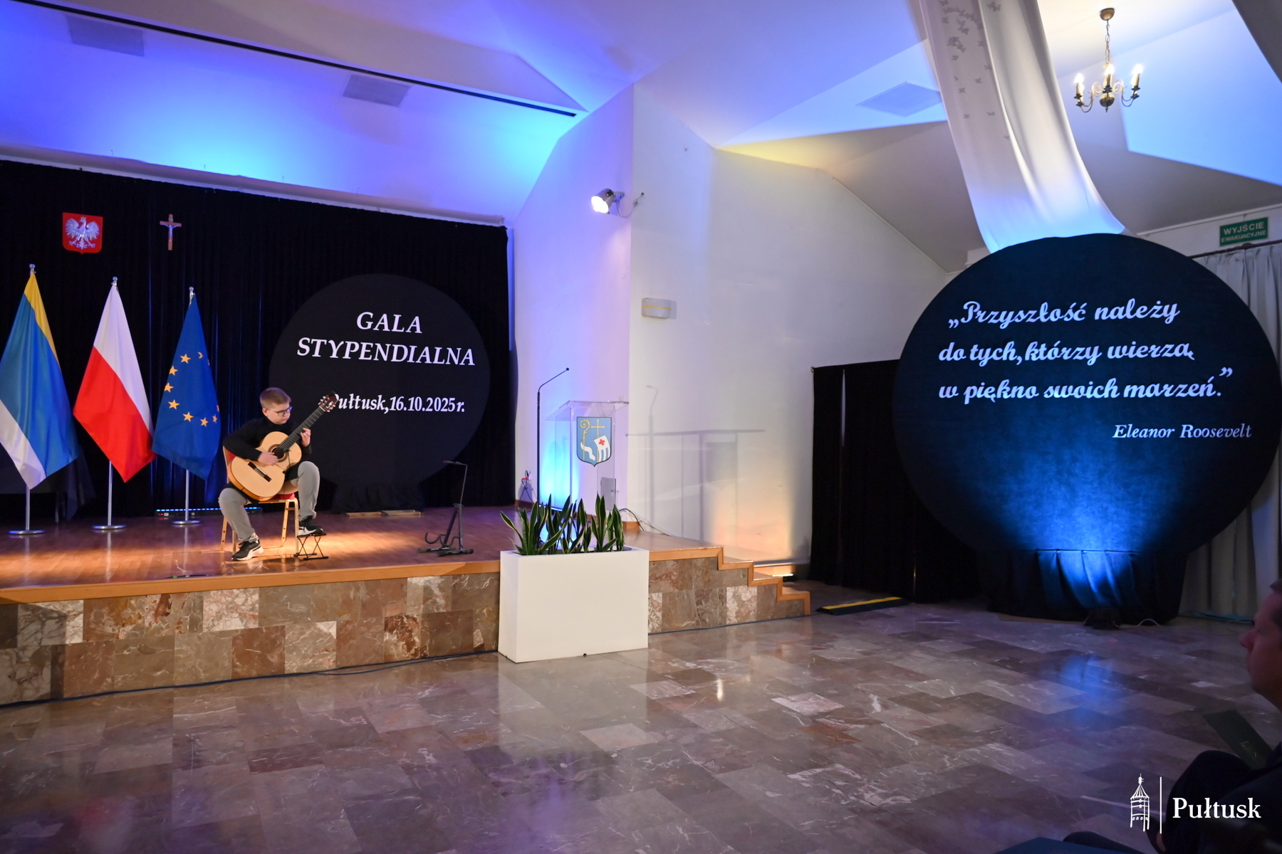 Ceremonię wręczenia stypendiów poprzedził występ uczniów pułtuskich szkół – wokalistek: Hanny Madei (PSP nr 2) i Alicji Paradowskiej (PSP nr 4) oraz gitarzysty Kacpra Chojeckiego (PSP nr 1).