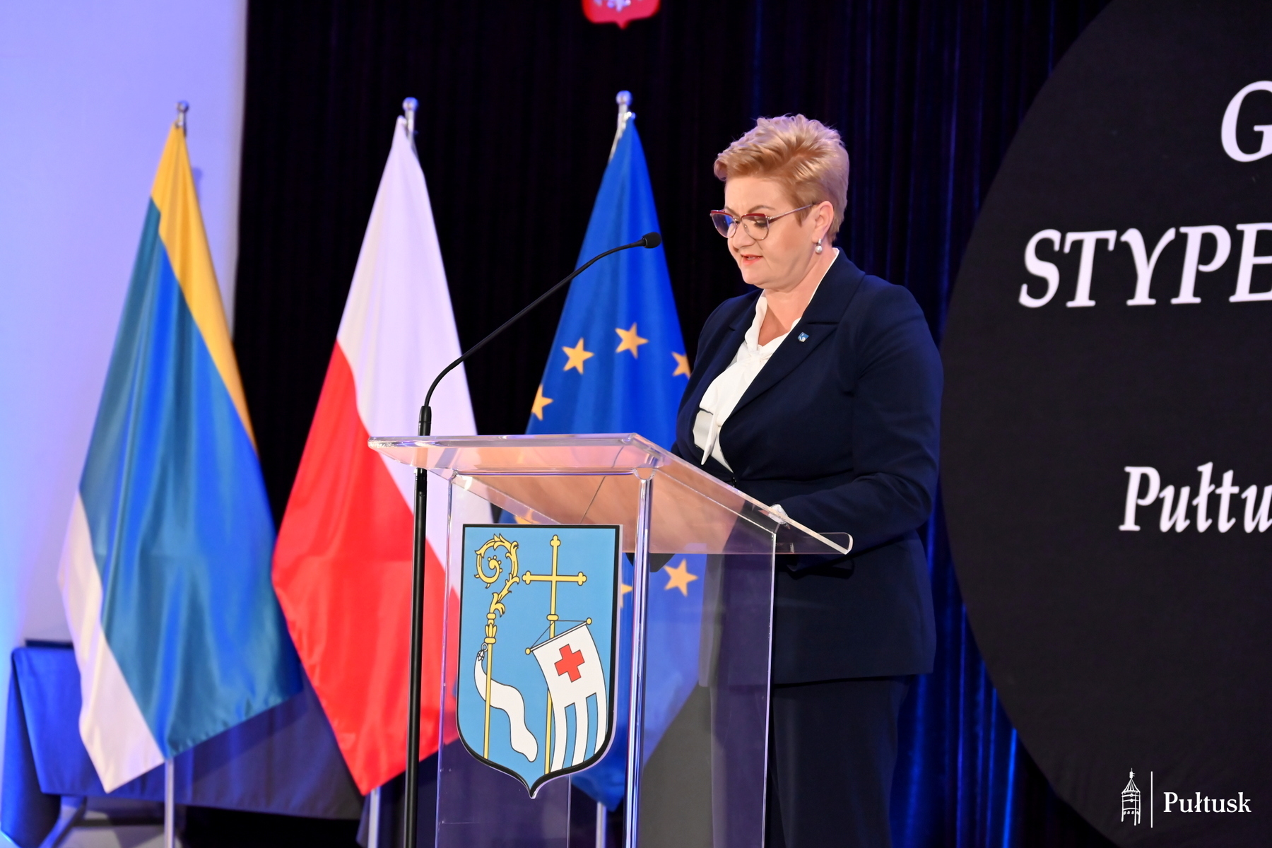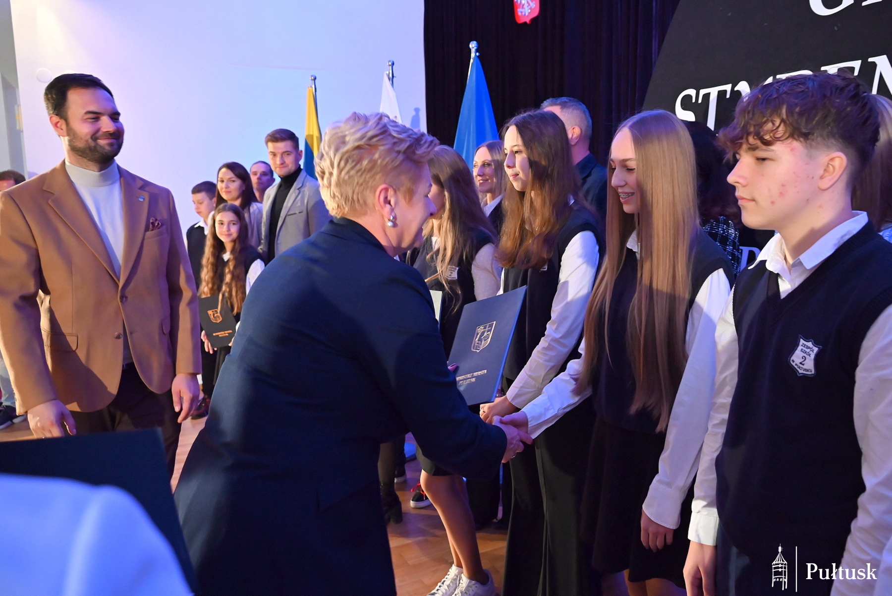 Uczestników wydarzenia powitał Zastępca Burmistrza Miasta Pułtusk Mateusz Miłoszewski, po którym głos zabrała gospodarz uroczystości Burmistrz Beata Jóźwiak. Zwracając się do stypendystów, powiedziała „Drodzy Uczniowie, Stypendia Burmistrza Miasta Pułtusk to wyraz uznania dla wysiłku, konsekwencji i ambicji, w postaci symbolicznego wyróżnienia finansowego. Każdy z Was jest przykładem, że warto marzyć, stawiać sobie cele i z odwagą po nie sięgać”. Burmistrz podziękowała, złożyła gratulacje i życzenia uczniom, ich rodzicom oraz nauczycielom i trenerom.