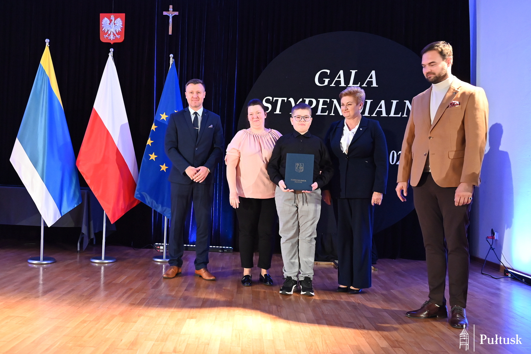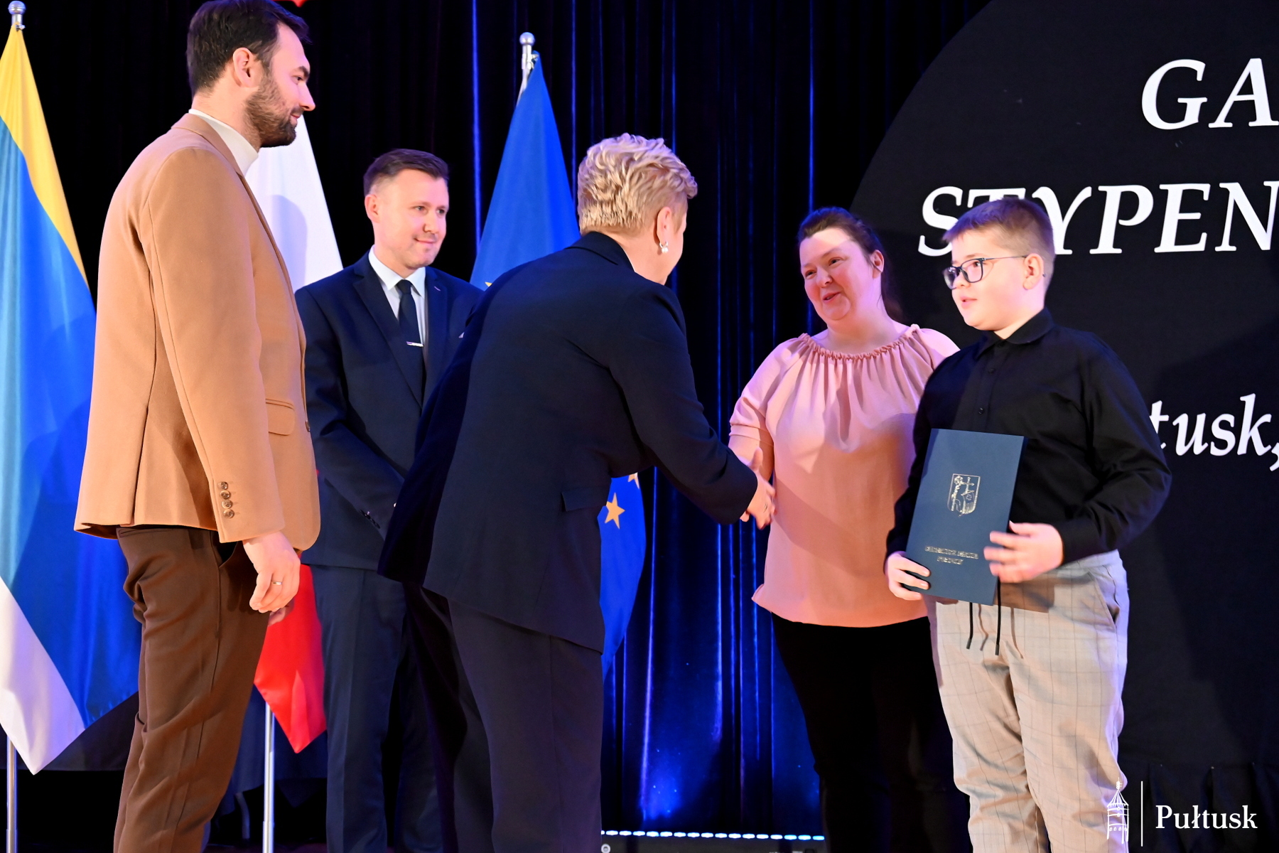 Stypendium artystyczne – Kacprowi Chojeckiemu – uczniowi Publicznej Szkoły Podstawowej Nr 1 im. Klaudyny Potockiej w Pułtusku wręczyli Burmistrz Beata Jóźwiak, Przewodniczący Łukasz Skarżyński i Dyrektor Publicznej Szkoły Podstawowej nr 1 im. Klaudyny Potockiej w Pułtusku Kamil Grabowski.