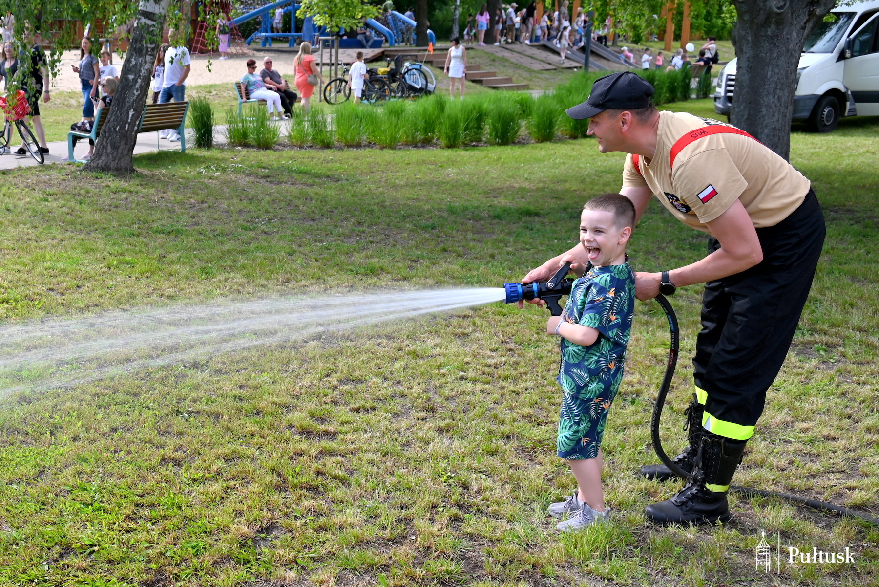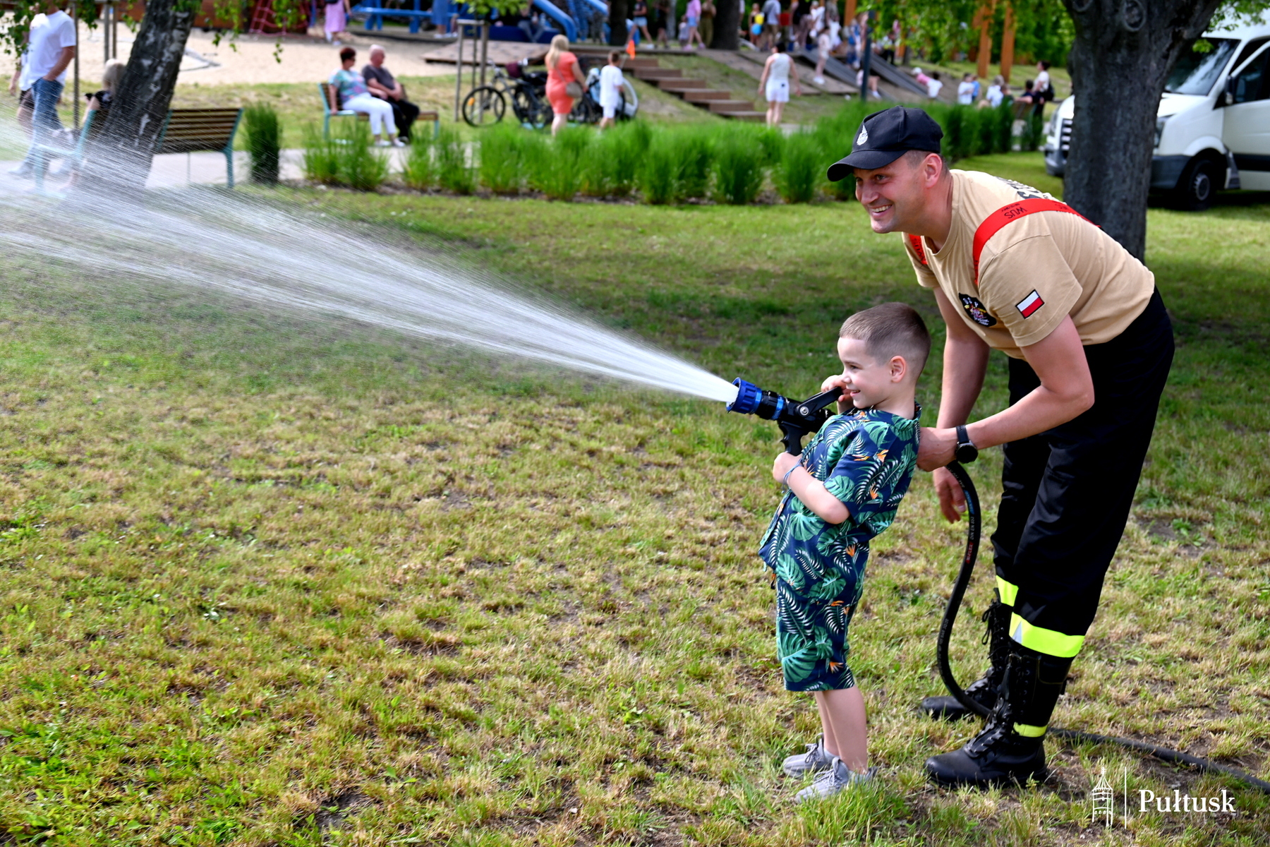Wielką frajdą dla najmłodszych okazał się również pokaz wozów strażackich, przygotowany przez jednostki OSP z Trzcińca, Lipnik Starych i Płocochowa. Mali uczestnicy mogli nie tylko wejść do środka pojazdów i poczuć się jak prawdziwi strażacy, ale także uruchomić syreny, światła ostrzegawcze. Ogromne emocje wzbudziła też możliwość lania wody z prawdziwego strażackiego węża.