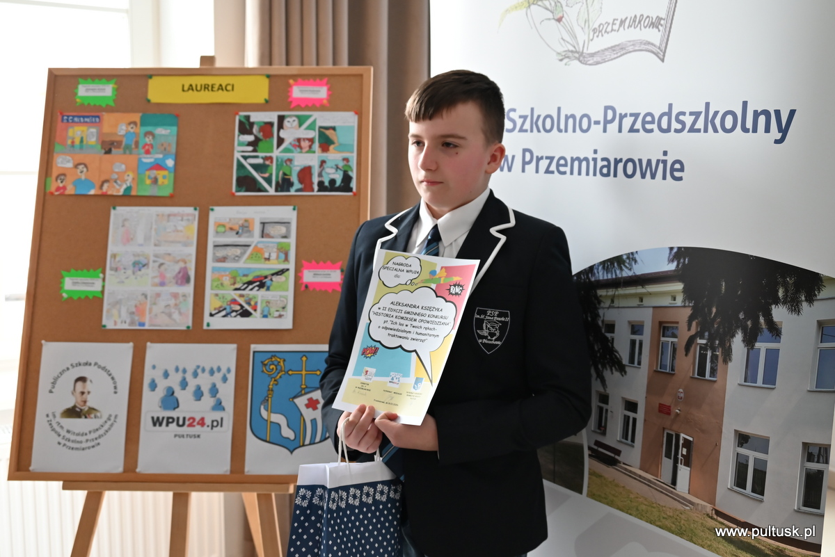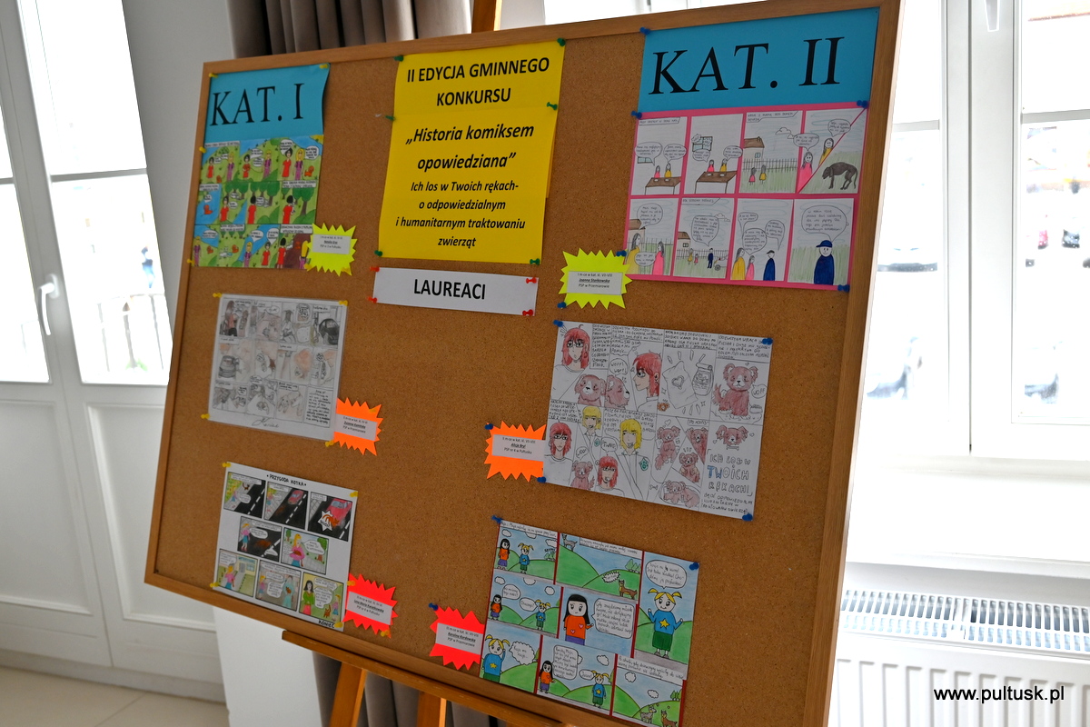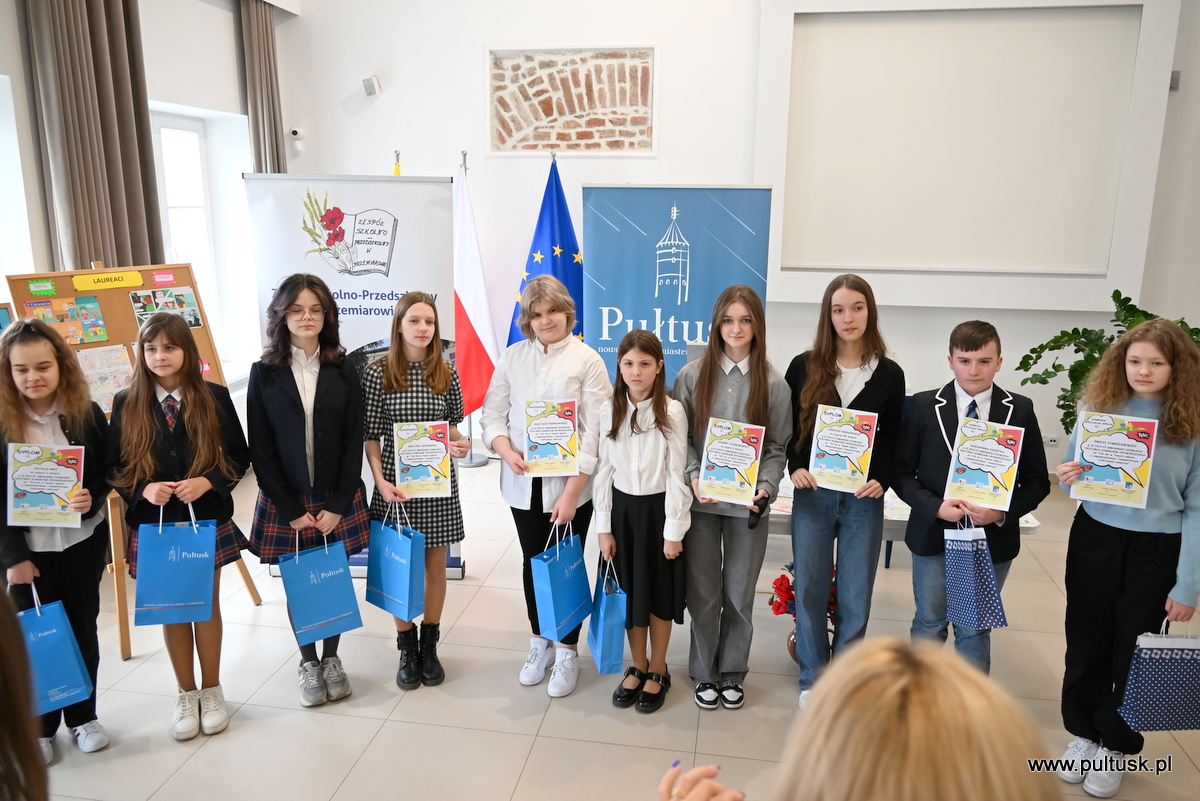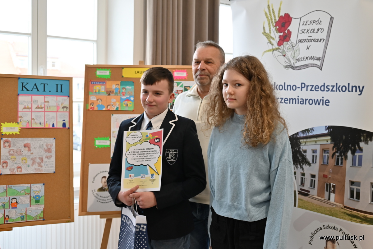 We wtorek, 18 marca 2025 r. odbyło się podsumowanie II Edycji konkursu „Historia komiksem opowiedziana” pod hasłem „Ich los w Twoich rękach – o odpowiedzialnym i humanitarnym traktowaniu zwierząt”, którego organizatorem była Publiczna Szkoła Podstawowa im. rtm. W. Pileckiego w Zespole Szkolno – Przedszkolnym w Przemiarowie. Patronat honorowy nad nim objęła Burmistrz Miasta Pułtusk – Beata Jóźwiak, patronat medialny sprawował pułtuski portal informacyjny wpu24.