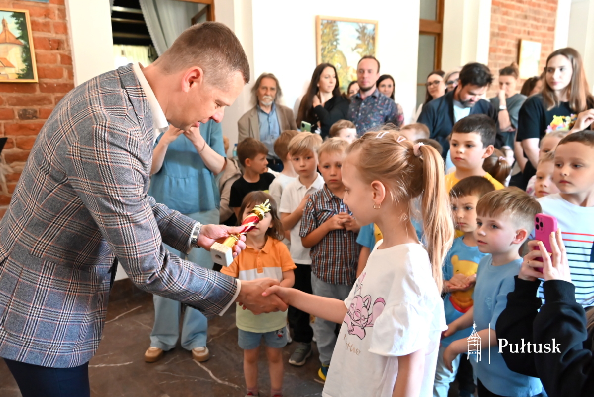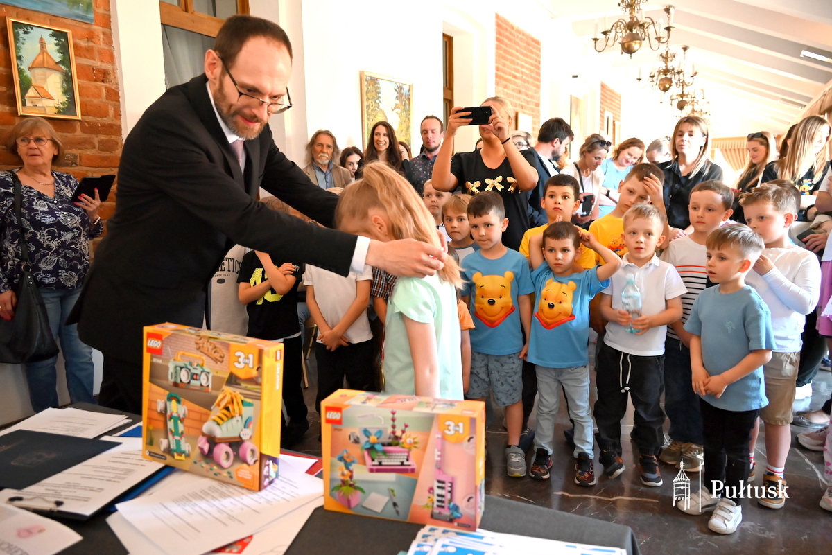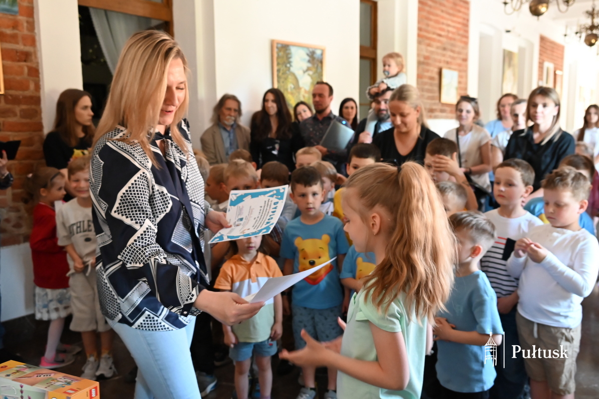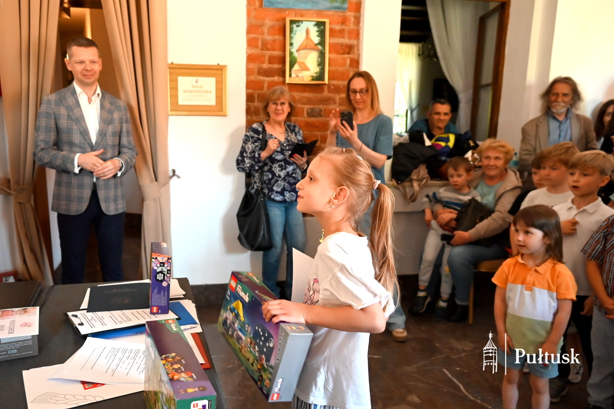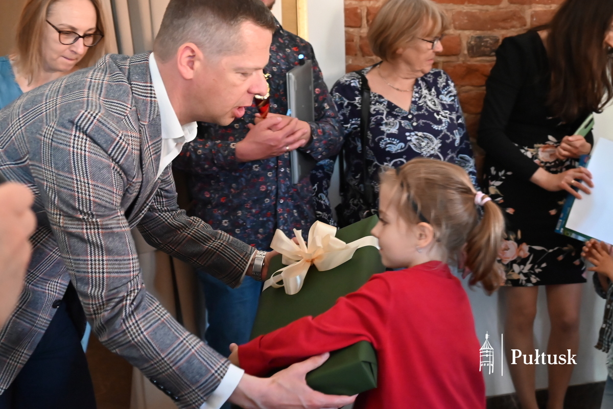 Zastępca Burmistrza przekazał również od Burmistrz Beaty Jóźwiak dyplom gratulacyjny i nagrodę dla Antoniny Dąbrowskiej – Mistrzyni Mazowsza w kategorii do lat 7, która osiągnęła wspaniały wynik – zajęła 7 miejsce podczas Mistrzostw Polski rozegranych w dniach 12-16 maja 2025 roku w Chotowie.