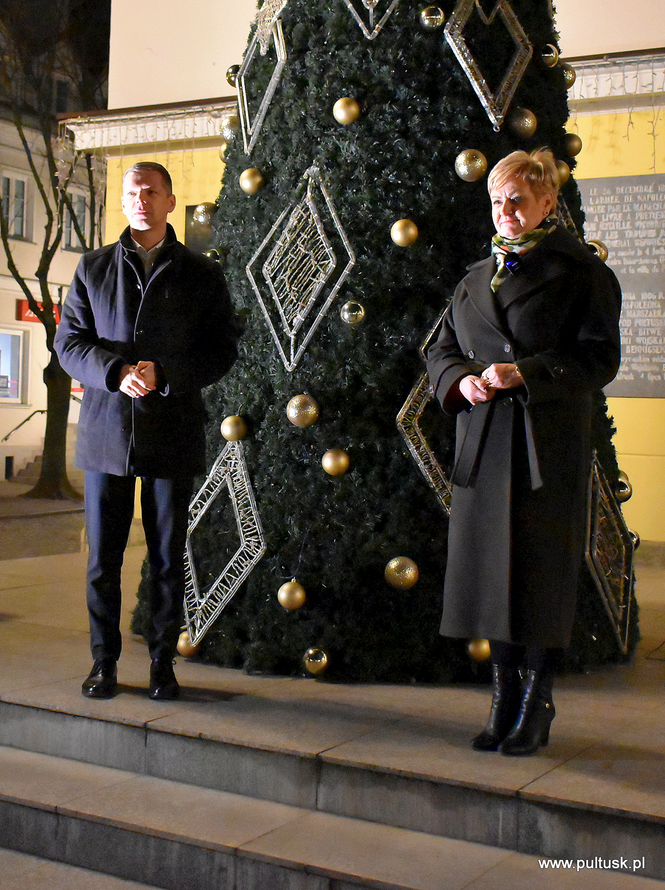 Burmistrz Miasta Pułtusk Beata Jóźwiak oraz Zastępca Burmistrza Mateusz Miłoszewski oficjalnie włączyli 6 grudnia 2024 r. świąteczne iluminacje w naszym mieście.