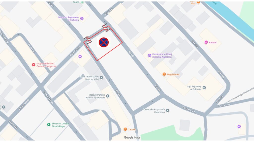 INFORMACJA O ZAKAZIE PARKOWANIA 29/04/2026 Zawiadamiamy właścicieli i użytkowników pojazdów parkujących na Rynku, że w dniu 3 maja 2026 r. (niedziela) w godz. 6:00 – 16:00 na wyznaczonym terenie tj. od przejazdu za wieża Ratuszową do budynków nr 23 i 36 będzie obowiązywał zakaz parkowania. Komenda Straży Miejskiej w Pułtusku