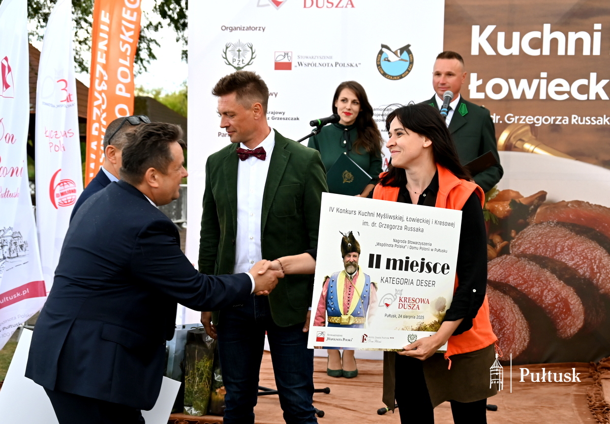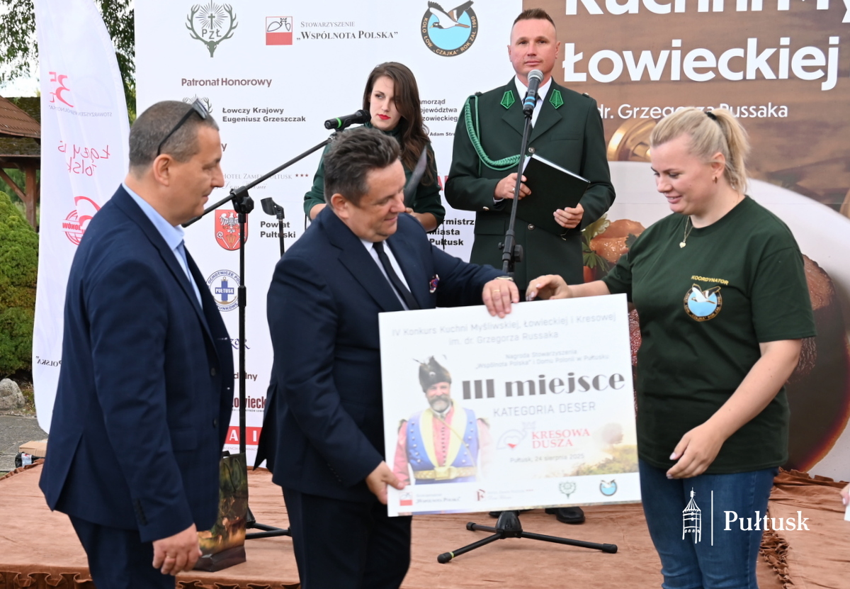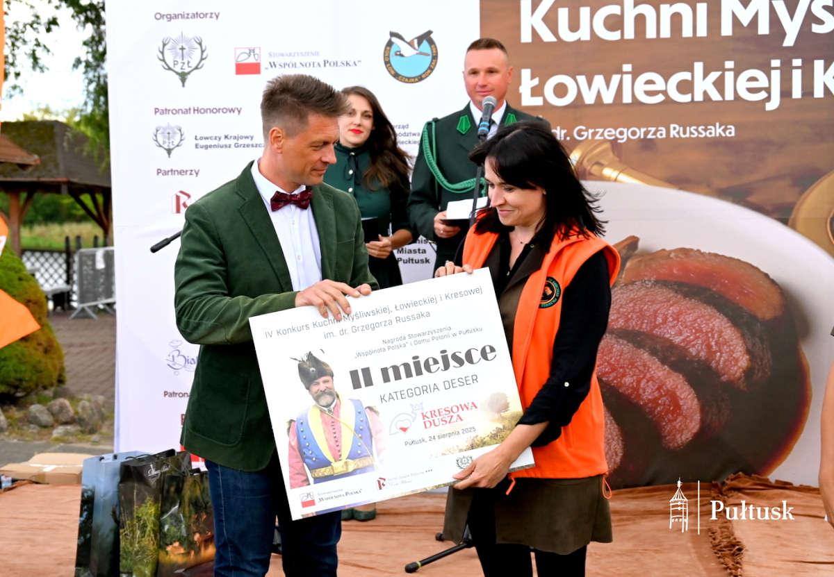 Niedziela, 24 sierpnia 2025 r. upłynęła w Pułtusku pod znakiem kultury myśliwskiej, łowieckiej i kresowej. W ramach Festiwalu KRESOWA DUSZA, na terenie Domu Polonii w Pułtusku, odbył się I Ciechanowski Konkurs Sygnalistów i Muzyki Myśliwskiej oraz IV Konkurs Kuchni Myśliwskiej, Łowieckiej i Kresowej im. dr. Grzegorza Russaka, którego jednym z partnerów była Gmina Pułtusk.
