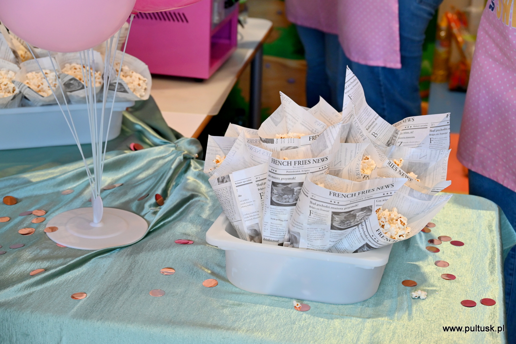 Podczas balu dzieci mogły skosztować słodkich przysmaków – czekał na nie poczęstunek, popcorn i wata cukrowa, które dodawały energii do dalszej zabawy.