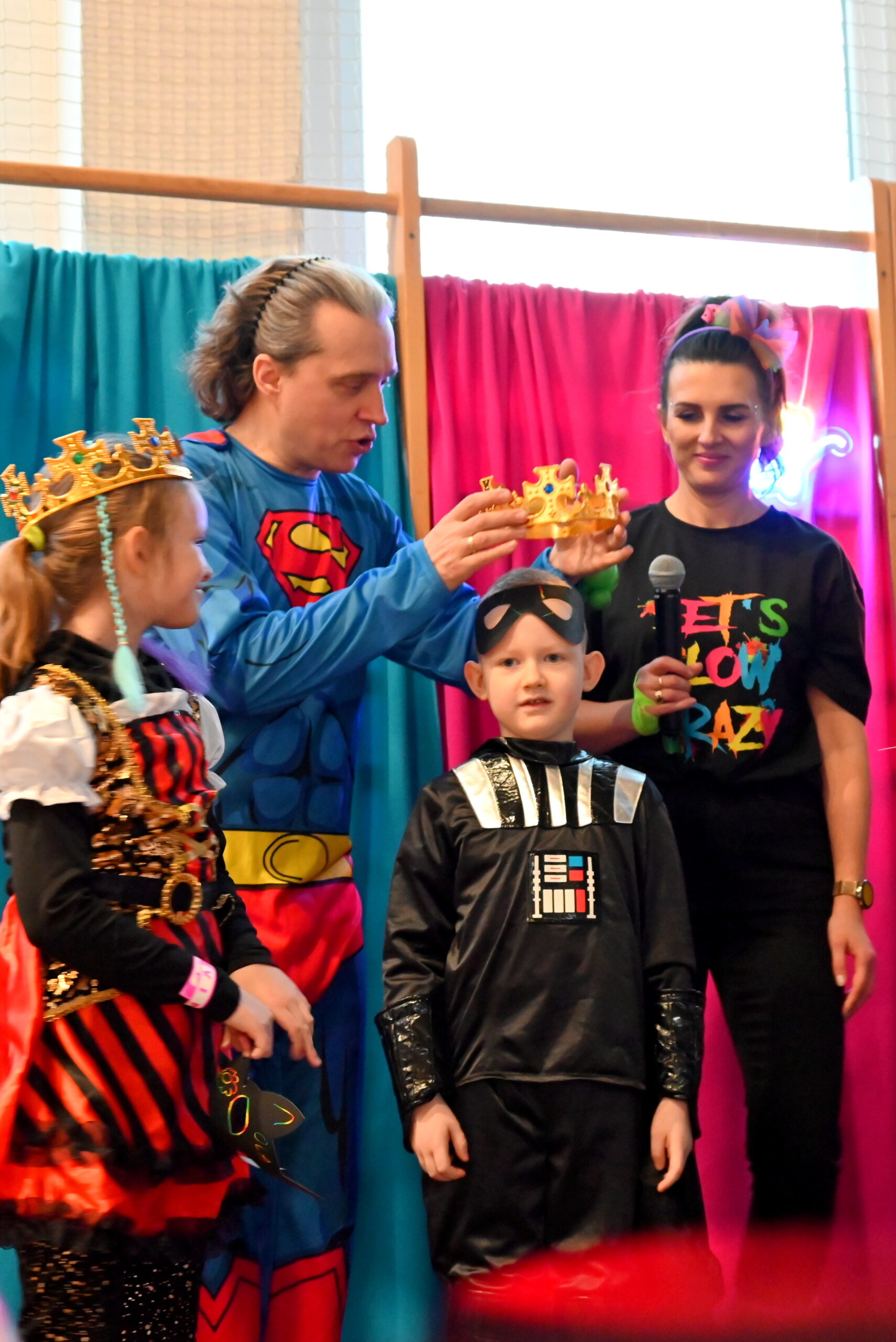 Dzieci, ubrane w bajkowe kostiumy, wypełniły halę sportową. Gry i zabawy z animatorami dostarczyły mnóstwa uśmiechu, a konkursy sprawiły, że każdy mógł poczuć się wyjątkowo. Wielkim zainteresowaniem cieszyły się dmuchane zjeżdżalnie, kolorowe warkoczyki i tatuaże, które dodawały balowym stylizacjom jeszcze więcej dziecięcego uroku.