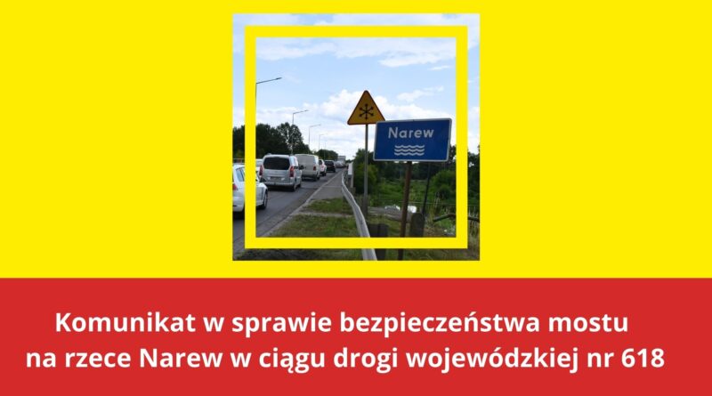 Komunikat w sprawie bezpieczeństwa mostu na rzece Narew w ciągu drogi wojewódzkiej nr 618