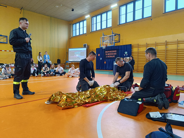 Jednym z etapów konkursu był pokaz pierwszej pomocy, który przeprowadzili strażacy z Państwowej Straży Pożarnej w Pułtusku. Uczniowie mieli okazję zapoznać się z podstawowymi technikami udzielania pomocy w nagłych wypadkach, jak resuscytacja krążeniowo-oddechowa, opatrywanie ran, czy postępowanie w przypadku zadławienia. Strażacy szczegółowo wyjaśnili, jak reagować w różnych sytuacjach zagrożenia życia, co spotkało się z dużym zainteresowaniem uczestników.