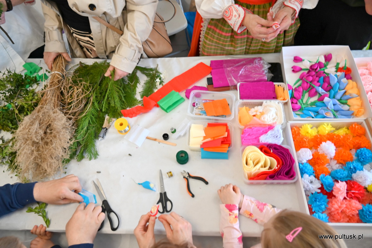 Ogromnym zainteresowaniem cieszyły się warsztaty plastyki obrzędowej w Centrum Dziedzictwa Kulturowego, podczas których uczestnicy – zarówno dzieci, jak i dorośli – własnoręcznie wykonywali tradycyjne palmy, pisanki i wycinanki pod okiem twórców ludowych.