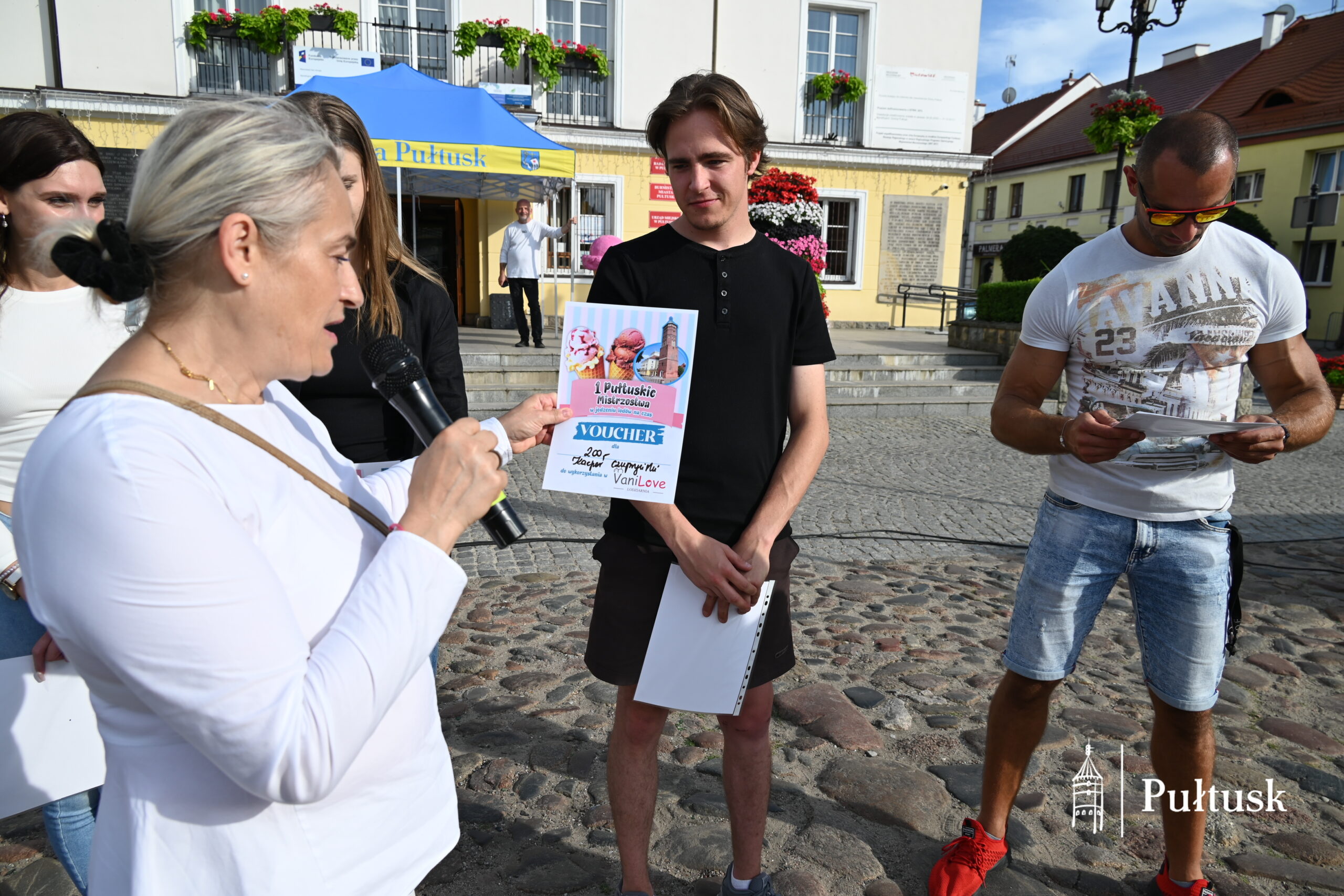 Po intensywnych zmaganiach przyszedł czas na nagrody. O 17:30 ogłoszono zwycięzców konkursu na najciekawsze hasło promujące lody i Pułtusk. Następnie odbyło się losowanie upominków wśród darczyńców, którzy wsparli zbiórkę dla zwierząt prowadzoną przez Fundację Psiamać i Fundację Pso Ty i Koty.