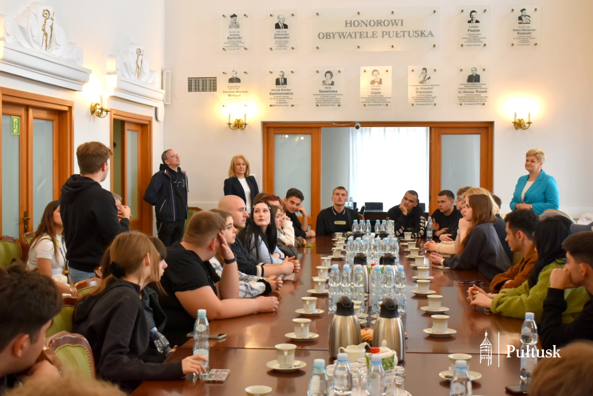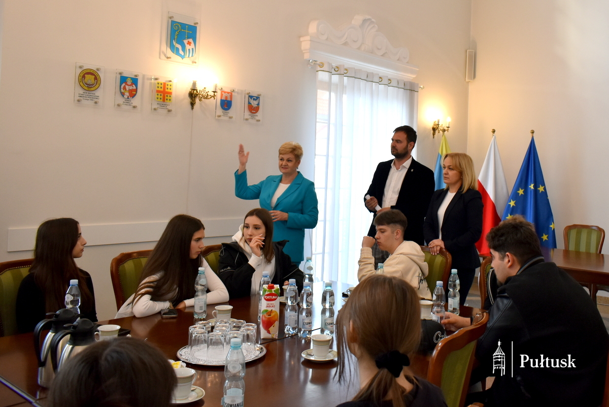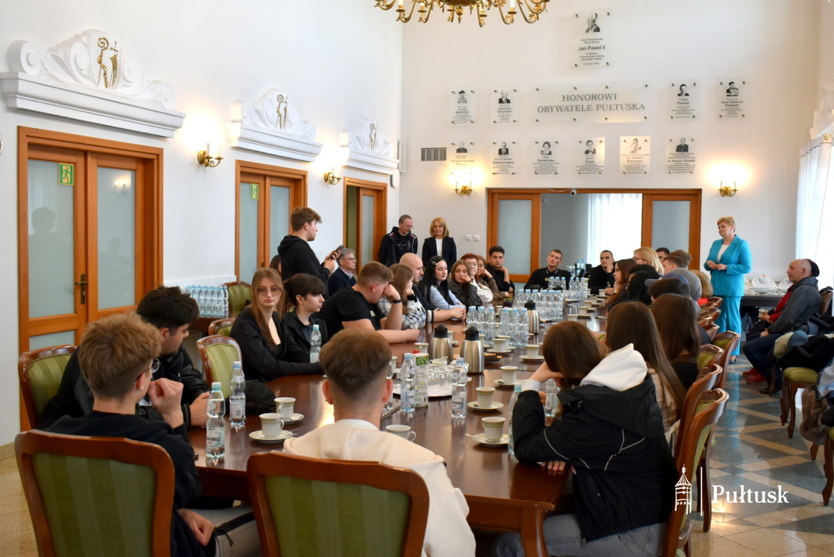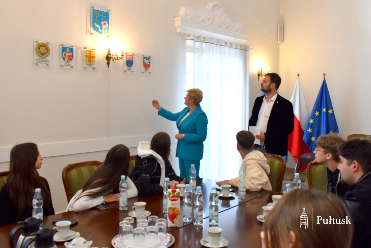12 maja 2025 roku uczestnicy odwiedzili Urząd Miejski w Pułtusku. W Sali Rady młodzież spotkała się z Burmistrz Miasta Pułtusk Beatą Jóźwiak, Przewodniczącym Rady Miejskiej Łukaszem Skarżyńskim oraz Sekretarz Miasta Patrycją Kazimierczak.