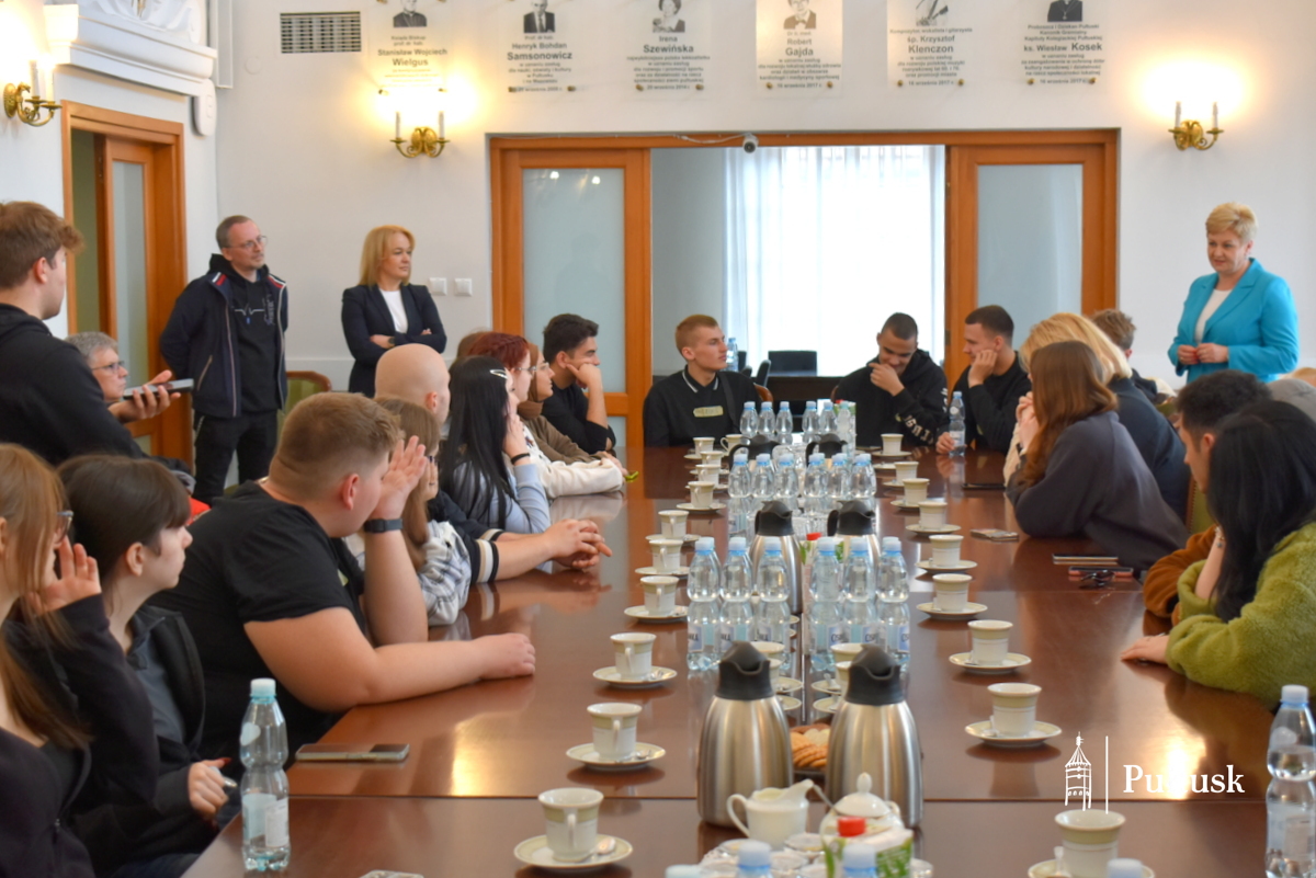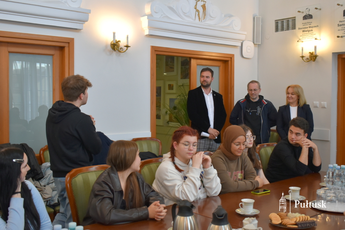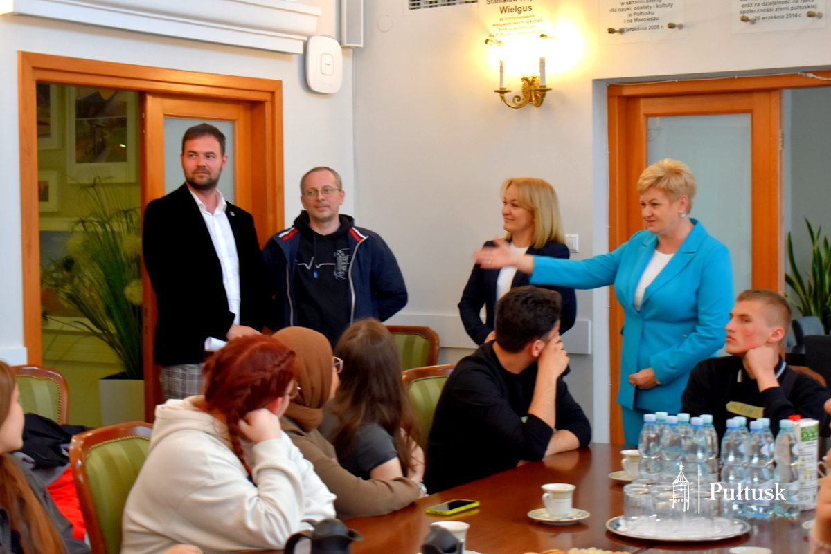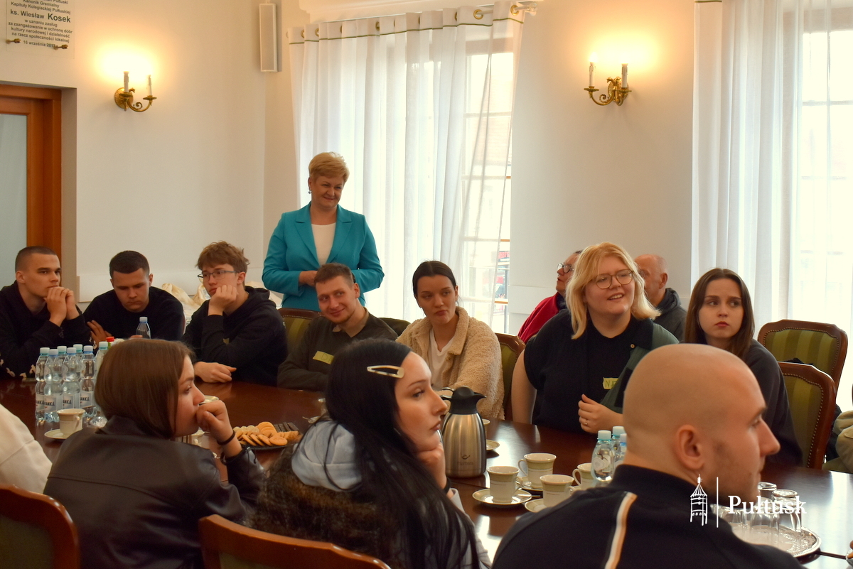 12 maja 2025 roku uczestnicy odwiedzili Urząd Miejski w Pułtusku. W Sali Rady młodzież spotkała się z Burmistrz Miasta Pułtusk Beatą Jóźwiak, Przewodniczącym Rady Miejskiej Łukaszem Skarżyńskim oraz Sekretarz Miasta Patrycją Kazimierczak.