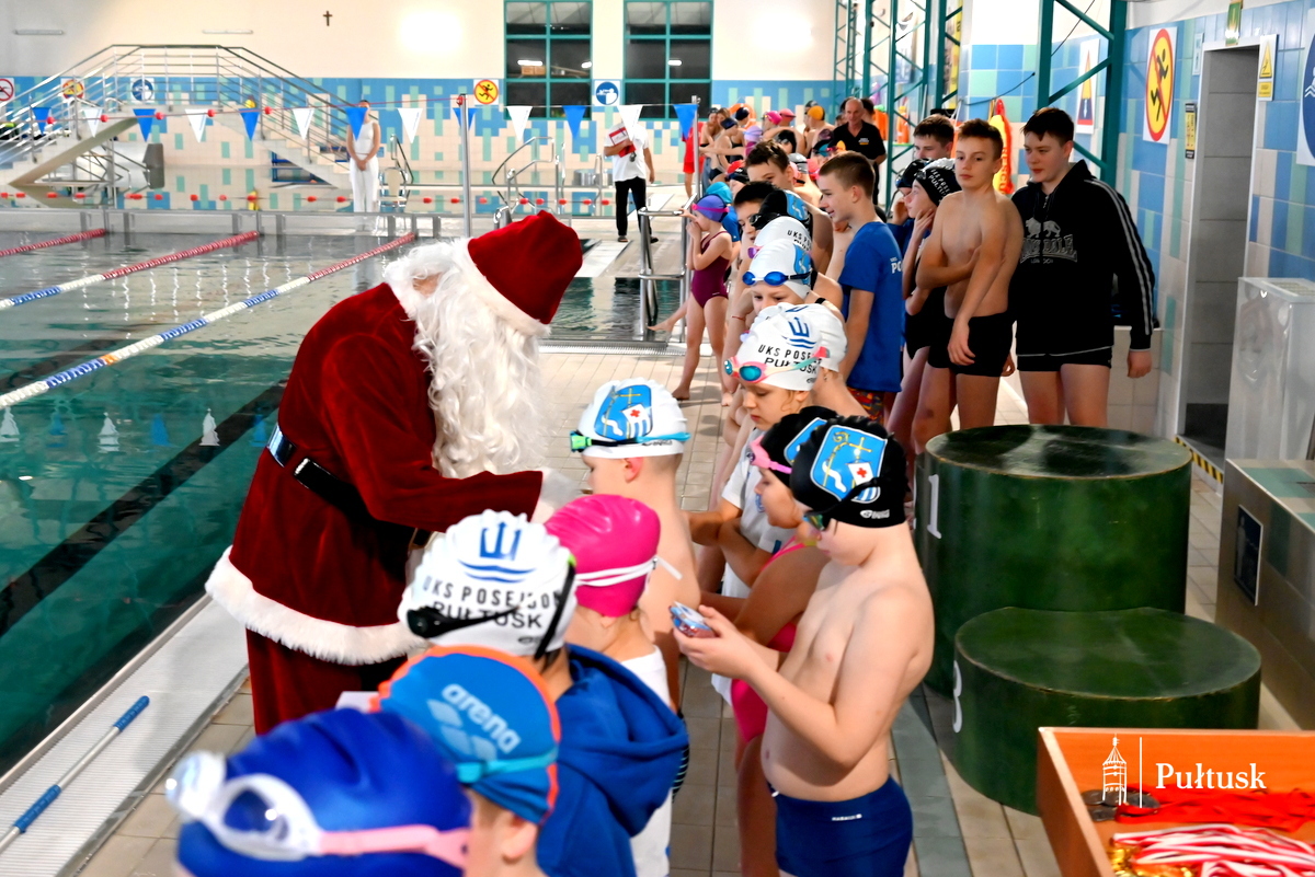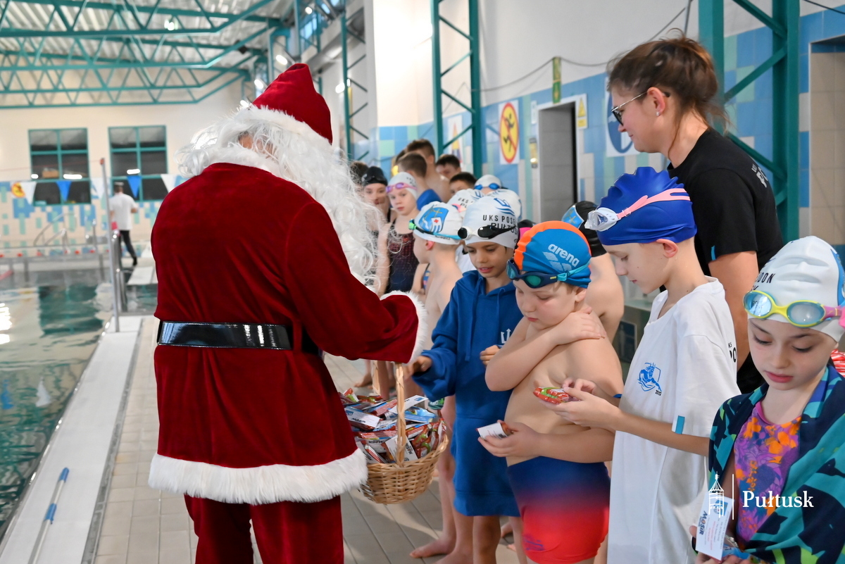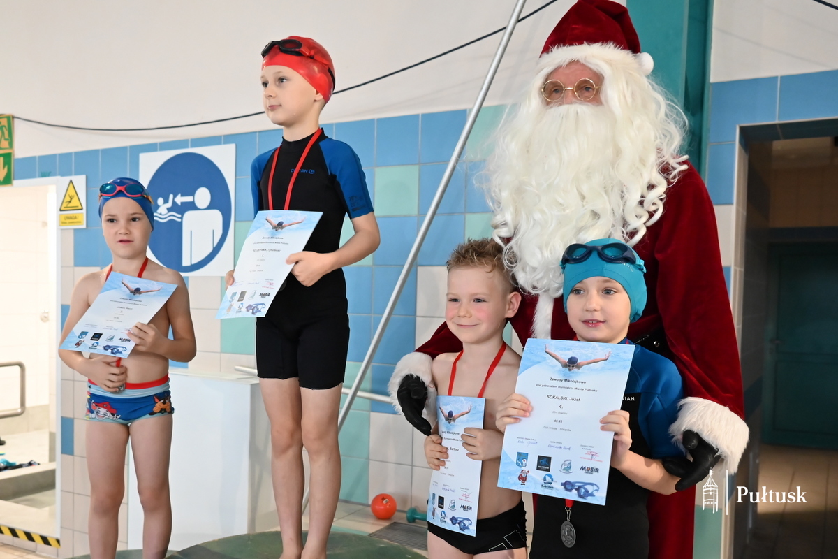 W sobotę, 13 grudnia 2025 r. na pływalni miejskiej w Pułtusku ponad 70 dzieci wzięło udział w kolejnej edycji Mikołajkowych Zawodów Pływackich. Zawody pod patronatem Burmistrza Miasta Pułtusk zostały zorganizowane przez  Miejski Ośrodek Sportu i Rekreacji w Pułtusku, UKS Posejdon, Szkołę Pływania Rekinek oraz Szkołę Pływania Delfin.