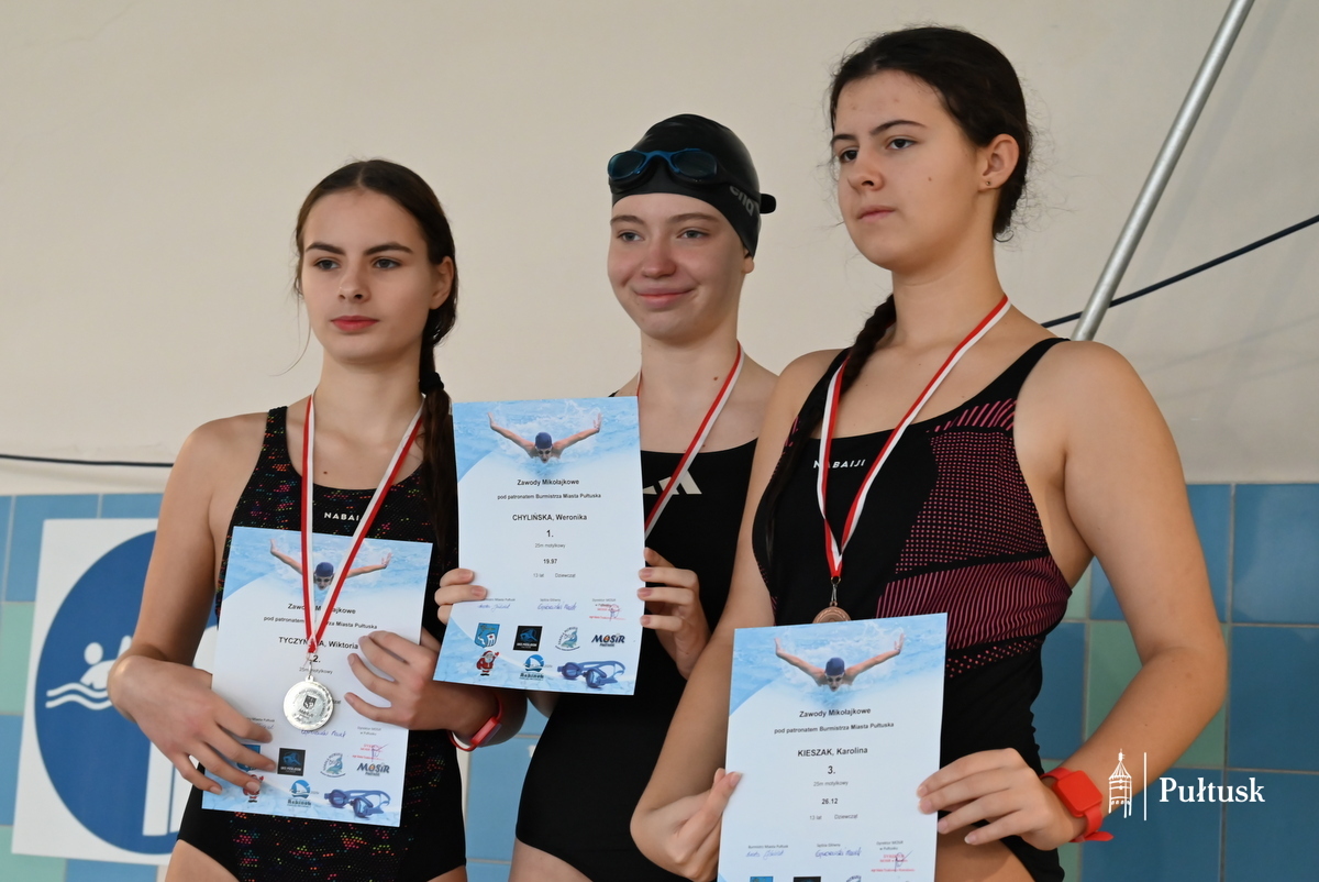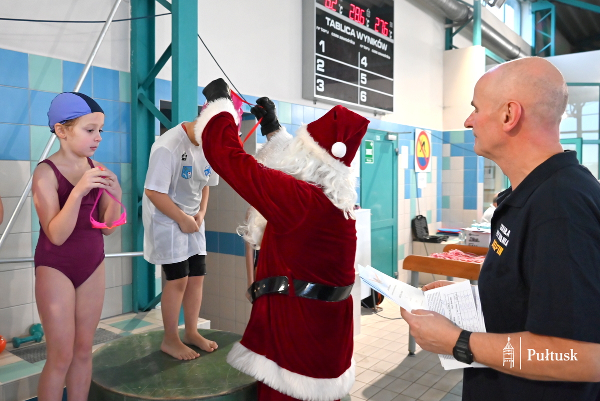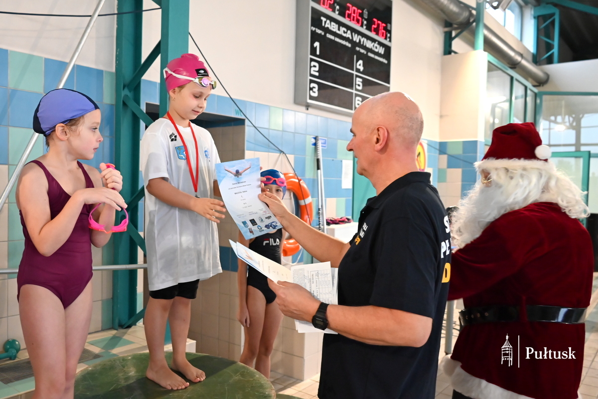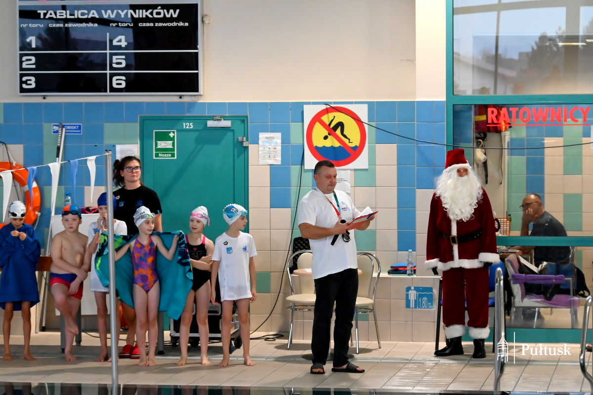 W sobotę, 13 grudnia 2025 r. na pływalni miejskiej w Pułtusku ponad 70 dzieci wzięło udział w kolejnej edycji Mikołajkowych Zawodów Pływackich. Zawody pod patronatem Burmistrza Miasta Pułtusk zostały zorganizowane przez  Miejski Ośrodek Sportu i Rekreacji w Pułtusku, UKS Posejdon, Szkołę Pływania Rekinek oraz Szkołę Pływania Delfin.
