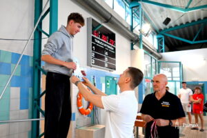 Zastępca Burmistrza Miasta Pułtusk Mateusz Miłoszewski  – w imieniu Burmistrz Miasta Pułtusk Beaty Jóźwiak oraz trenerzy klubów pływackich wręczyli laureatom dyplomy  i dokonali dekoracji medalami.