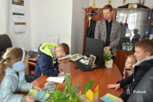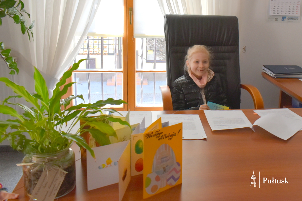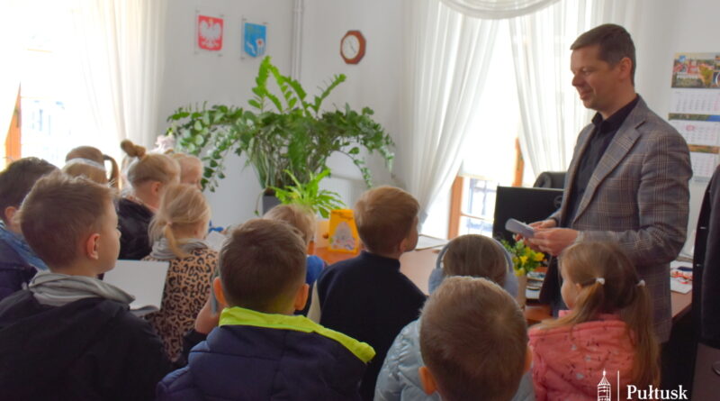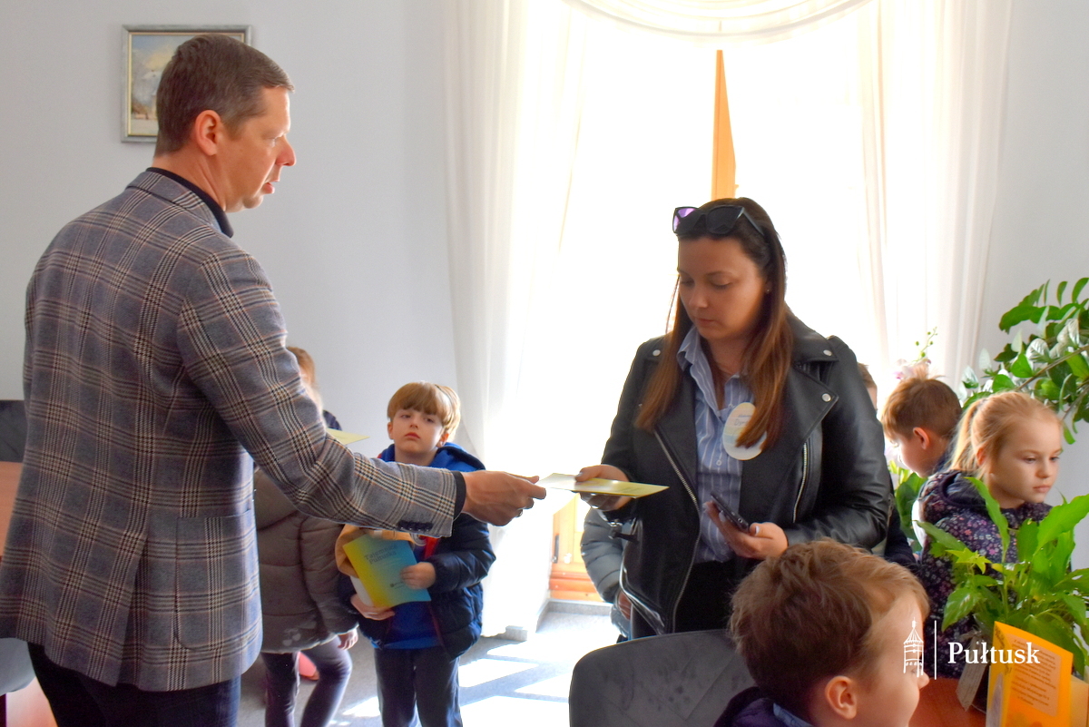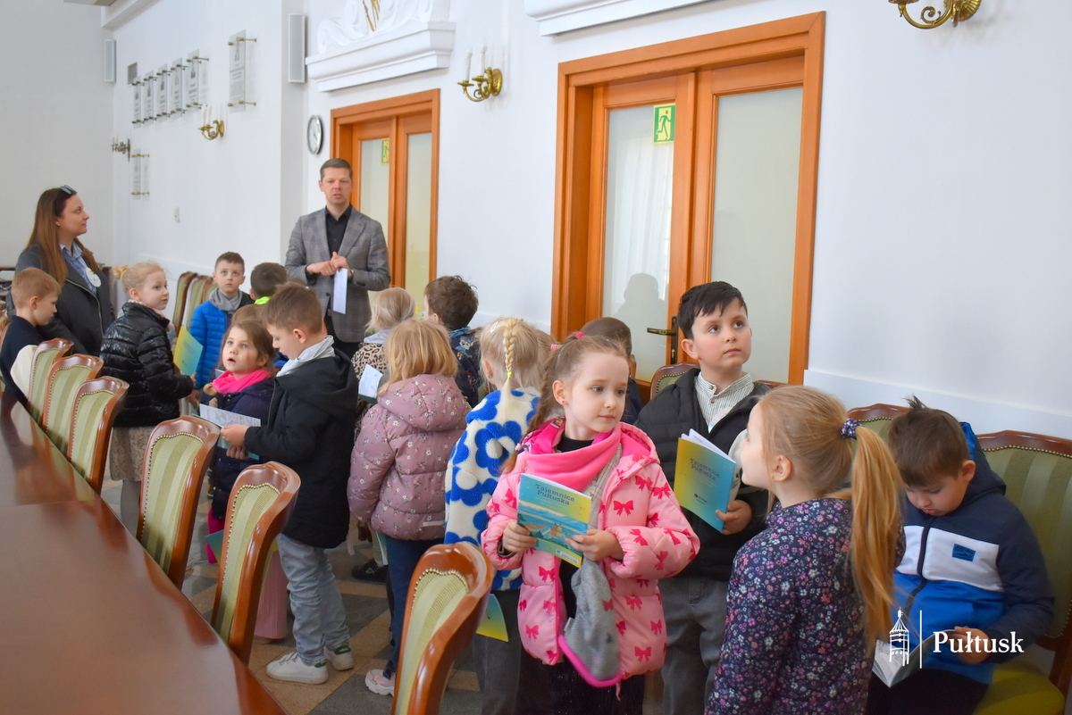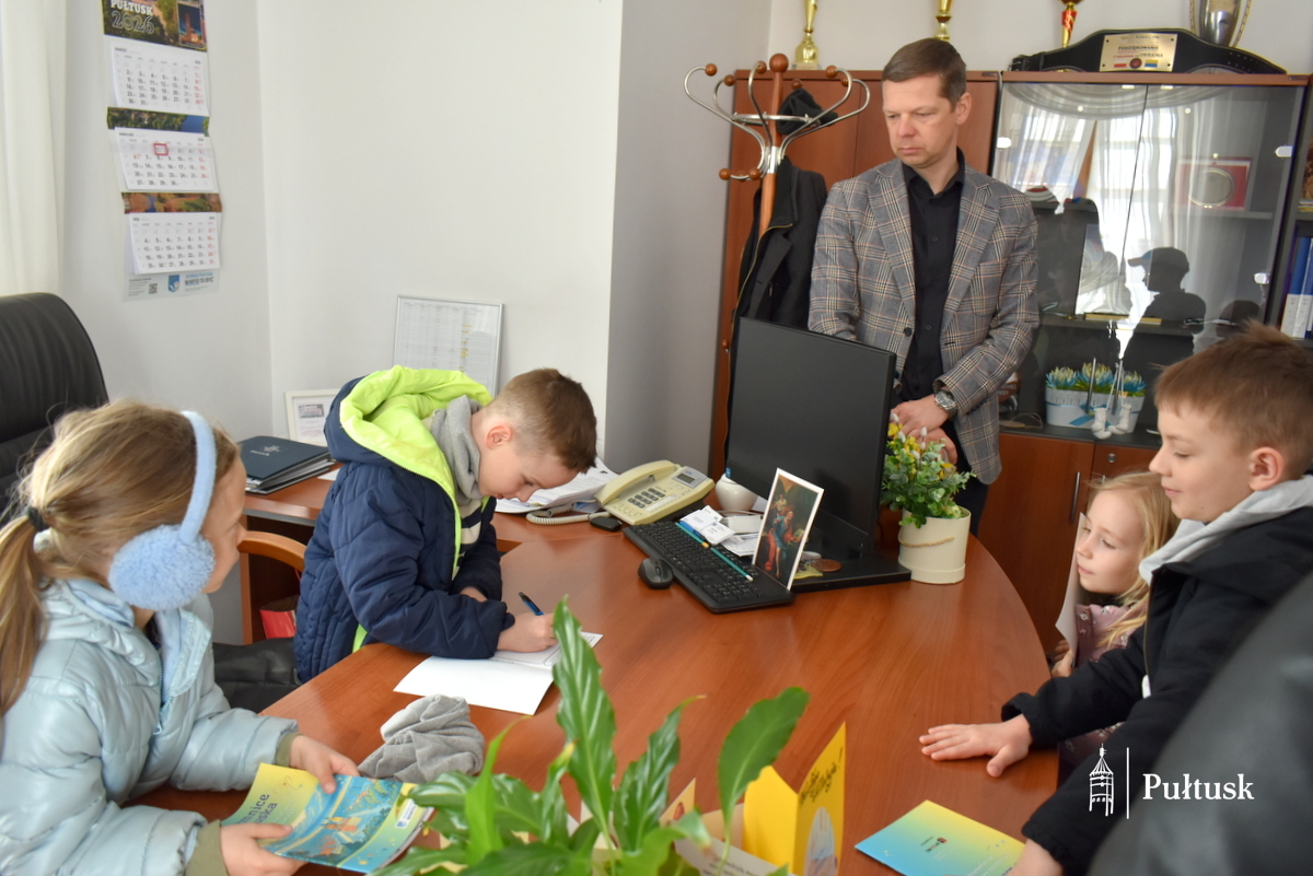 1 kwietnia, podczas wiosennego spaceru, dzieci z Przedszkola Miejskiego nr 4 odwiedziły Urząd Miejski w Pułtusku. Pierwszy Zastępca Burmistrza Miasta Pułtusk Mateusz Miłoszewski przygotował dla nich niecodzienną niespodziankę primaaprilisową. Najmłodsi goście mieli okazję zasiąść w fotelu burmistrza i – z dużym zaangażowaniem oraz uśmiechem – stemplować pieczątką z datą kolorowanki wcześniej otrzymane od burmistrza. Zamiana ról wywołała wiele pozytywnych emocji i stała się dla dzieci ciekawym doświadczeniem.
