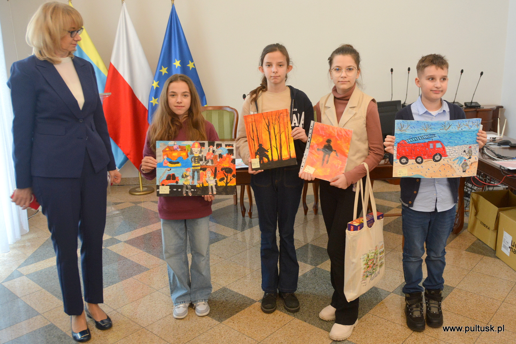 29 stycznia 2025 r. w Urzędzie Miejskim w Pułtusku odbyło się wręczenie nagród w gminnych eliminacjach Ogólnopolskiego Strażackiego Konkursu Plastycznego. Konkurs zgodnie z obowiązującym regulaminem ma na celu zainteresowanie dzieci, młodzieży i twórców nieprofesjonalnych ochroną przeciwpożarową oraz ochroną środowiska i wszelkimi działaniami realizowanymi na rzecz zapobiegania, ratowania i usuwania skutków zagrażających środowisku naturalnemu zdarzeń, działalnością straży pożarnych w tym działań ratowniczo-gaśniczych, edukacją w zakresie ochrony przeciwpożarowej i ochrony środowiska, bezpieczeństwa i ekologii, tradycją i życiem strażackich środowisk, a także rozwój indywidualnych uzdolnień.