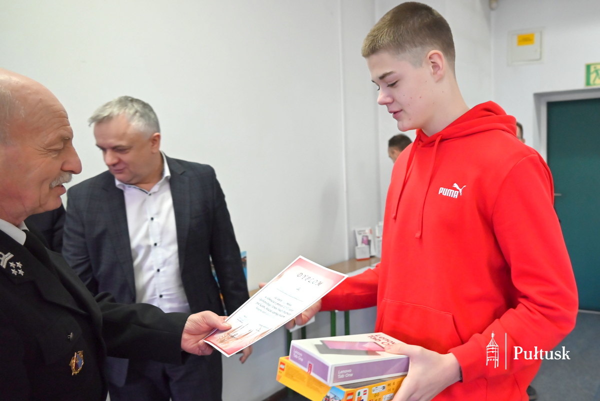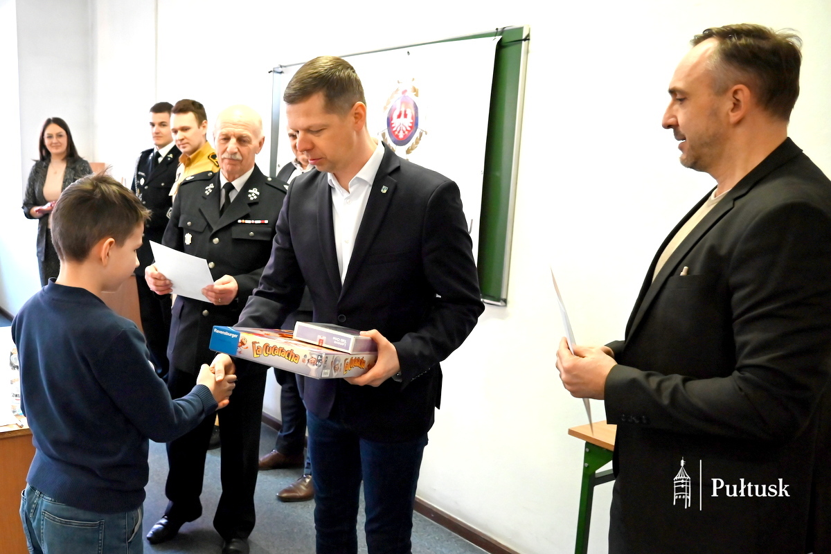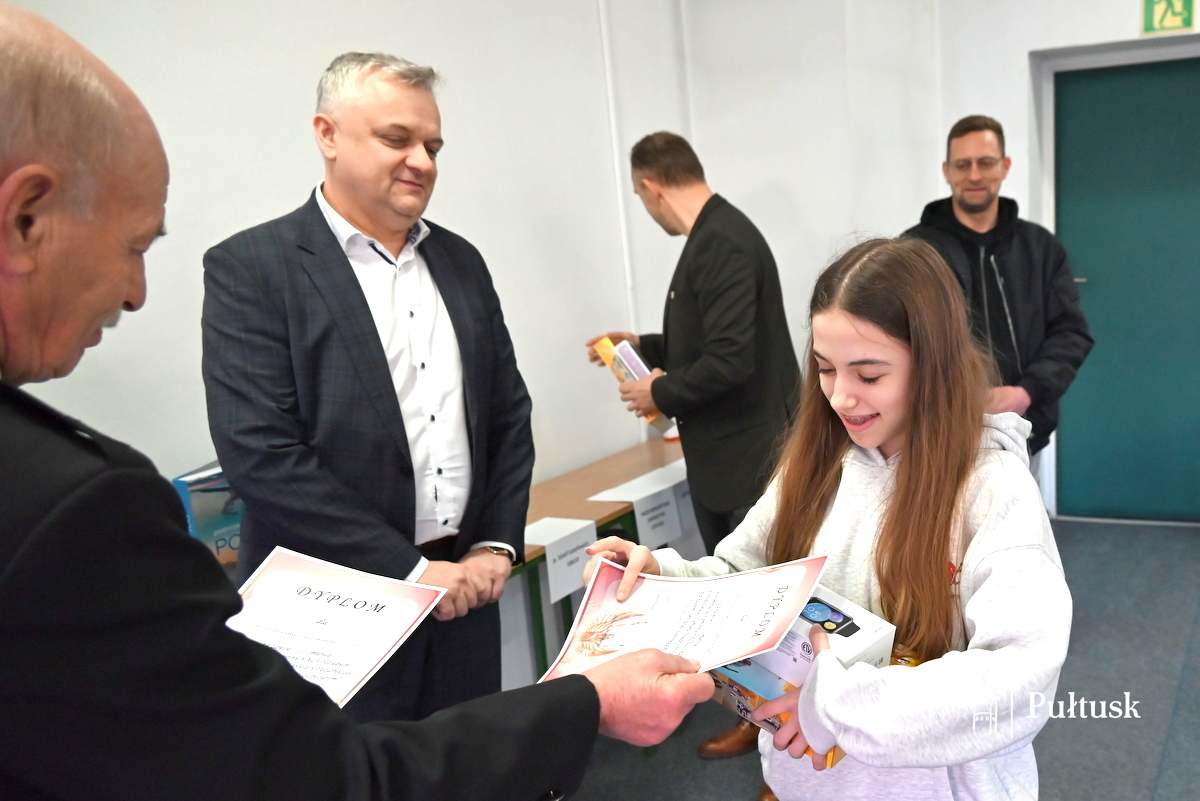 Dzięki wsparciu sponsorów: Zarządu Przedsiębiorstwa Energetyki Cieplnej Sp. z o.o. w Pułtusku, Zarządu Przedsiębiorstwa Wodociągów i Kanalizacji Sp. z o.o. w Pułtusku, P.P.H.U. „ARTGUM” w Pułtusku, Panu Józefowi Łatyfowiczowi i firmie „ISBUD”, Zarządu PSS „Społem” Pułtusk, Dyrekcji Banku Spółdzielczego Oddział w Pułtusku, Zarządu ECO Pułtusk Sp. z o.o. oraz samorządu Gminy Pułtusk dla wszystkich finalistów zostały ufundowane atrakcyjne nagrody rzeczowe. Ponadto trzy pierwsze osoby wezmą udział w eliminacjach powiatowych Ogólnopolskiego Turnieju Wiedzy Pożarniczej, które odbędą się 13 marca 2026 r.