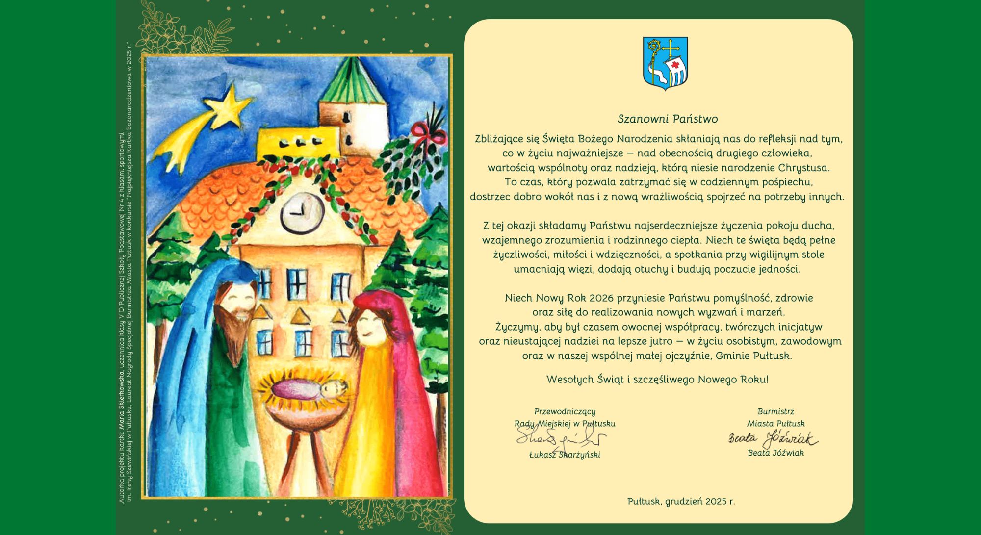 Samorząd Gminy Pułtusk oraz Samorząd Powiatu Pułtuskiegoskładają serdeczne podziękowanie za współorganizację oraz aktywny udziałw Spotkaniu Wigilijnymdla Mieszkańców Gminy Pułtusk i...