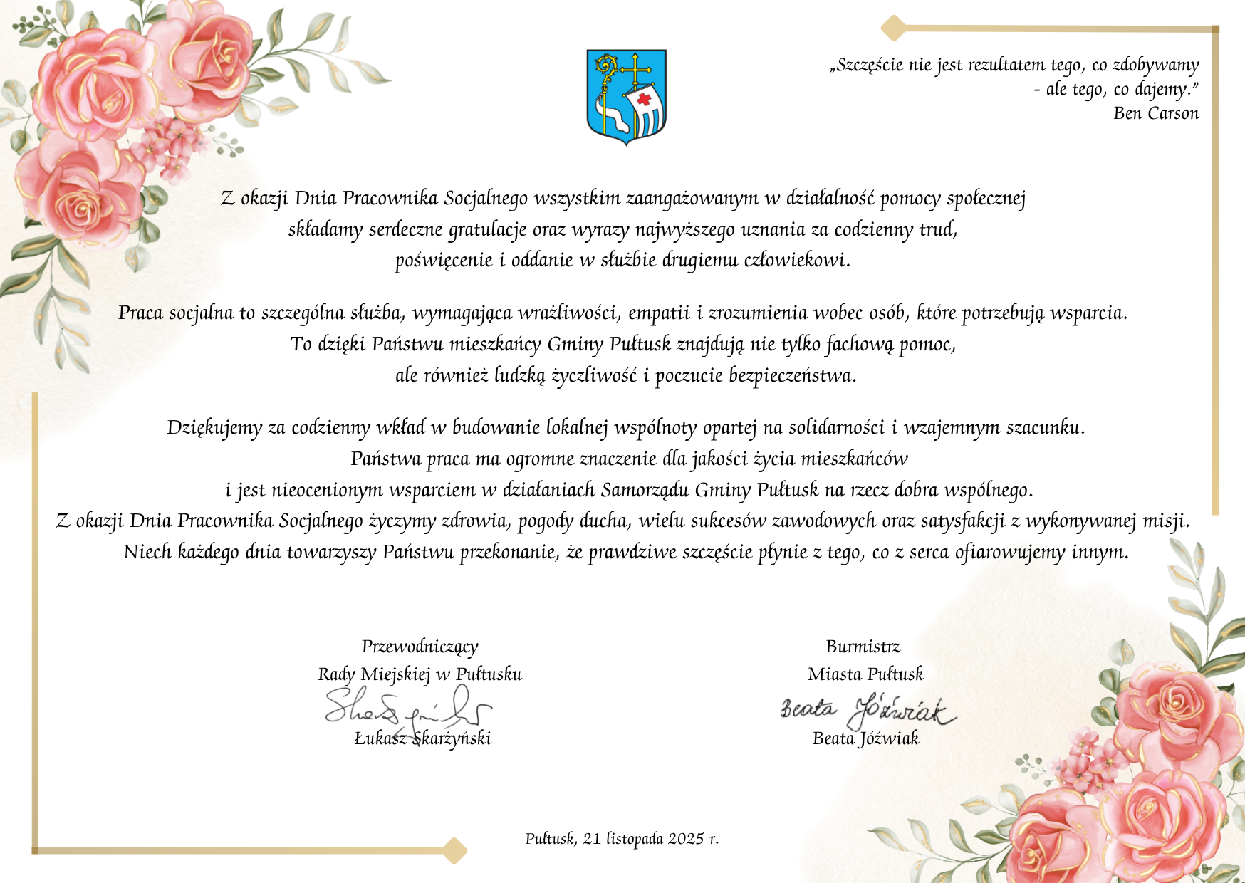 Z okazji Dnia Pracownika Socjalnego wszystkim zaangażowanym w działalność pomocy społecznej składamy serdeczne gratulacje oraz wyrazy najwyższego uznania za codzienny...