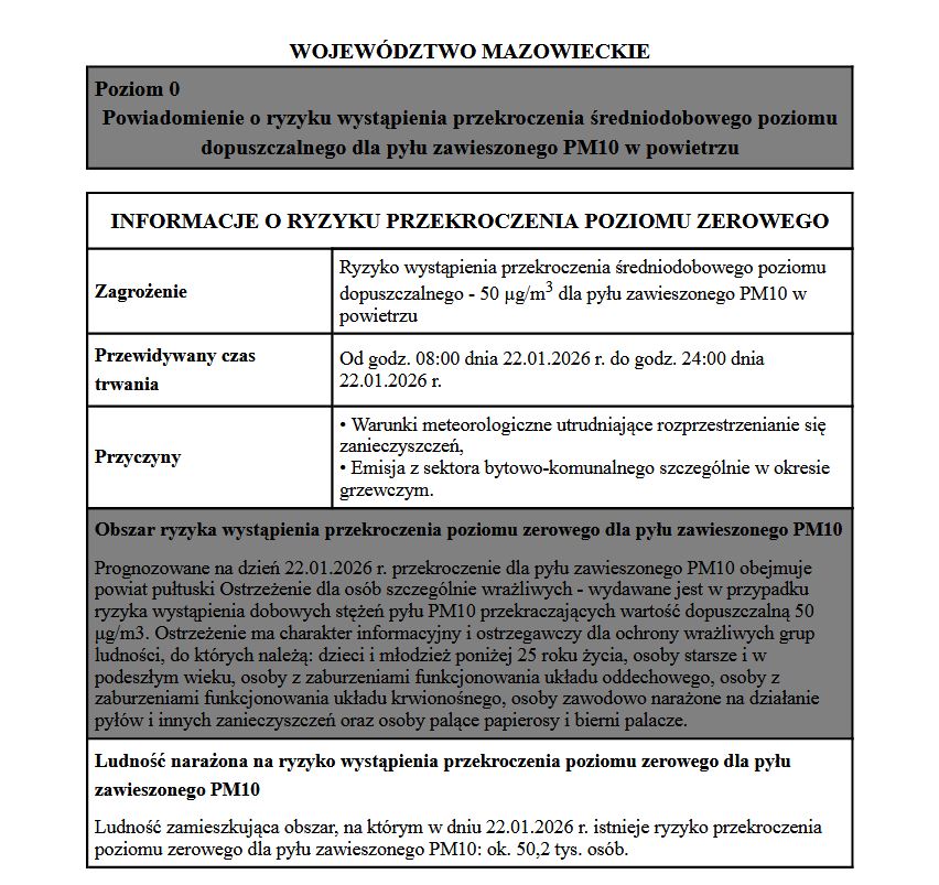 W związku z ryzykiem przekroczenia średniodobowego poziomu dopuszczalnego dla pyłu zawieszonego PM10 w powietrzu na obszarze województwa mazowieckiego Departament Monitoringu Środowiska...