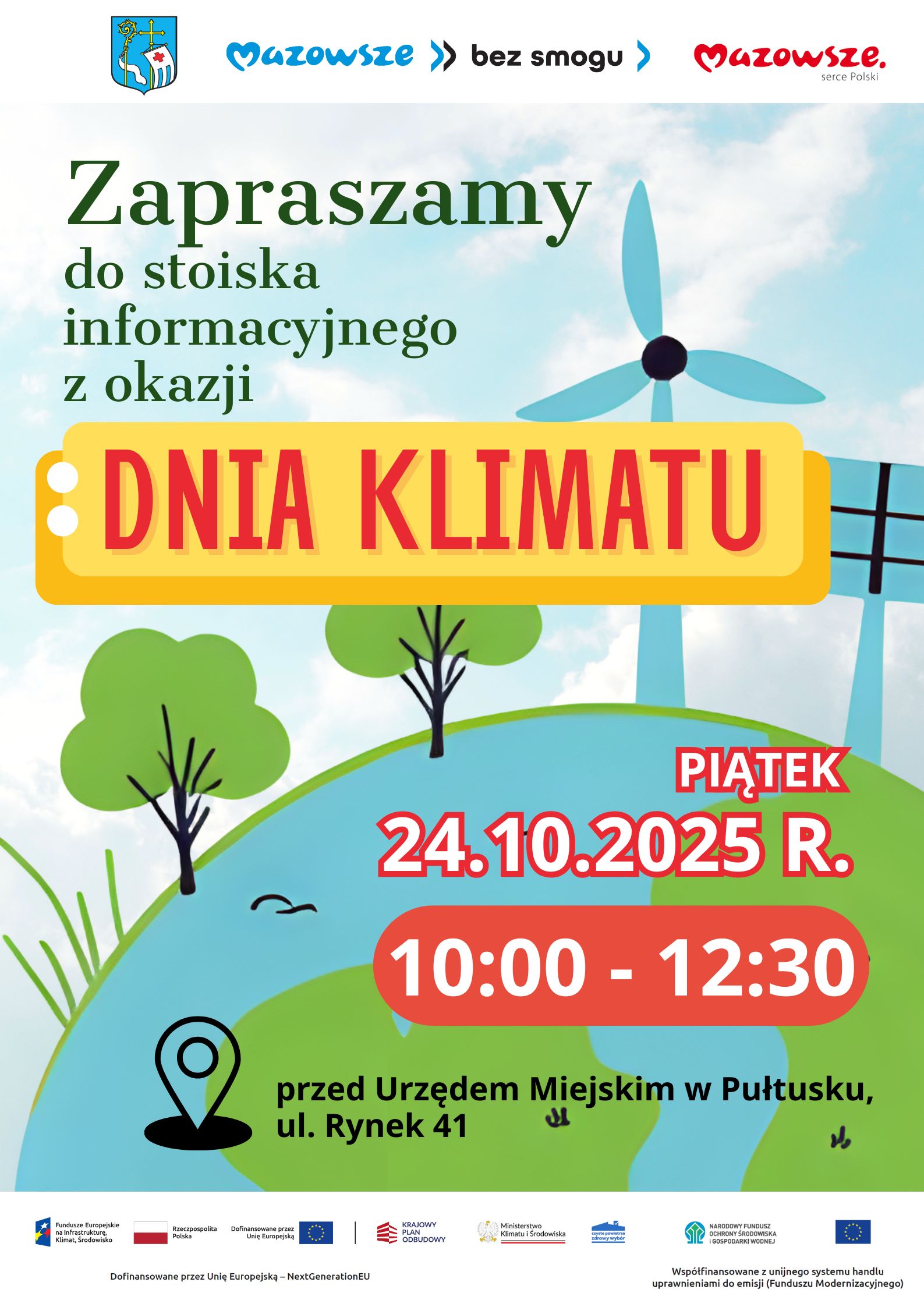 Z okazji Międzynarodowego Dnia Działań na Rzecz Klimatu zapraszamy do stoiska informacyjnego w ramach realizowanych przez Gminę Pułtusk projektów „Mazowsze...