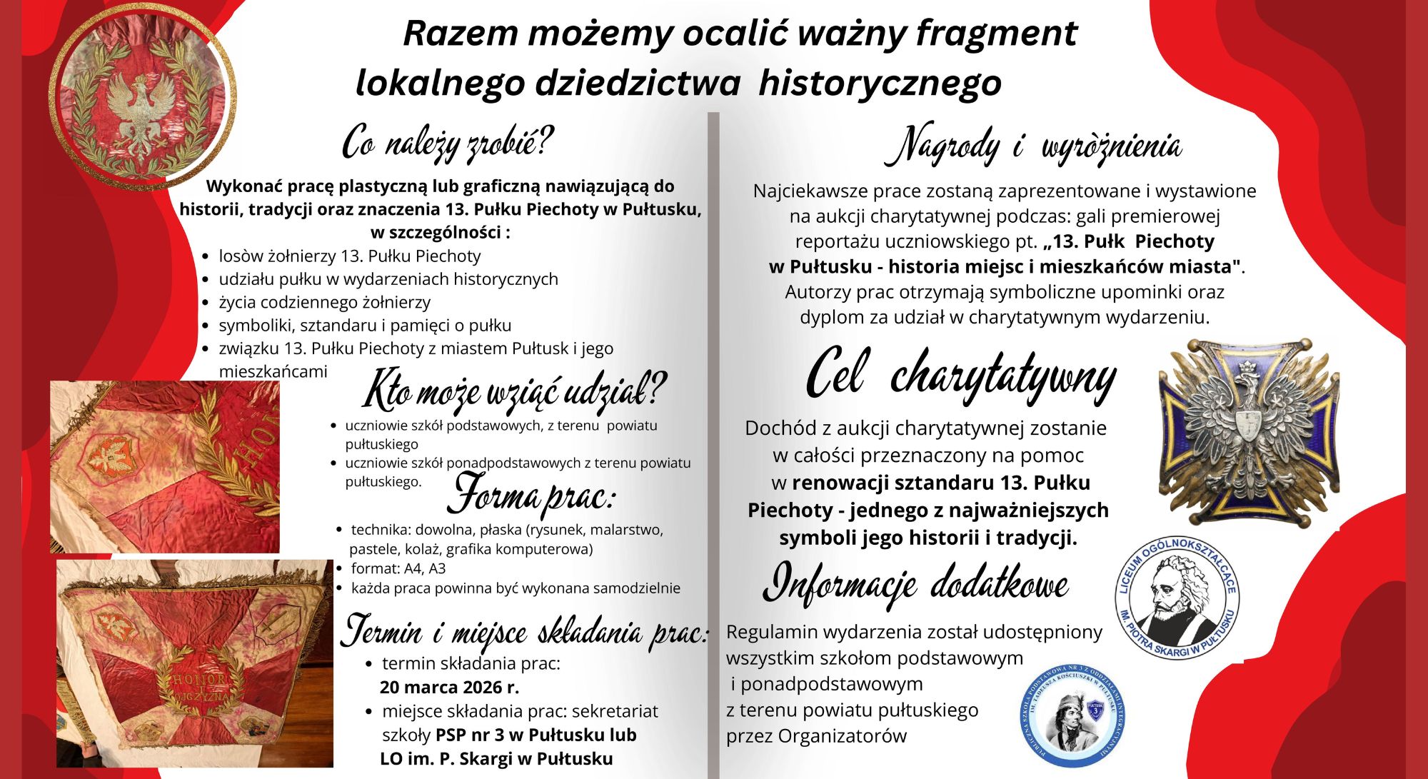 Zapraszamy uczniów szkół podstawowych i ponadpodstawowych z powiatu pułtuskiego do udziału w wyjątkowej inicjatywie:„13 Pułk Piechoty w Pułtusku – historia...