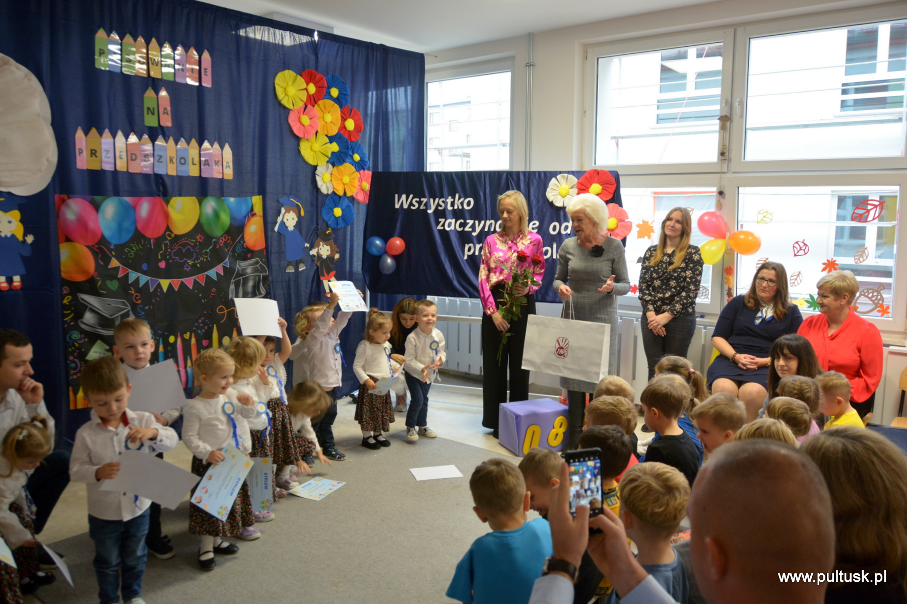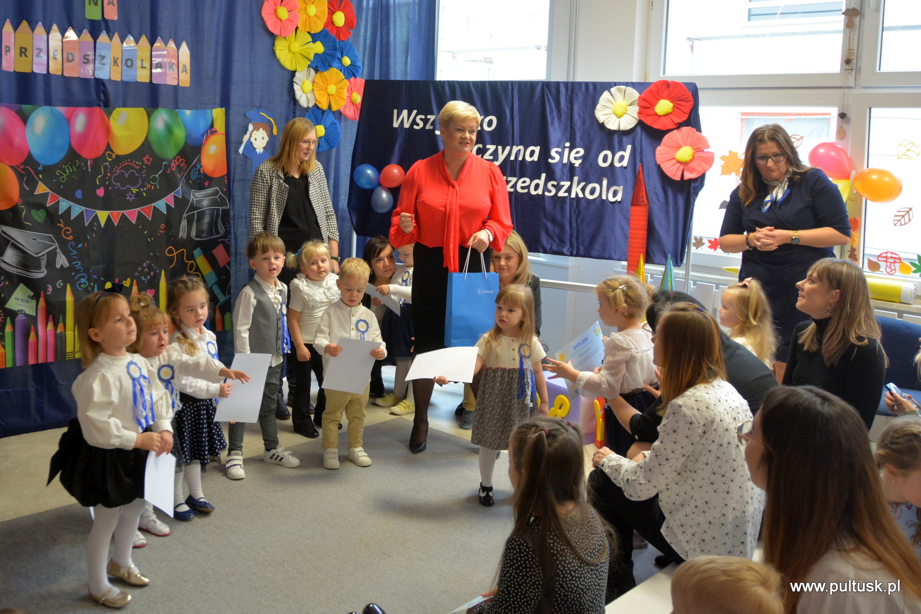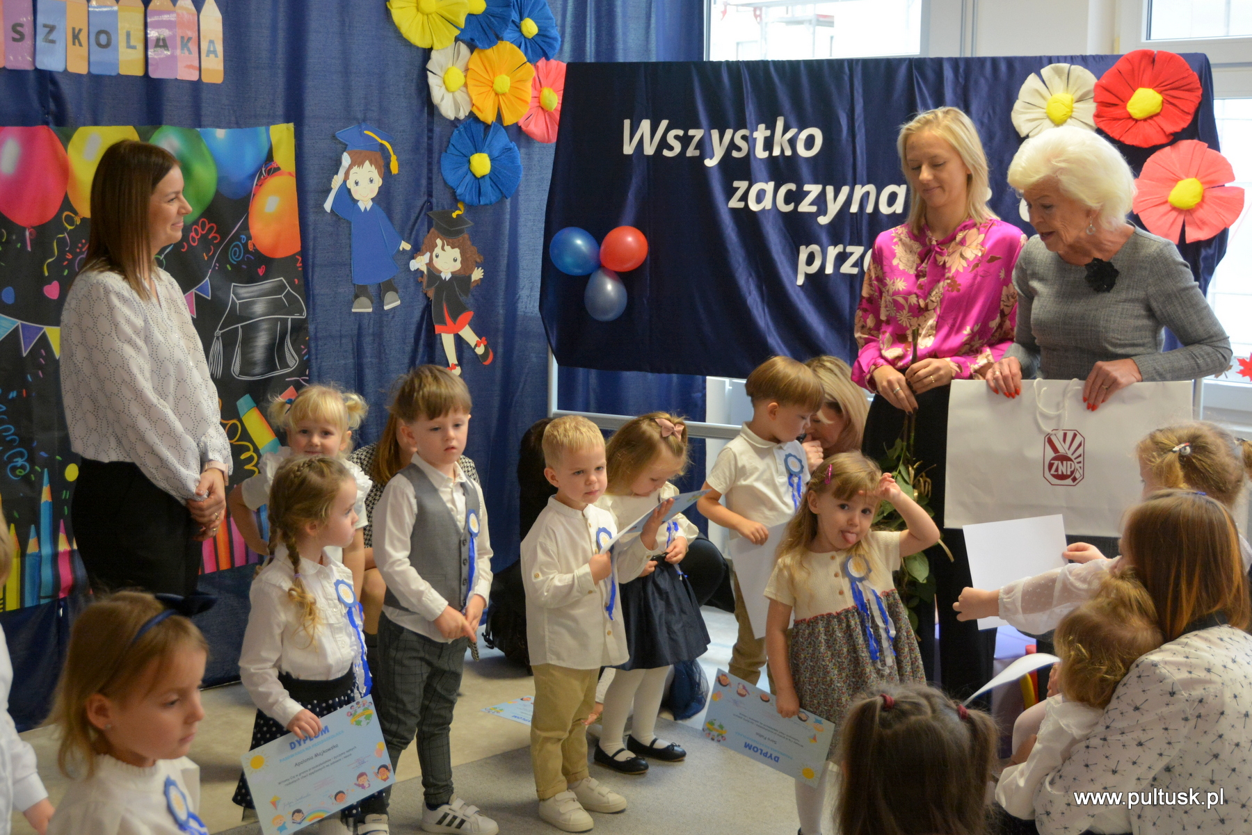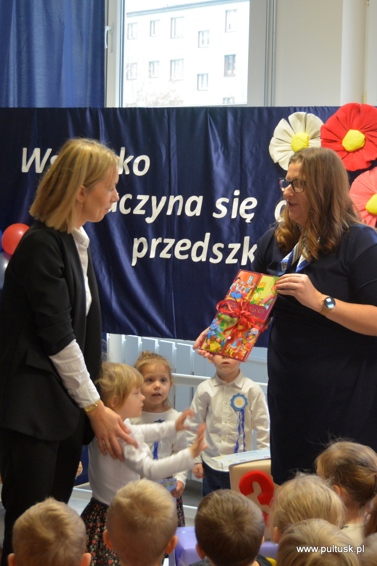 W czwartek, 14 listopada 2024 r. odbyło się pełne emocji pasowanie na przedszkolaka w Przedszkole Miejskie Nr 5 w Pułtusku w dwóch najmłodszych grupach: Krasnoludkach i Biedronkach. Uroczystego pasowania dokonała dyrektor placówki Katarzyna Przewłocka. Gratulacje, słowa uznania i zachwytu skierowała do wszystkich zgromadzonych Burmistrz Miasta Pułtusk Beata Jóźwiak, wręczając symboliczny, słodki upominek dla każdego przedszkolaka. Miłe słowa i prezenty przekazała również Prezes Oddziału w Pułtusku Związku Nauczycielstwa Polskiego Maria Korbal oraz Przewodnicząca Rady Rodziców Katarzyna Górska.