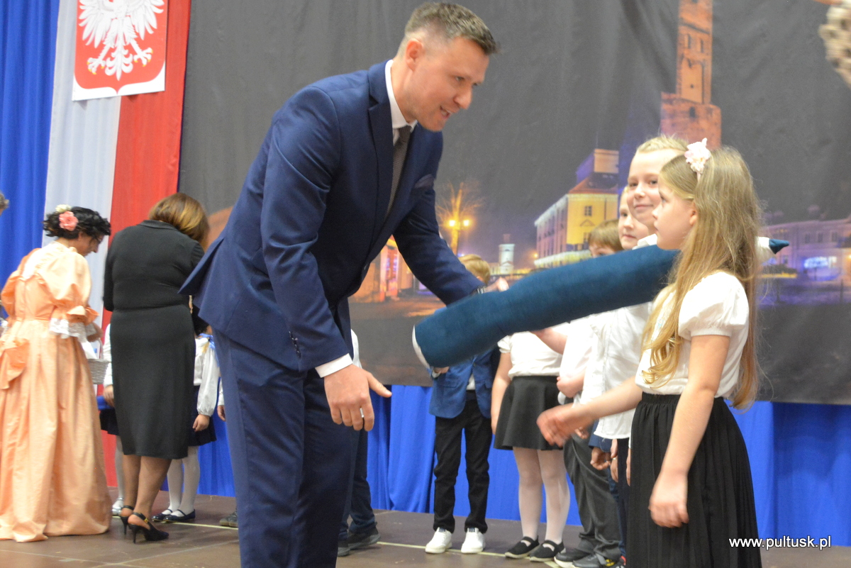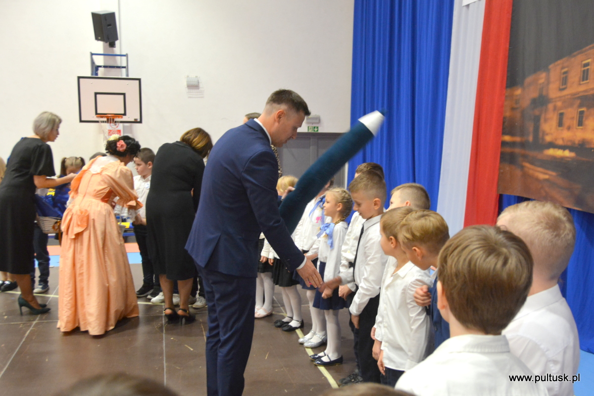 W hali przy Publicznej Szkole Podstawowej nr 1 im. Klaudyny Potockiej w Pułtusku, we wtorek, 29 października 2024 r. odbyło się uroczyste pasowanie pierwszoklasistów. Z tej okazji dzieci przygotowały piękny program artystyczny. Następnie dyrektor szkoły Kamil Grabowski przyjął od uczniów i przedstawicieli ich rodziców uroczyste ślubowanie, po czym dokonał aktu pasowania. Obecni na uroczystości Zastępca Burmistrza Miasta Pułtusk Mateusz Miłoszewski oraz Przewodniczący Rady Miejskiej w Pułtusku Łukasz Skarżyński pogratulowali pierwszoklasistom przyjęcia do grona uczniów i życzyli im samych sukcesów.