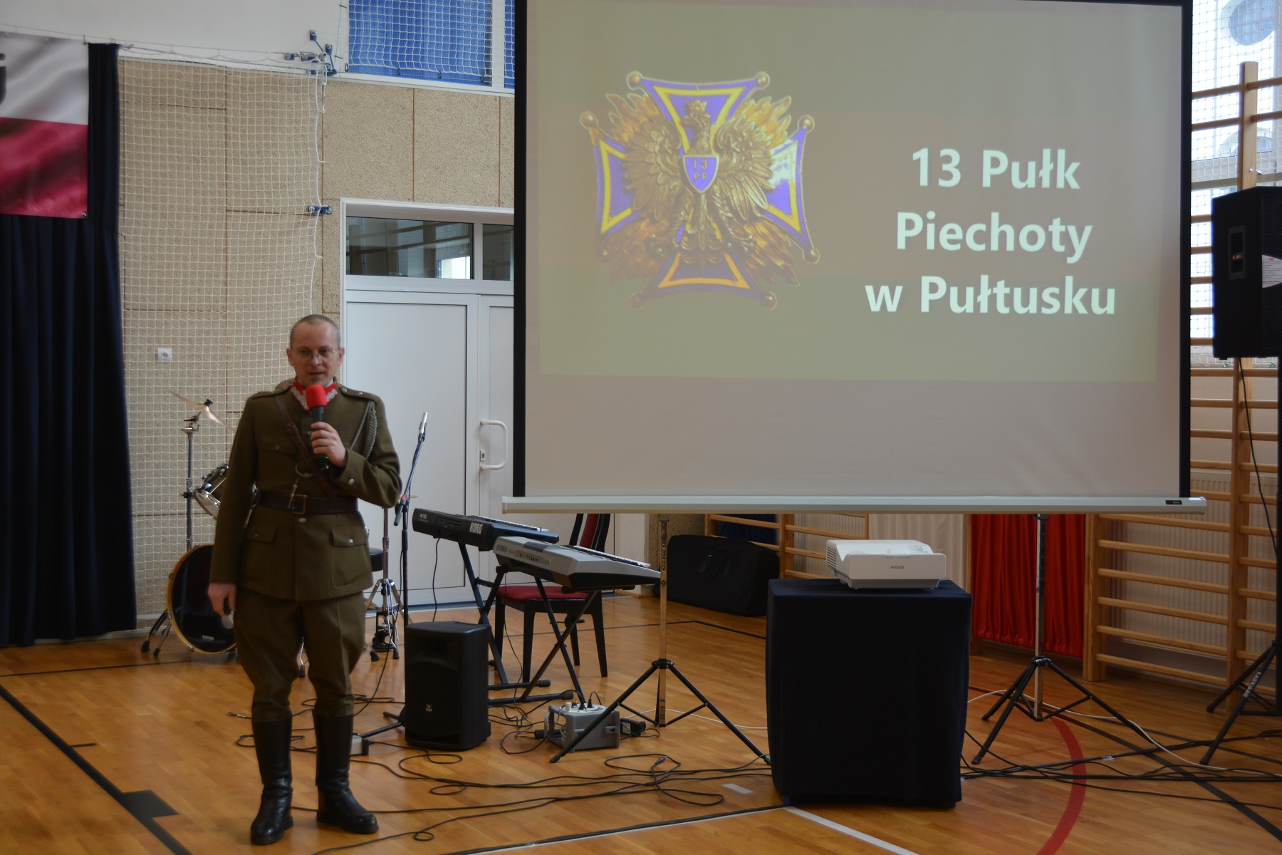 W czwartek, 21 listopada 2024 r., w Liceum Ogólnokształcącym im. Piotra Skargi w Pułtusku odbyła się XIV edycja Konkursu Pieśni Patriotycznej „Pieśń Ujdzie Cało”. Przed rozpoczęciem konkursu Grupa Rekonstrukcji Historycznej 13 Pułku Piechoty zaprezentowała wszystkim przybyłym mundury historyczne. Tegoroczna edycja wzorem lat ubiegłych podzielona została na trzy kategorie: Szkoły Podstawowe, Szkoły Średnie oraz Pieśń Kresowa. Konkurs objęty był Patronatem Honorowym Burmistrza Miasta Pułtusk oraz Starosty Pułtuskiego. Zgromadzona publiczność wysłuchała blisko 30 utworów w wykonaniu: solistów, duetów oraz zespołów. Występy oceniło jury w składzie Wanda Koniecka-Pieńkos – wieloletni nauczyciel LO im. Piotra Skargi w Pułtusku (pomysłodawczyni konkursu), Aldona Łaszczyk wieloletni nauczyciel PSP nr 3 w Pułtusku, Ewa Frakstein wieloletnia wokalistka Warszawskiej Opery Kameralnej, Michał Kisiel Radny Rady Miejskiej w Pułtusku oraz Szymon Fabisiak lider Zespołu Carol Markovsky. W trakcie obrad jury Michał Świdwa adiunkt Muzeum Regionalnego w Pułtusku, członek GRH 13 Pułku Piechoty przedstawił prezentację na temat 13 Pułku Piechoty. Nagrodę Burmistrza Miasta Pułtusk dla laureata w kategorii szkół podstawowych wręczył Zastępca Burmistrza Mateusz Miłoszewski. Poniżej prezentujemy listę laureatów: