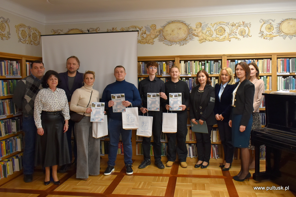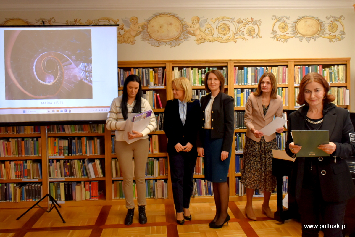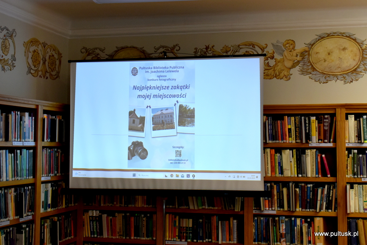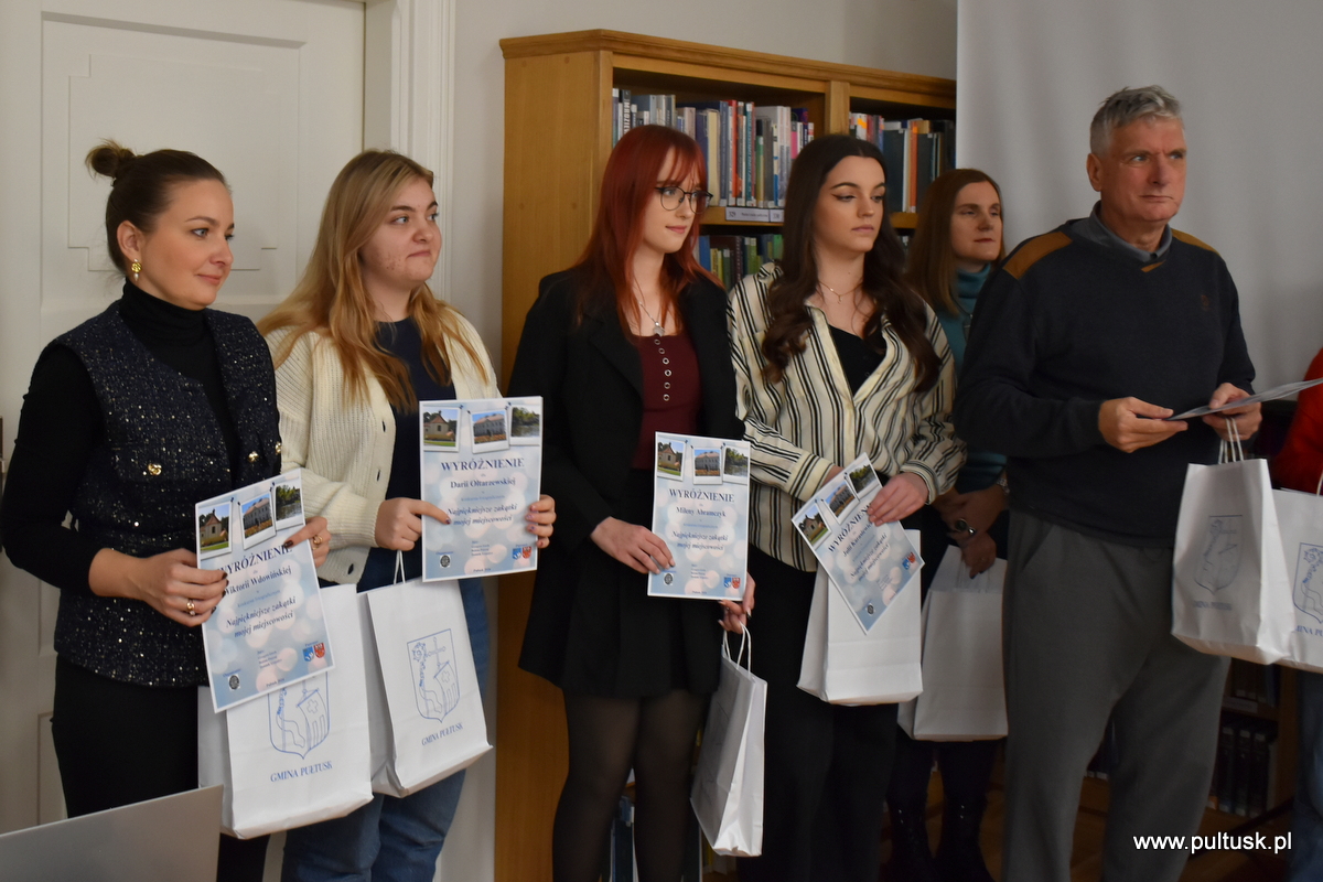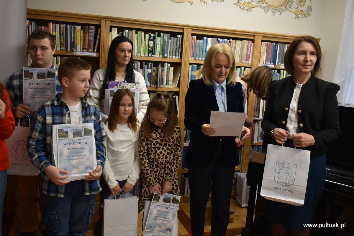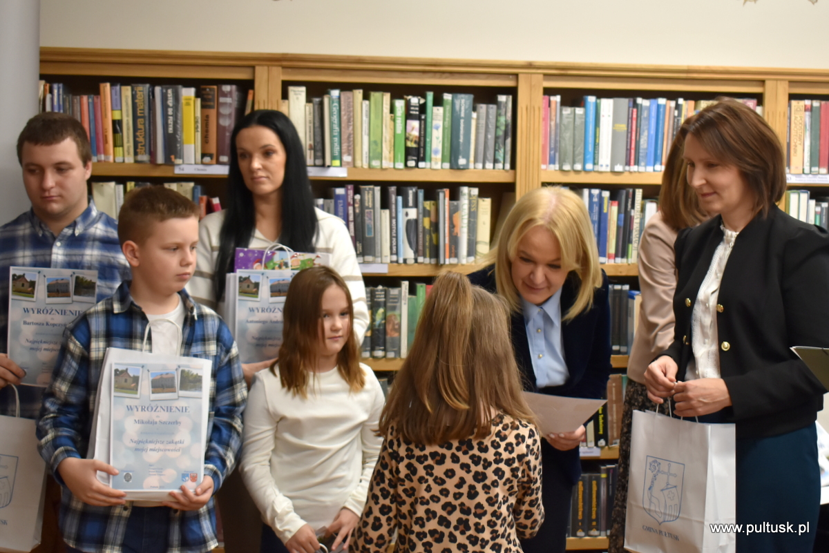 W środę, 11 grudnia 2024 r. w czytelni Pułtuskiej Biblioteki Publicznej im. Joachima Lelewela odbyło się podsumowanie konkursu fotograficznego ,,Najpiękniejsze zakątki mojej miejscowości” pod patronatem Starosty Pułtuskiego i Burmistrza Miasta Pułtusk. Konkurs miał charakter otwarty i skierowany był do wszystkich mieszkańców powiatu pułtuskiego. Komisja konkursowa w składzie: Grzegorz Gerek – przewodniczący, Bożena Potyraj, Dominik Gregajtis spośród 78 prac wybrała 20 najlepszych, które zostaną opublikowane na facebooku biblioteki. Przyznano 4 miejsca główne i 16 wyróżnień. Nagrody i dyplomy laureatom wręczyły Sekretarz Powiatu Katarzyna Jankowska i Sekretarz Miasta Pułtusk Patrycja Kazimierczak.