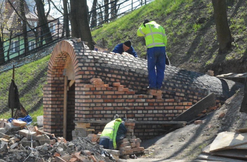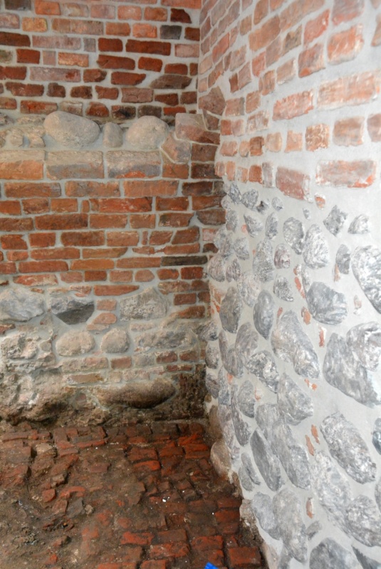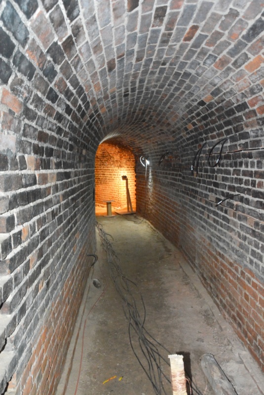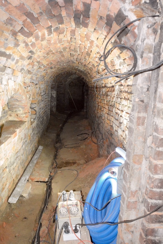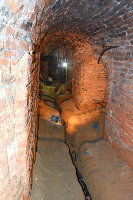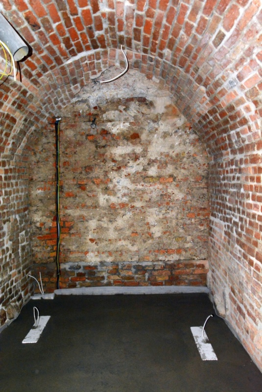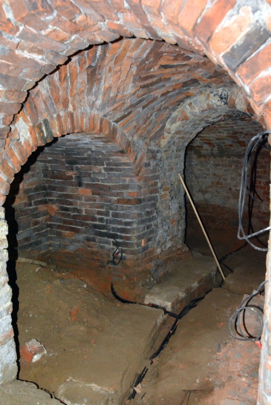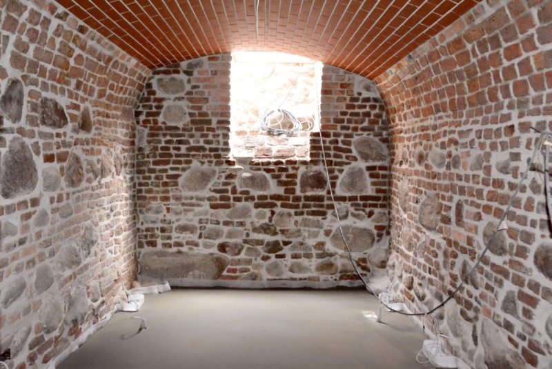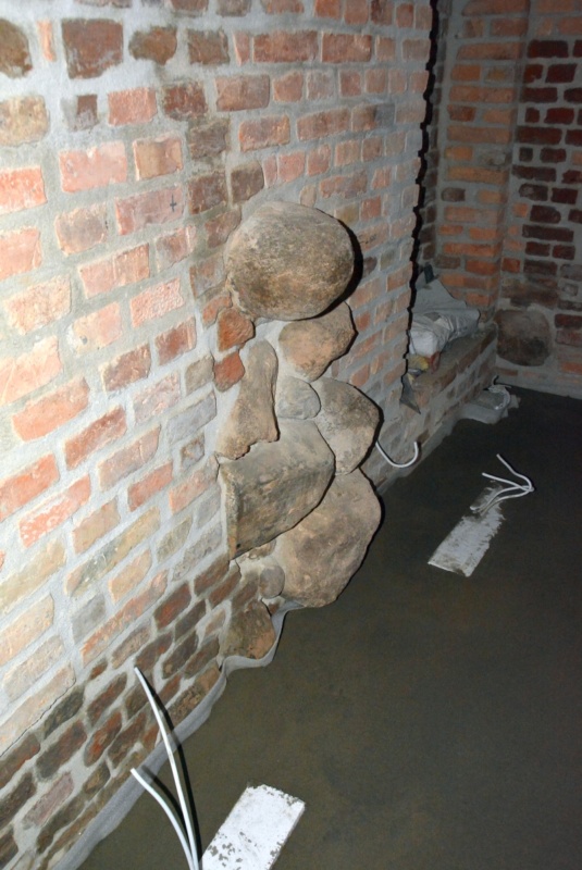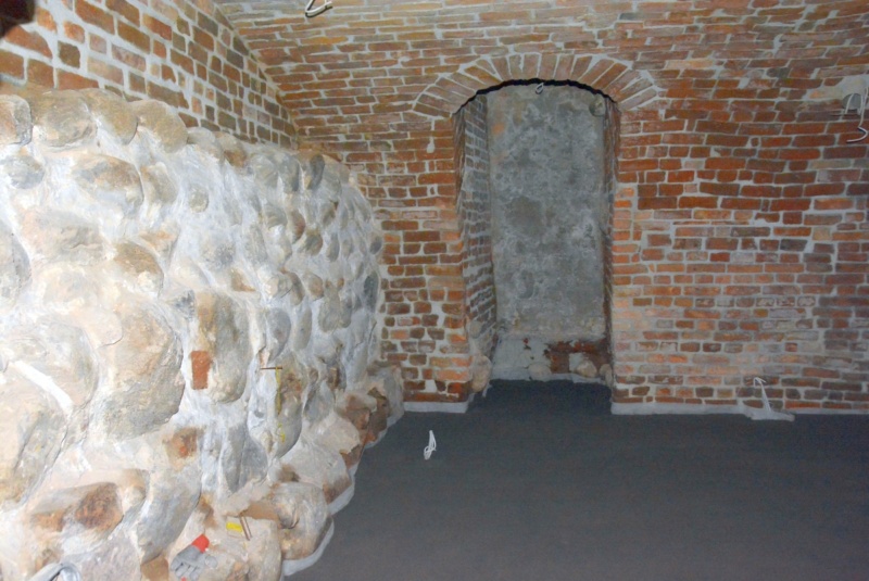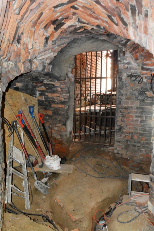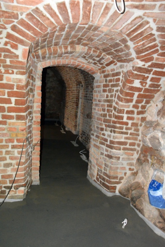 Chcielibyśmy przy okazji rozwiać pewne wątpliwości czy może raczej nieporozumienia rodzące się tu i ówdzie na internetowych forach dyskusyjnych. Niekiedy mylnie toczone spory zdają się zastanawiać, jak to jest, że najwięcej mają do powiedzenia ci, którzy nie znają podstawowych zasad prowadzenia prac remontowych przy zabytkach. Otóż nowe pomieszczenia piwniczne, ujawnione podczas robót, zostaną zachowane w formie tzw. trwałej ruiny. Dla zabezpieczenia oryginalnych murowanych elementów wykonano sklepienia betonowe wyraźnie odróżniające tkankę historyczną od współczesnej. Podobnie wszystkie nowe składniki każdego obiektu, dotychczas nieistniejące, tworzone jednak zgodnie z zaakceptowanym przez konserwatora zabytków projektem wykonuje się z nowych materiałów budowlanych, wyraźnie odróżniających się od tkanki historycznej. Zaleceniem konserwatora zabytków jest, aby odbudowane lub odtworzone elementy nie „udawały” tych oryginalnych a wręcz wyraźnie podkreślały, że są współcześnie odtworzone na zasadzie kontrastu materiałów, kolorów i faktur.