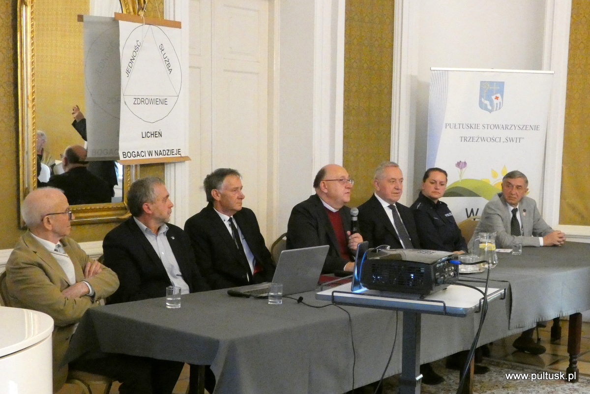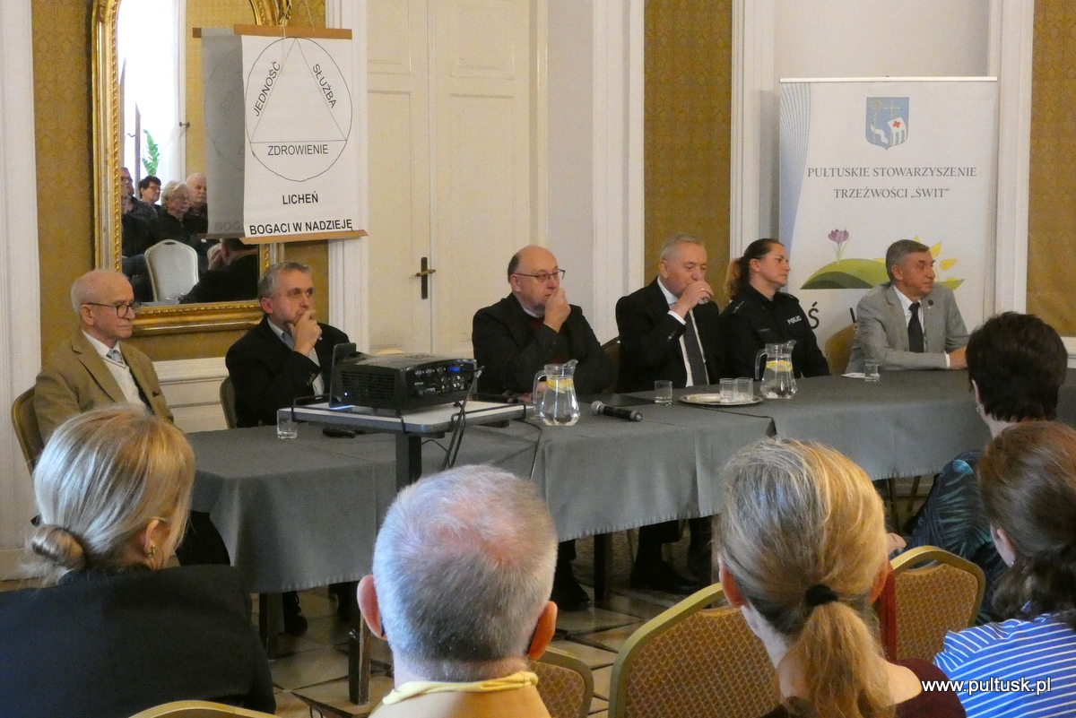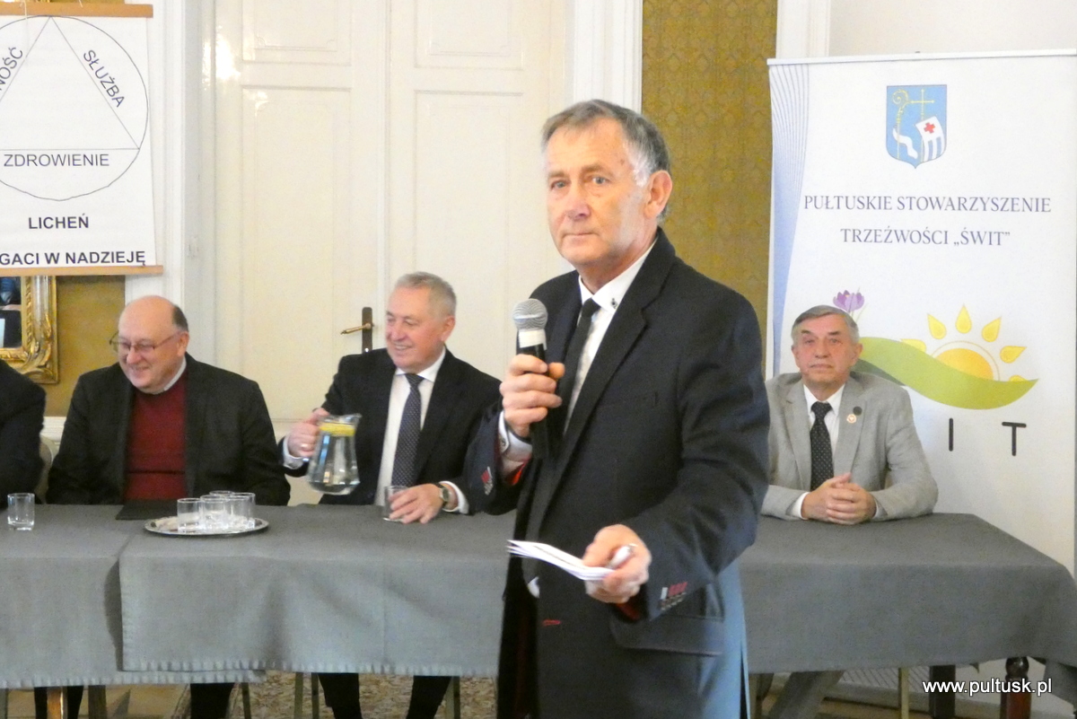 W niedzielę, 27 października 2024 r., z inicjatywy Pułtuskiego Stowarzyszenia Trzeźwości „Świt”, w Sali Koncertowej Domu Polonii w Pułtusku odbyły się prelekcje z zakresu profilaktyki uzależnień. Zaproszonych gości powitał Prezes Stowarzyszenia Leszek Kowalewski, a następnie prelekcje wygłosili: ks. dr Janusz Kochański, Wojciech Gregorczyk – instruktor terapii oraz Feliks Dumanowski – autor książki „Zgrabki i niezgrabione”, którą można było nabyć po spotkaniu. Głos zabrali również: Poseł na Sejm RP Henryk Kowalczyk , Rzecznik Prasowy Komendy Powiatowej Policji w Pułtusku Magdalena Bielińska oraz Prezes Mazowieckich Stowarzyszeń Abstynenckich Bogdan Urban. W spotkaniu uczestniczyła m.in. Dyrektor Miejskiego Ośrodka Pomocy Społecznej Beata Gemza.