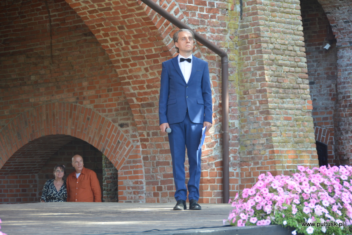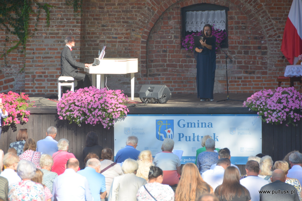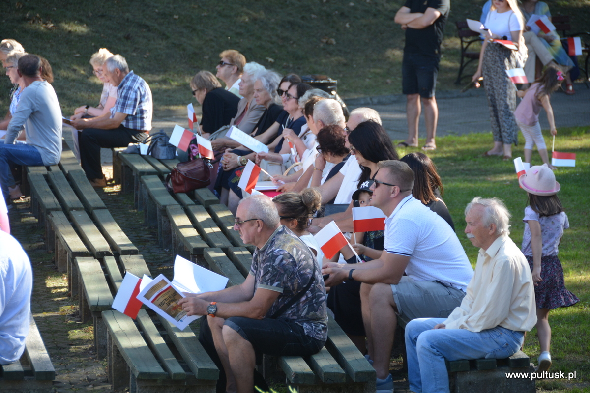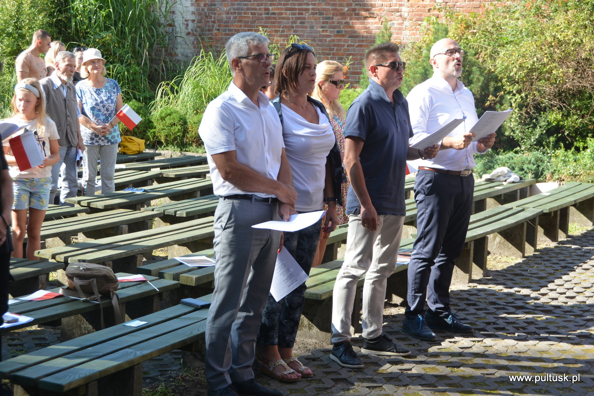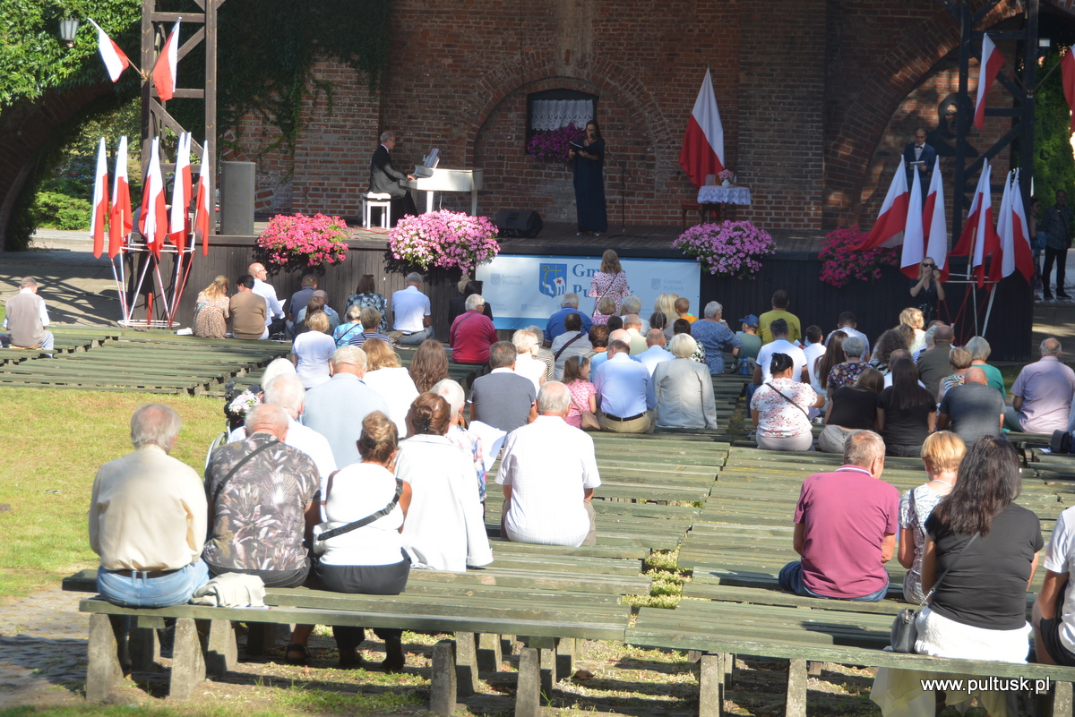 Dzień upamiętniający 85. rocznicę wybuchu II wojny światowej dobiega końca. W Pułtusku rozpoczęliśmy go uroczystym złożeniem kwiatów pod pomnikiem Żołnierzom Września 1939. Następnie w Bazylice została odprawiona uroczysta Msza św. w intencji Ojczyzny. Po Mszy św. spod dzwonnicy wyruszył Spacer Pamięci. W rolę przewodnika w stroju żandarma wcielił się Michał Świdwa, pracownik Muzeum Regionalnego w Pułtusku, rekonstruktor GRH 13 pułku piechoty, który w pasjonujący sposób przybliżył historię Pułtuskich miejsc, związanych z II wojną światową. Na uczestników spaceru czekała mała niespodzianka – z syren miejskich wyemitowany został symboliczny komunikat Polskiego Radia z 1 września 1939 r. oznajmiający wybuch wojny. Po godzinie 15.00 w amfiteatrze Domu Polonii rozpoczął się koncert pt. „Piosenką nie damy zapomnieć”, gdzie pod przewodnictwem znamienitych artystów: sopranistki Izabelli Jaszczułt – Kraszewskiej oraz pianisty, Dyrektora PSM I st. w Pułtusku, Andrzeja Ambroziaka wspólnie śpiewaliśmy pieśni patriotyczne. O zmroku natomiast mury naszego ratusza spowiła biało – czerwona poświata…