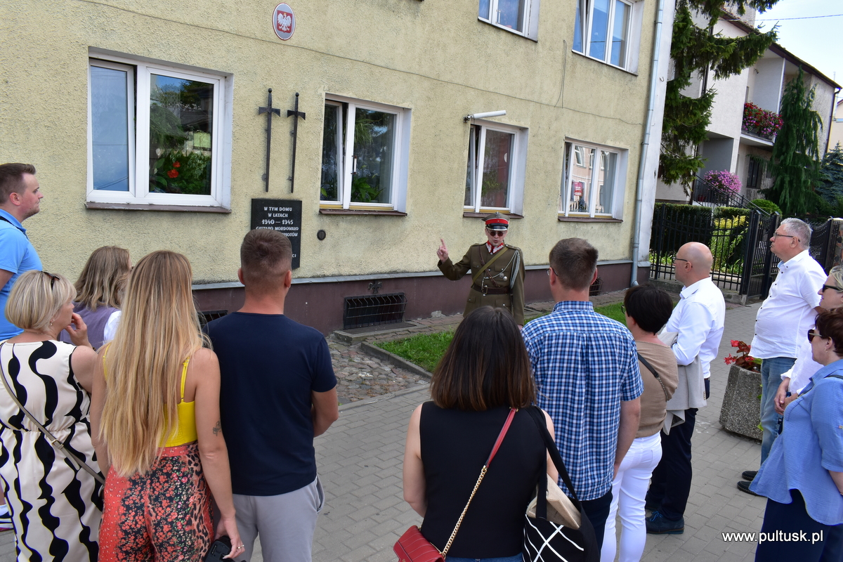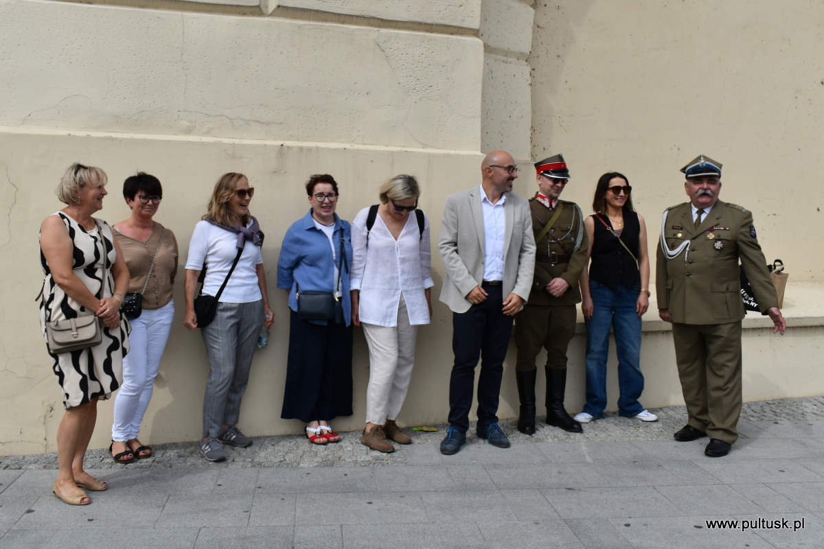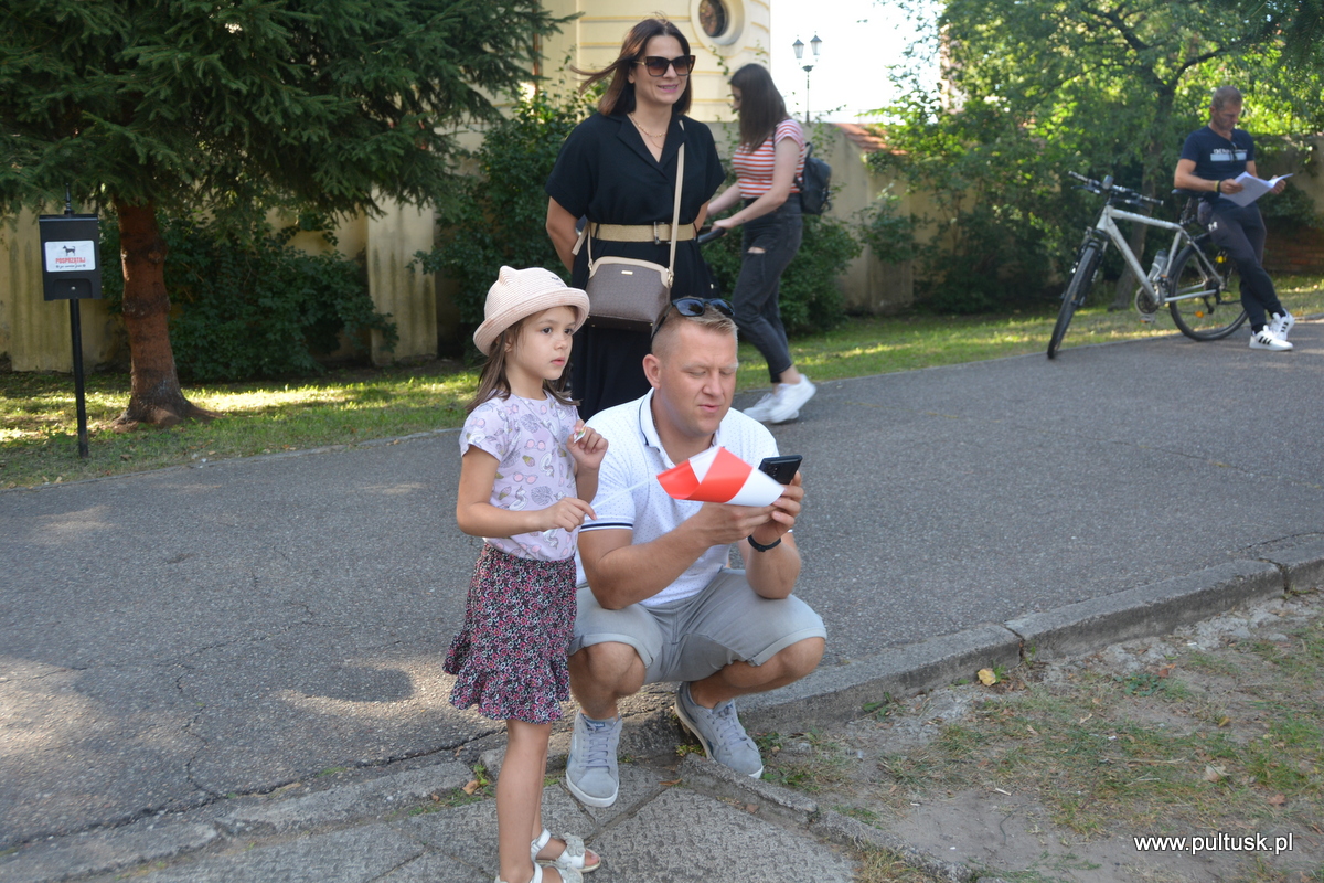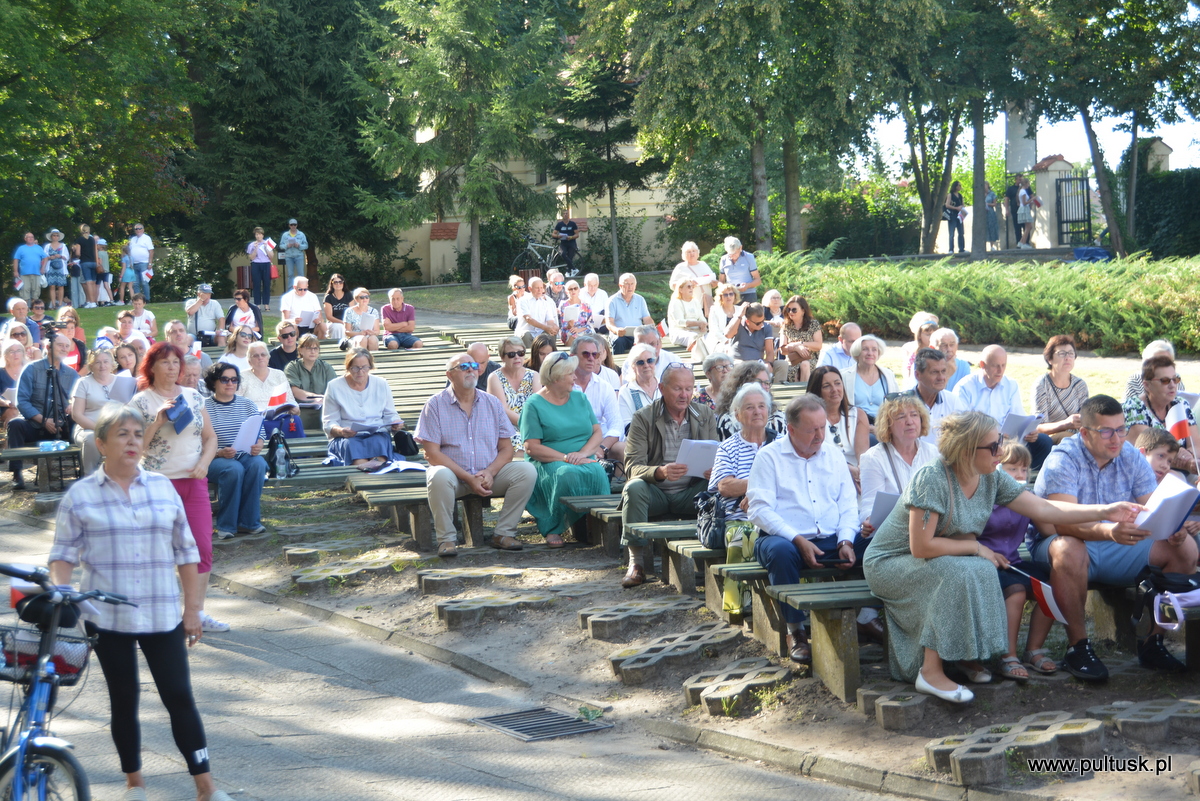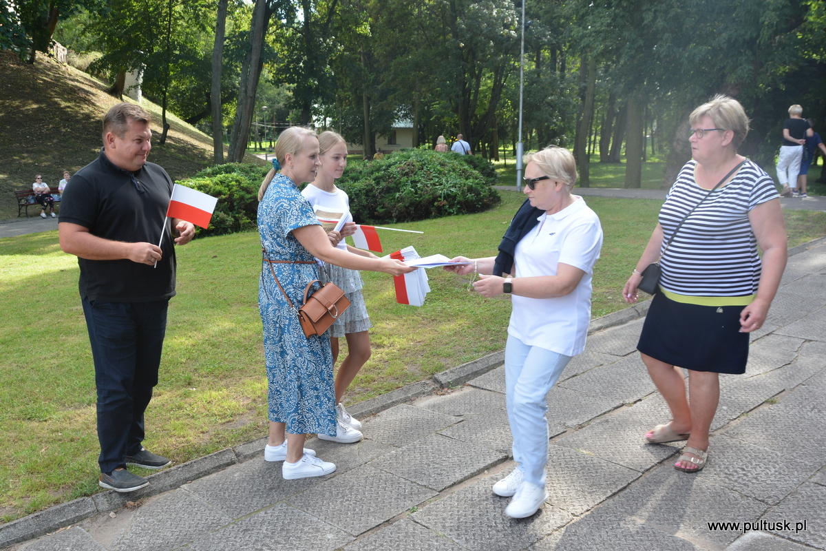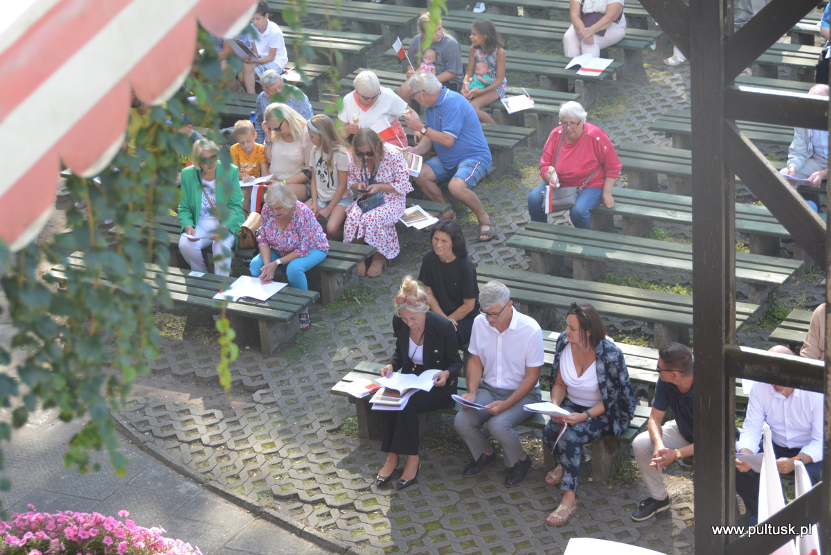 Dzień upamiętniający 85. rocznicę wybuchu II wojny światowej dobiega końca. W Pułtusku rozpoczęliśmy go uroczystym złożeniem kwiatów pod pomnikiem Żołnierzom Września 1939. Następnie w Bazylice została odprawiona uroczysta Msza św. w intencji Ojczyzny. Po Mszy św. spod dzwonnicy wyruszył Spacer Pamięci. W rolę przewodnika w stroju żandarma wcielił się Michał Świdwa, pracownik Muzeum Regionalnego w Pułtusku, rekonstruktor GRH 13 pułku piechoty, który w pasjonujący sposób przybliżył historię Pułtuskich miejsc, związanych z II wojną światową. Na uczestników spaceru czekała mała niespodzianka – z syren miejskich wyemitowany został symboliczny komunikat Polskiego Radia z 1 września 1939 r. oznajmiający wybuch wojny. Po godzinie 15.00 w amfiteatrze Domu Polonii rozpoczął się koncert pt. „Piosenką nie damy zapomnieć”, gdzie pod przewodnictwem znamienitych artystów: sopranistki Izabelli Jaszczułt – Kraszewskiej oraz pianisty, Dyrektora PSM I st. w Pułtusku, Andrzeja Ambroziaka wspólnie śpiewaliśmy pieśni patriotyczne. O zmroku natomiast mury naszego ratusza spowiła biało – czerwona poświata…