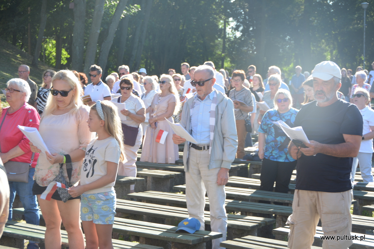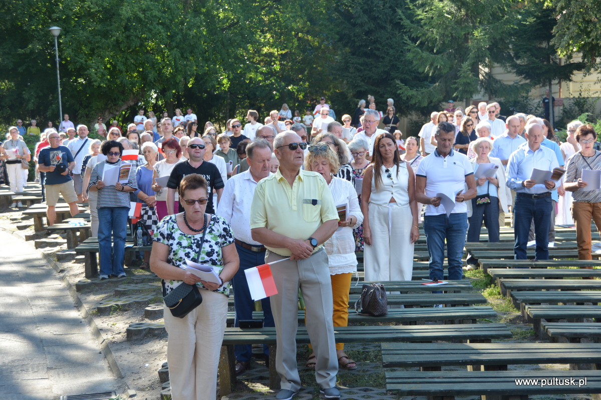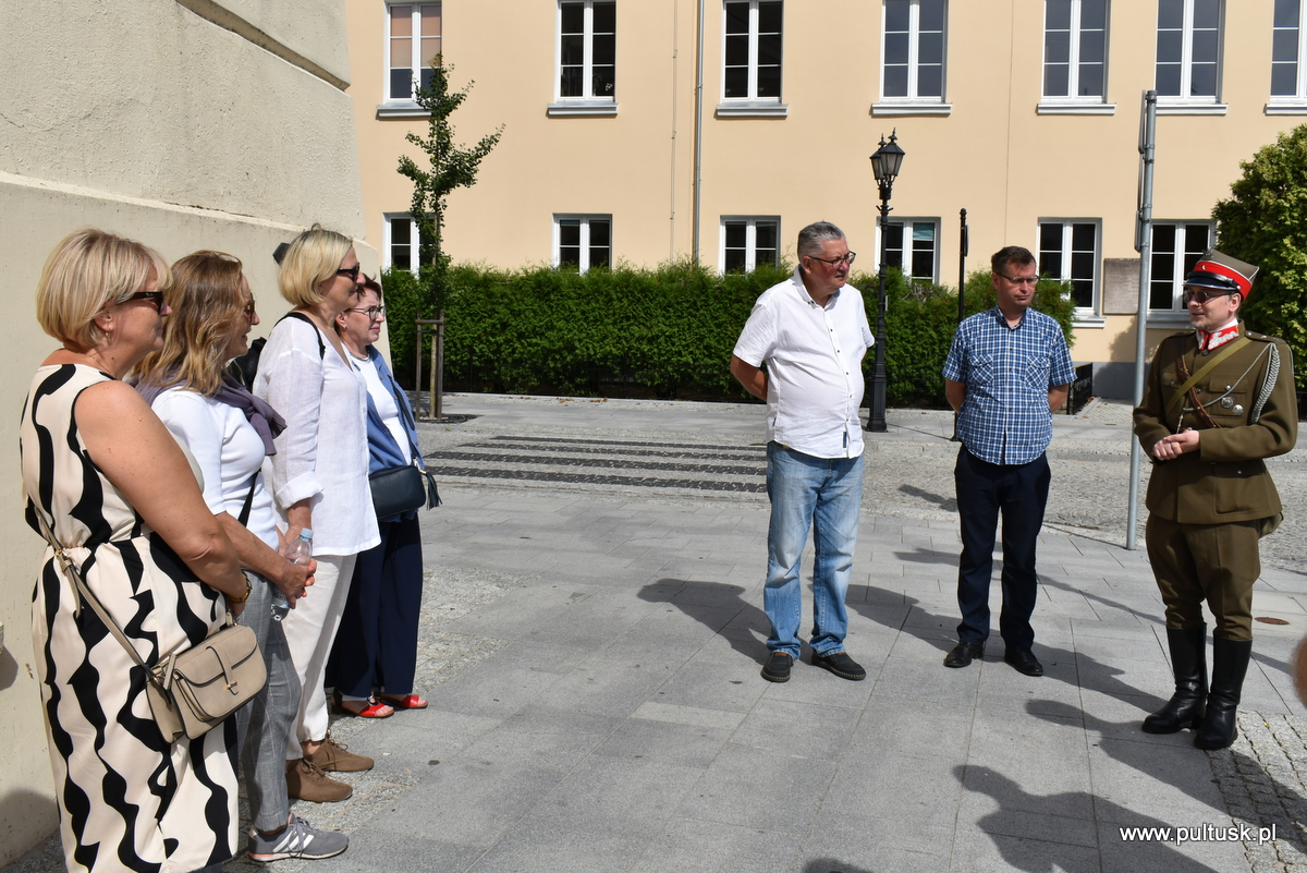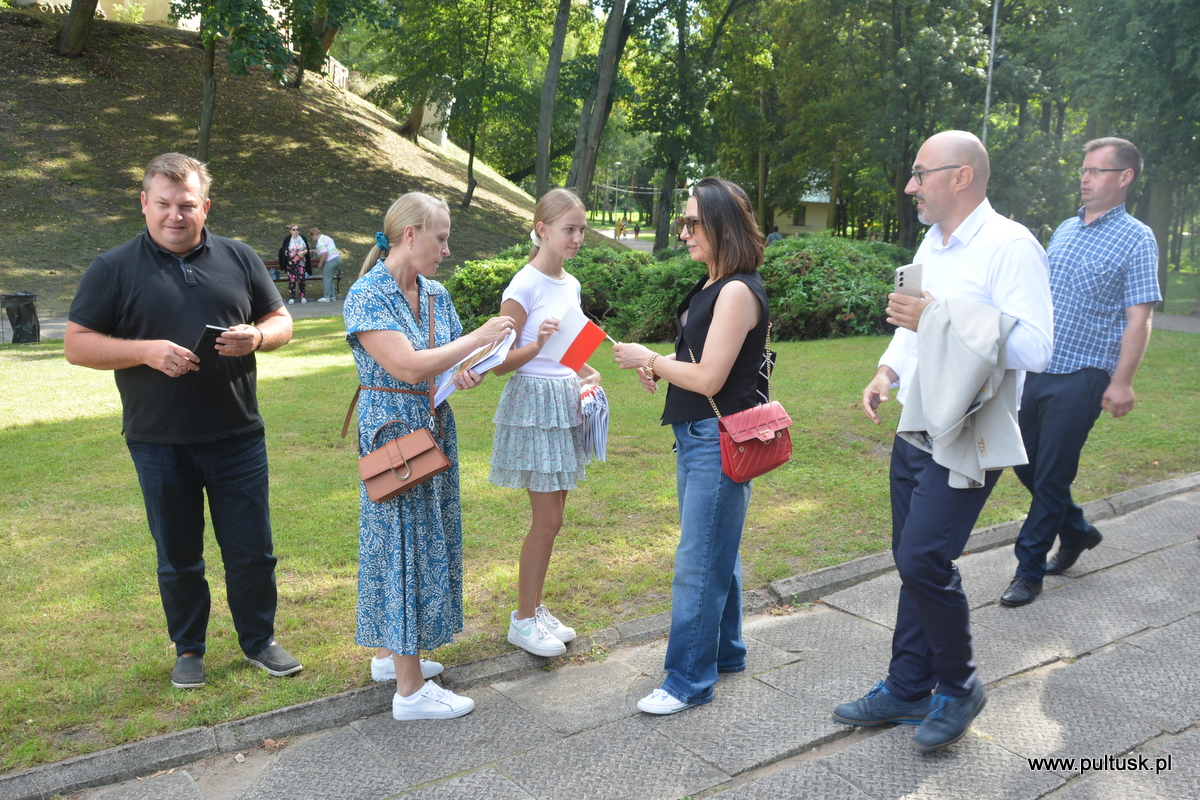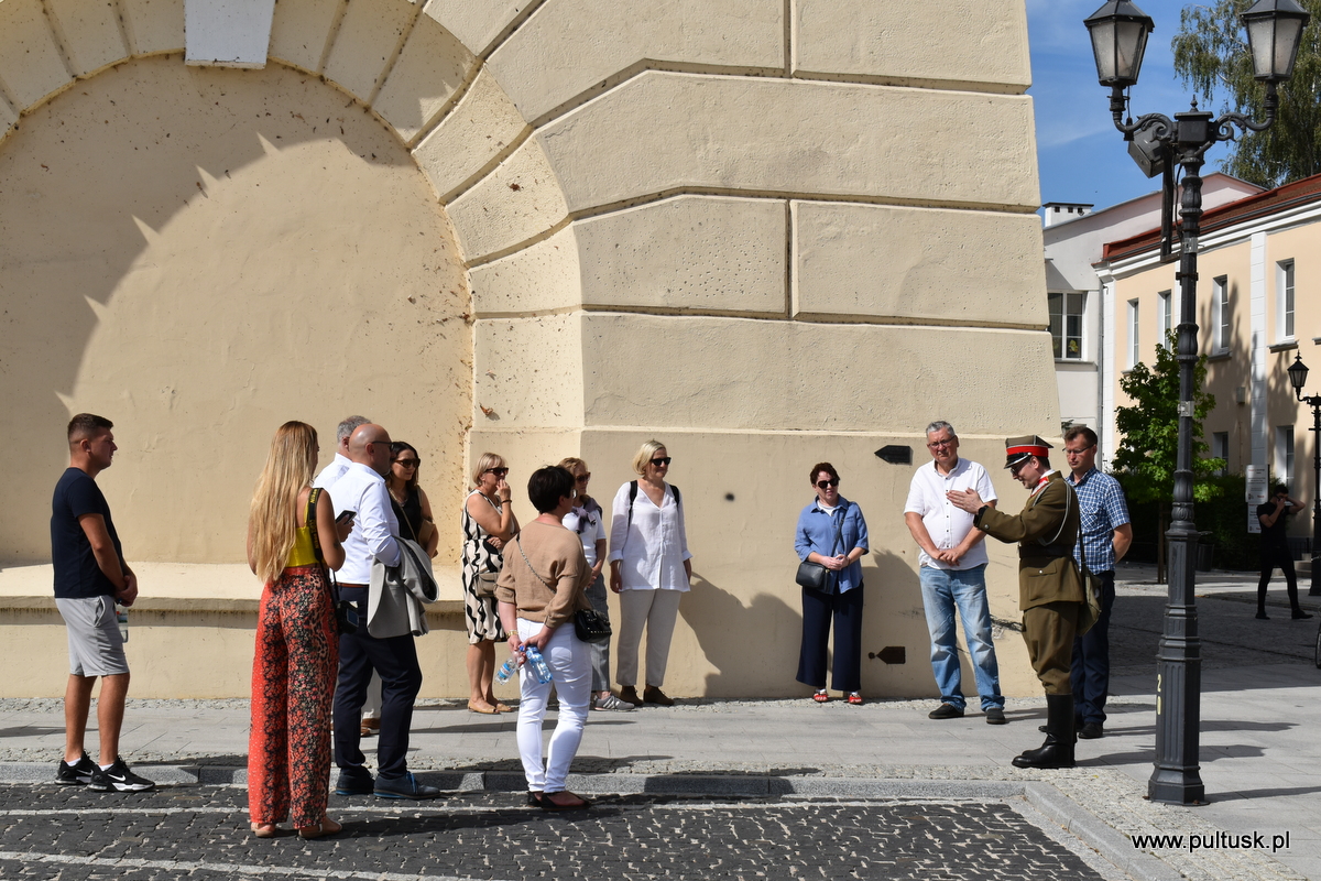 Dzień upamiętniający 85. rocznicę wybuchu II wojny światowej dobiega końca. W Pułtusku rozpoczęliśmy go uroczystym złożeniem kwiatów pod pomnikiem Żołnierzom Września 1939. Następnie w Bazylice została odprawiona uroczysta Msza św. w intencji Ojczyzny. Po Mszy św. spod dzwonnicy wyruszył Spacer Pamięci. W rolę przewodnika w stroju żandarma wcielił się Michał Świdwa, pracownik Muzeum Regionalnego w Pułtusku, rekonstruktor GRH 13 pułku piechoty, który w pasjonujący sposób przybliżył historię Pułtuskich miejsc, związanych z II wojną światową. Na uczestników spaceru czekała mała niespodzianka – z syren miejskich wyemitowany został symboliczny komunikat Polskiego Radia z 1 września 1939 r. oznajmiający wybuch wojny. Po godzinie 15.00 w amfiteatrze Domu Polonii rozpoczął się koncert pt. „Piosenką nie damy zapomnieć”, gdzie pod przewodnictwem znamienitych artystów: sopranistki Izabelli Jaszczułt – Kraszewskiej oraz pianisty, Dyrektora PSM I st. w Pułtusku, Andrzeja Ambroziaka wspólnie śpiewaliśmy pieśni patriotyczne. O zmroku natomiast mury naszego ratusza spowiła biało – czerwona poświata…