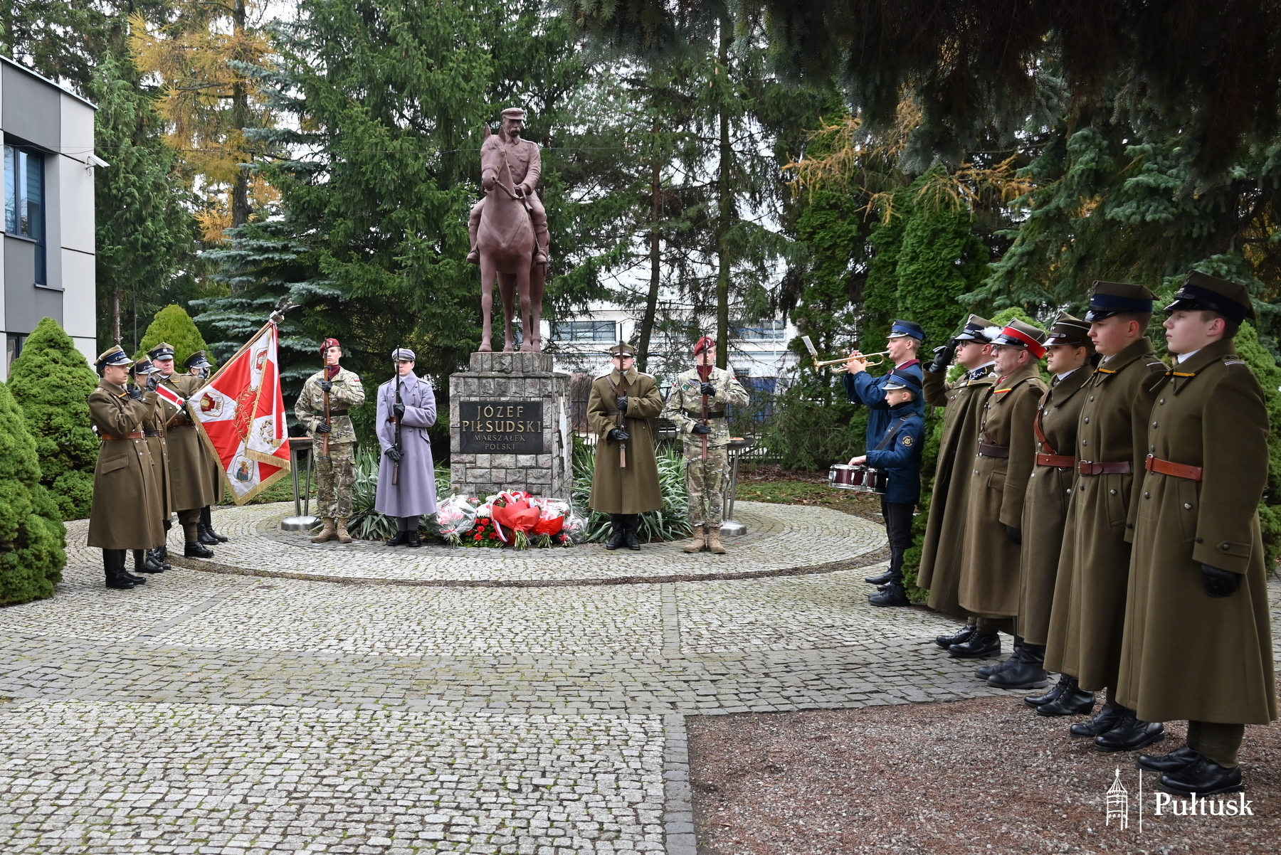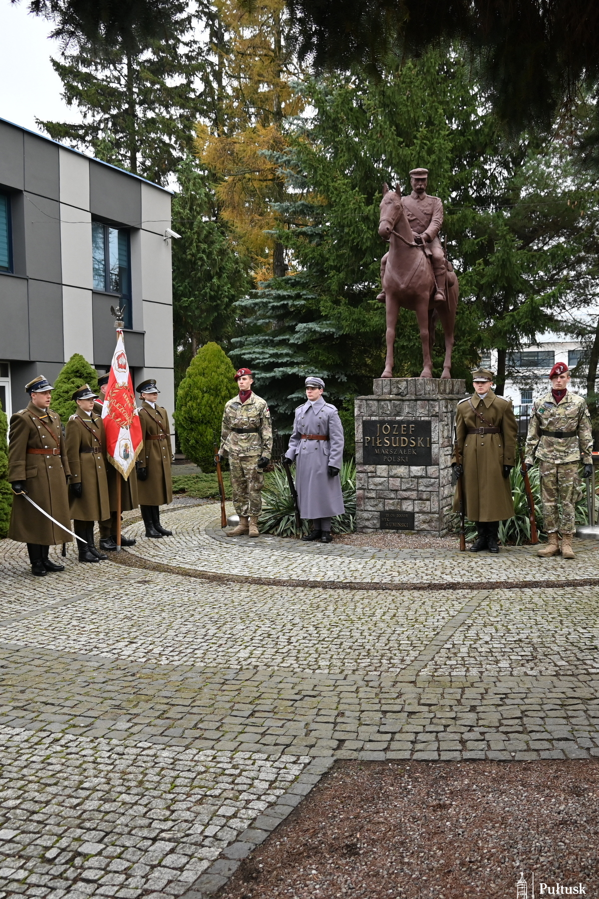 Pułtuskie obchody 107. rocznicy odzyskania przez Polskę niepodległości rozpoczęły się ceremonią złożenia kwiatów pod pomnikiem Marszałka Józefa Piłsudskiego współorganizowaną przez Związek Piłsudczyków RP Oddział w Pułtusku.