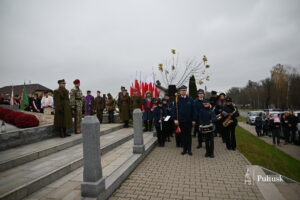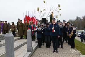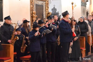 Zgromadzeni uczestnicy wysłuchali również wiązanki pieśni patriotycznych w wykonaniu Miejskiej Młodzieżowej Orkiestry Dętej OSP w Pułtusku pod batutą kapelmistrza Kacpra Cendrowskiego.